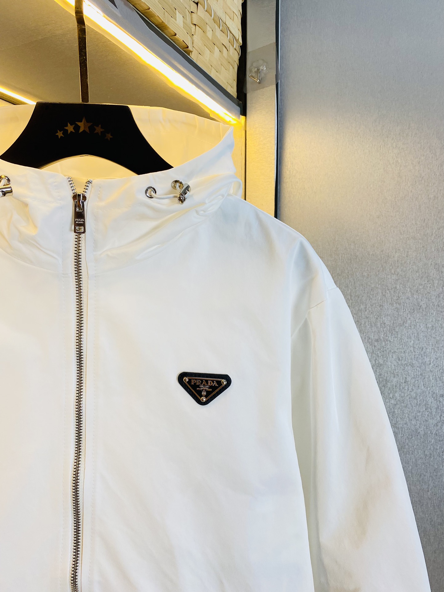 这款衣服是AAAAA 1:1 质量 (非常棒). 使用了和原版一模一样的材料. 商标部分也保持了和普拉达/Prada一样. 图片拍摄是实物衣服拍摄, 您所收到的实物保证和我们图片一模一样.