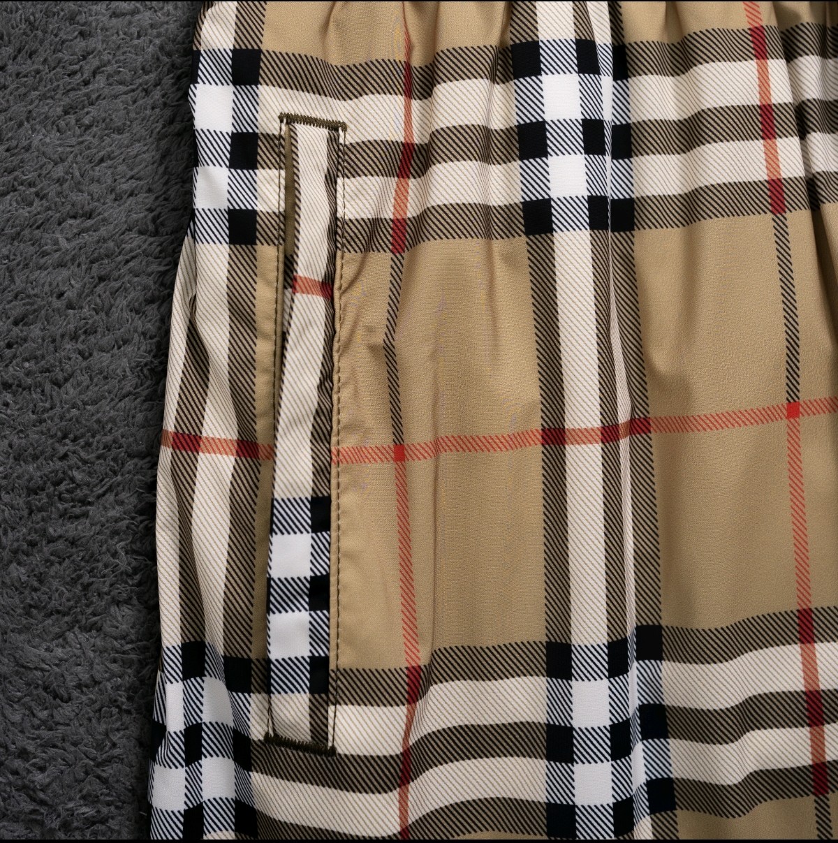这款衣服是AAAAA 1:1 质量 (非常棒). 使用了和原版一模一样的材料. 商标部分也保持了和巴宝莉/Burberry一样. 图片拍摄是实物衣服拍摄, 您所收到的实物保证和我们图片一模一样.
