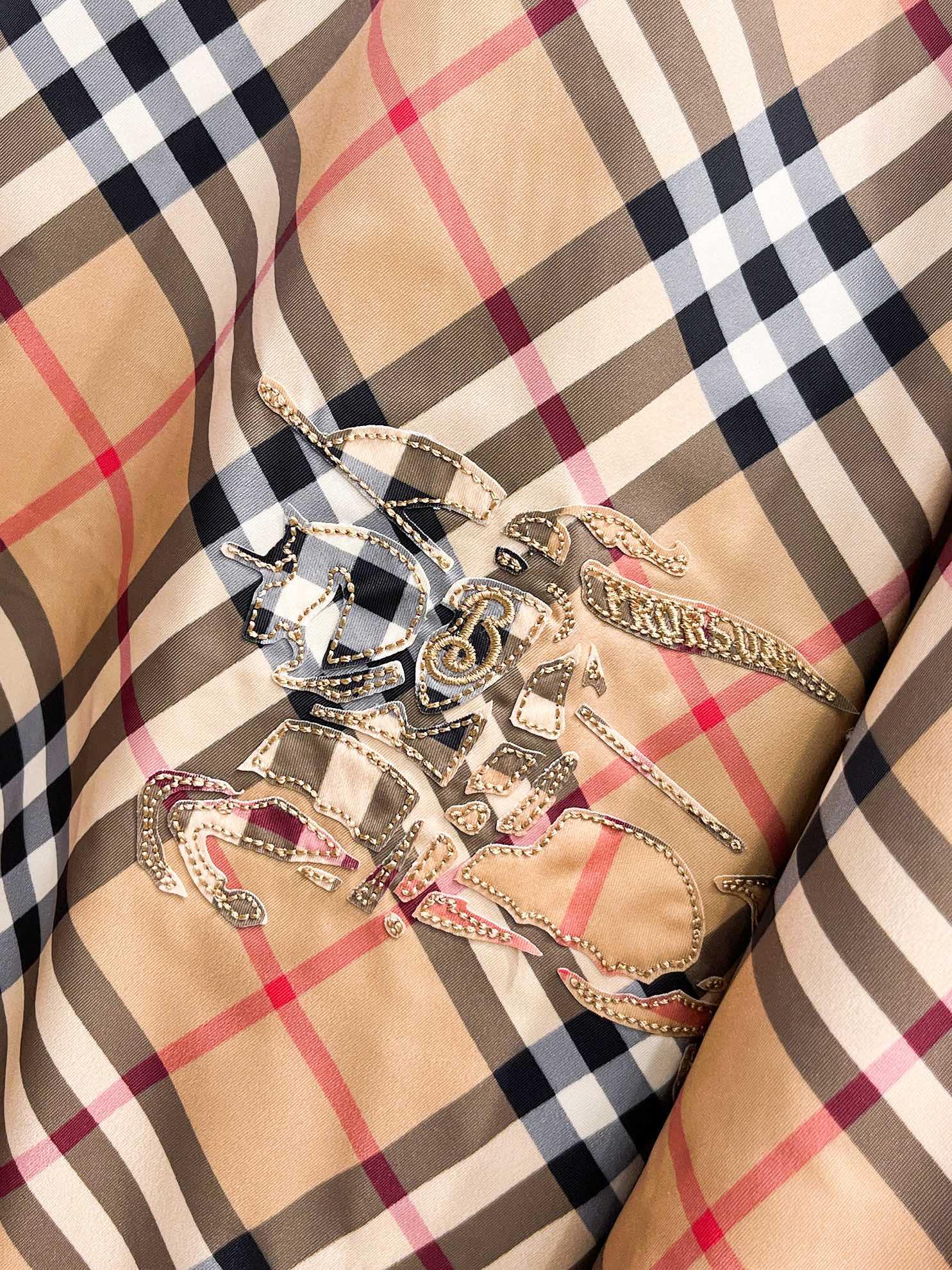 这款衣服是AAAAA 1:1 质量 (非常棒). 使用了和原版一模一样的材料. 商标部分也保持了和巴宝莉/Burberry一样. 图片拍摄是实物衣服拍摄, 您所收到的实物保证和我们图片一模一样.