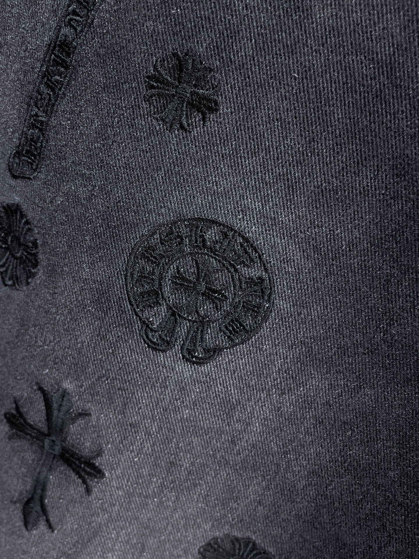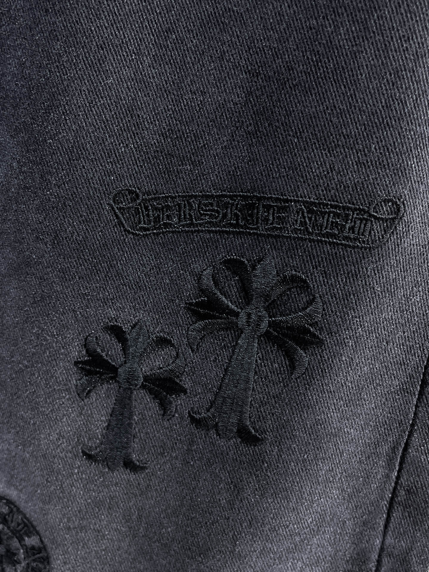 这款衣服是AAAAA 1:1 质量 (非常棒). 使用了和原版一模一样的材料. 商标部分也保持了和克罗心/Chrome Hearts一样. 图片拍摄是实物衣服拍摄, 您所收到的实物保证和我们图片一模一样.