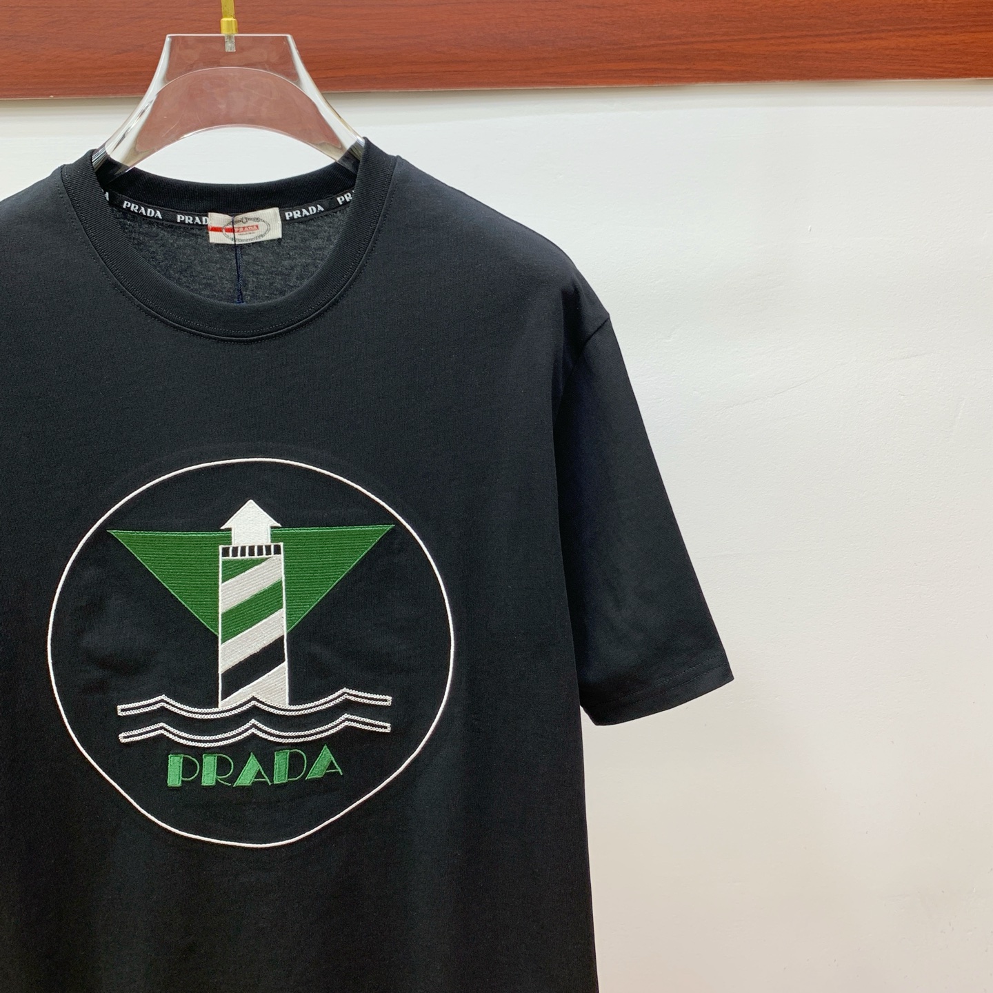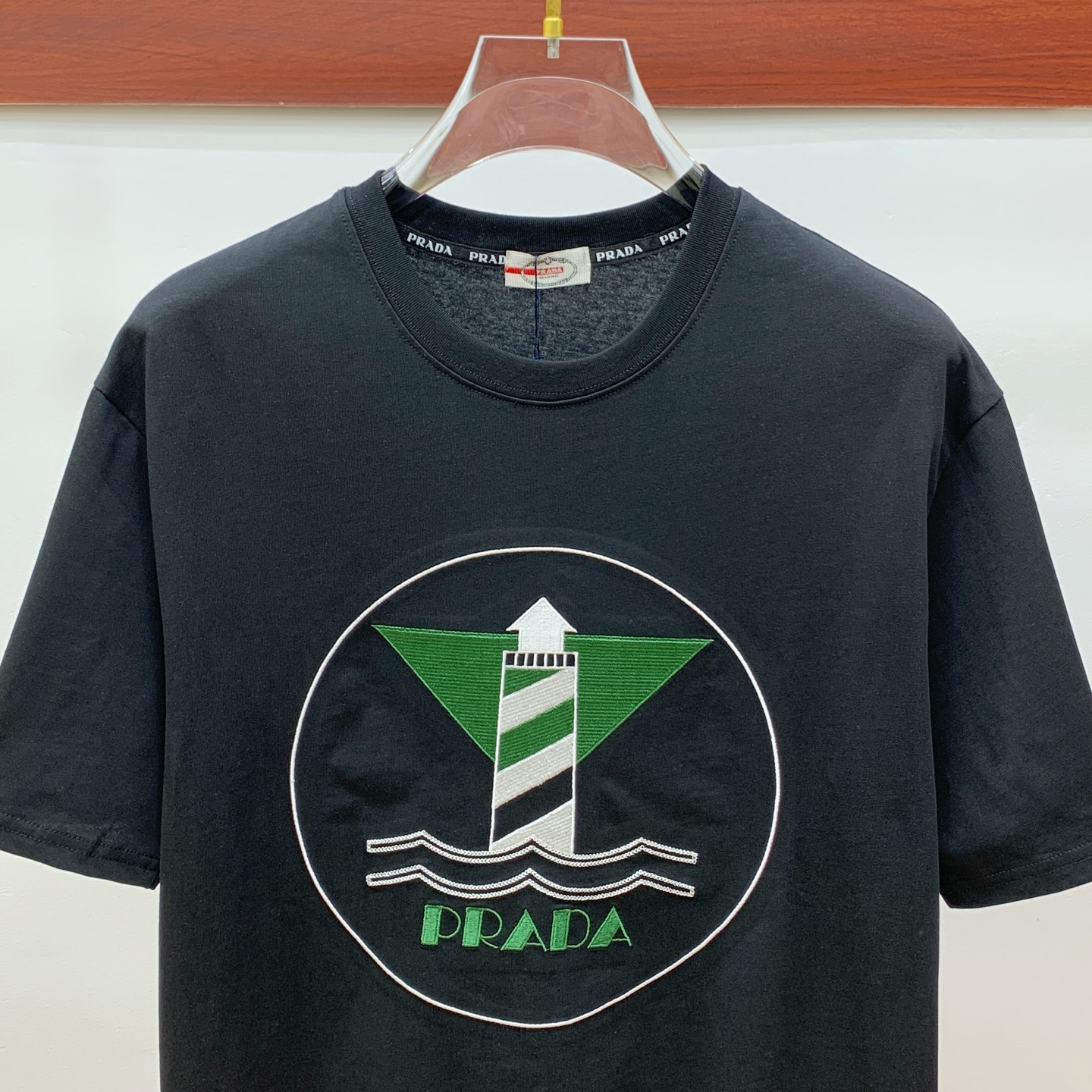 这款衣服是AAAAA 1:1 质量 (非常棒). 使用了和原版一模一样的材料. 商标部分也保持了和普拉达/Prada一样. 图片拍摄是实物衣服拍摄, 您所收到的实物保证和我们图片一模一样.