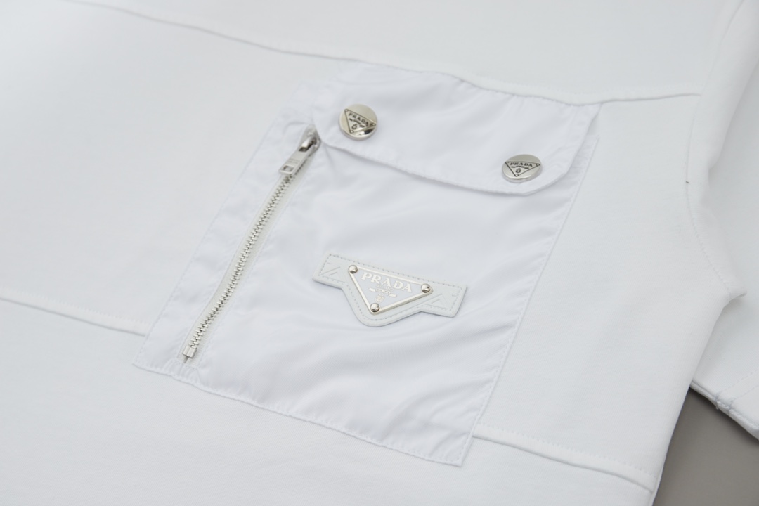 这款衣服是AAAAA 1:1 质量 (非常棒). 使用了和原版一模一样的材料. 商标部分也保持了和普拉达/Prada一样. 图片拍摄是实物衣服拍摄, 您所收到的实物保证和我们图片一模一样.