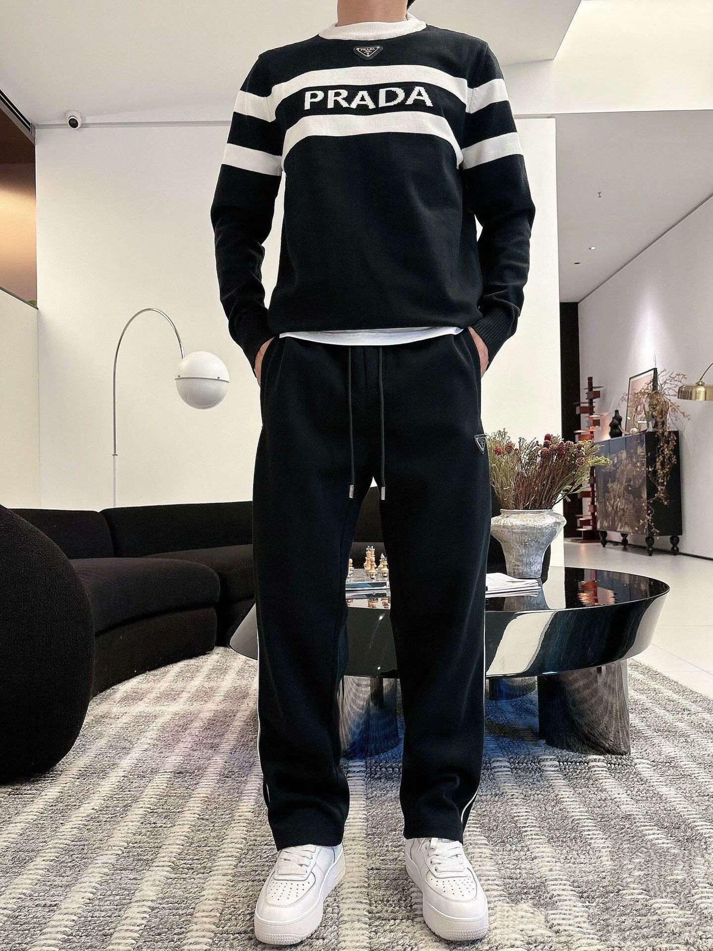 这款衣服是AAAAA 1:1 质量 (非常棒). 使用了和原版一模一样的材料. 商标部分也保持了和普拉达/Prada一样. 图片拍摄是实物衣服拍摄, 您所收到的实物保证和我们图片一模一样.