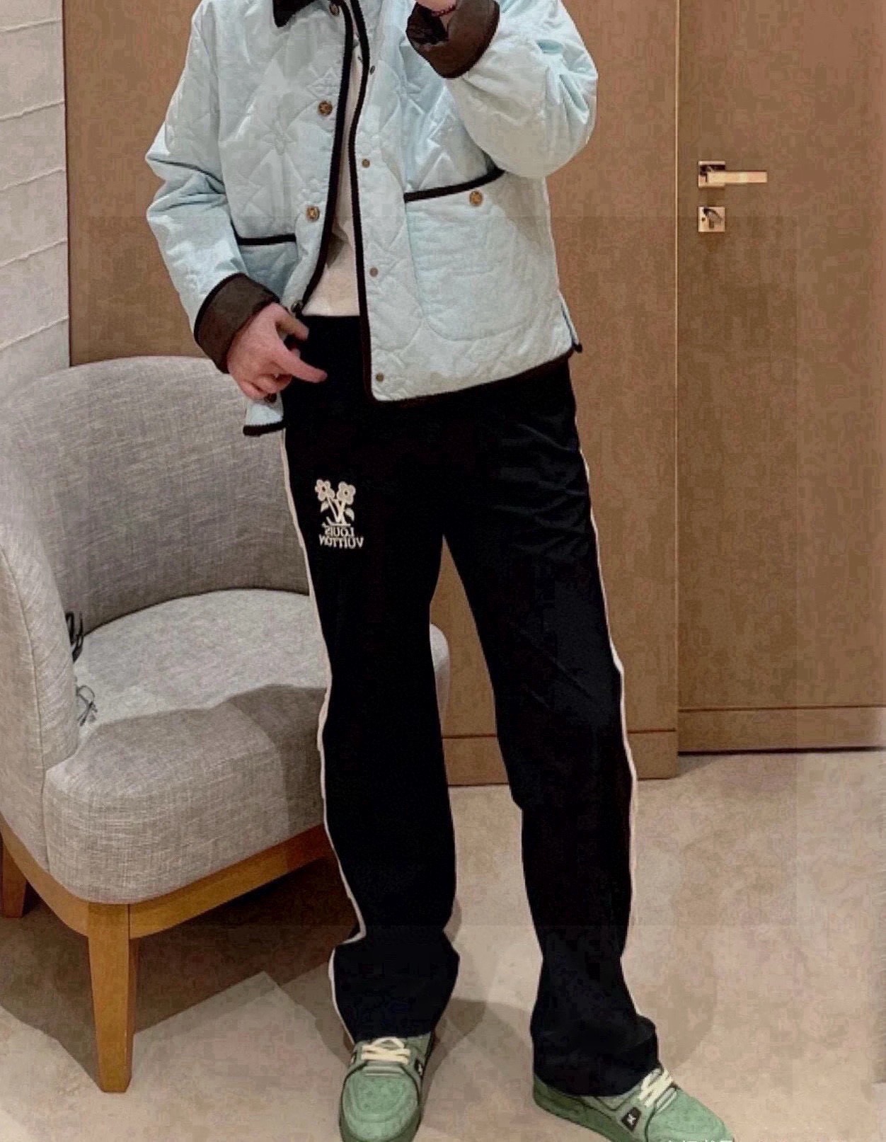 这款衣服是AAAAA 1:1 质量 (非常棒). 使用了和原版一模一样的材料. 商标部分也保持了和路易威登/Louis Vuitton一样. 图片拍摄是实物衣服拍摄, 您所收到的实物保证和我们图片一模一样.