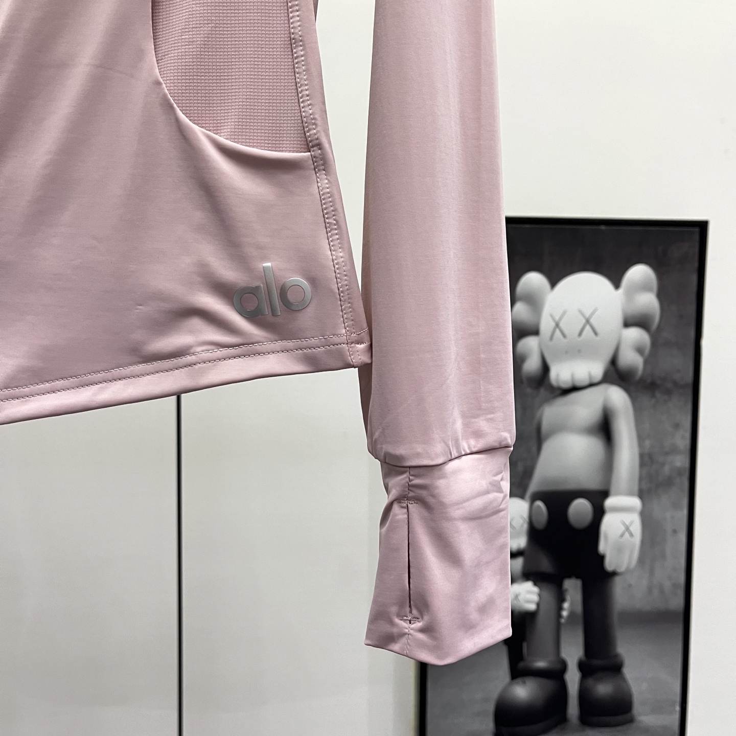 这款衣服是AAAAA 1:1 质量 (非常棒). 使用了和原版一模一样的材料. 商标部分也保持了和Alo Yoga一样. 图片拍摄是实物衣服拍摄, 您所收到的实物保证和我们图片一模一样.
