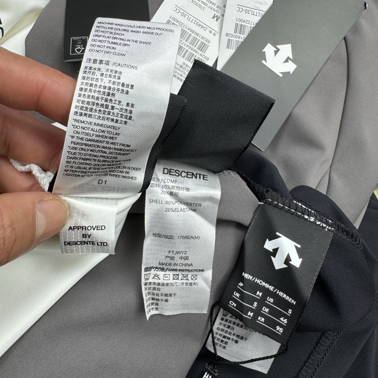 这款衣服是AAAAA 1:1 质量 (非常棒). 使用了和原版一模一样的材料. 商标部分也保持了和Descente一样. 图片拍摄是实物衣服拍摄, 您所收到的实物保证和我们图片一模一样.