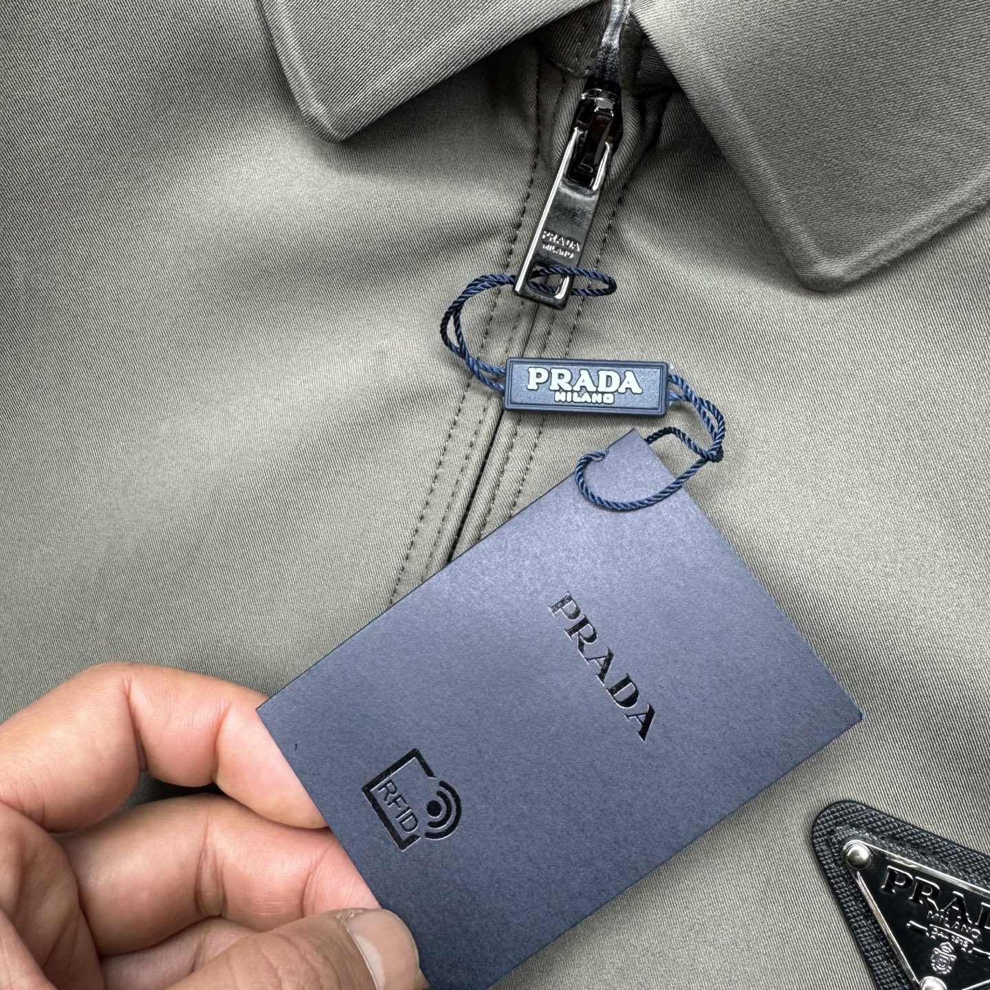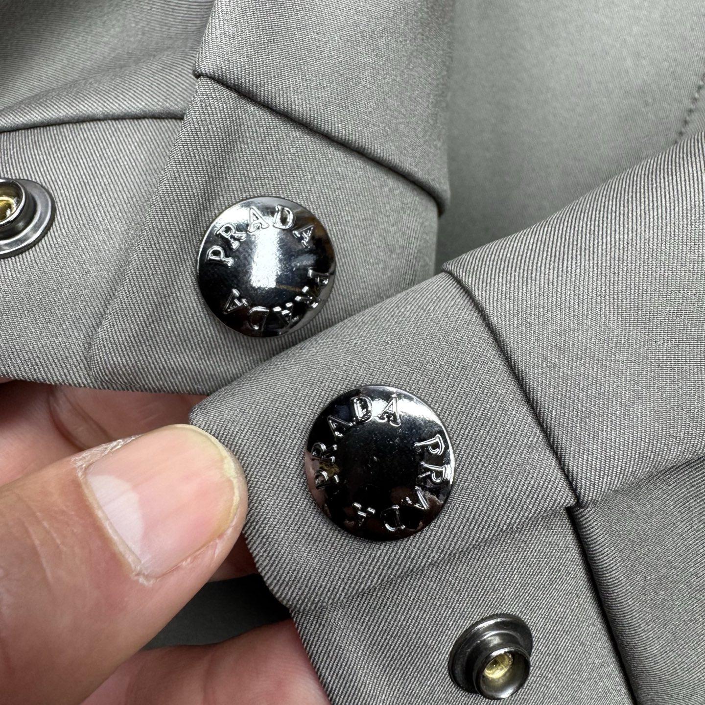 这款衣服是AAAAA 1:1 质量 (非常棒). 使用了和原版一模一样的材料. 商标部分也保持了和普拉达/Prada一样. 图片拍摄是实物衣服拍摄, 您所收到的实物保证和我们图片一模一样.