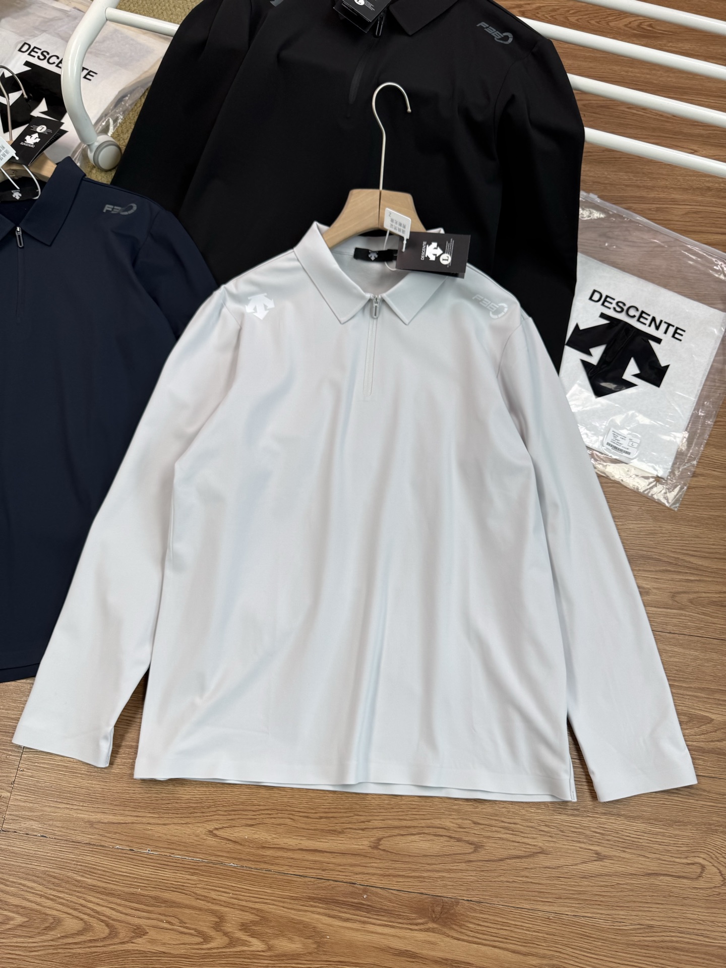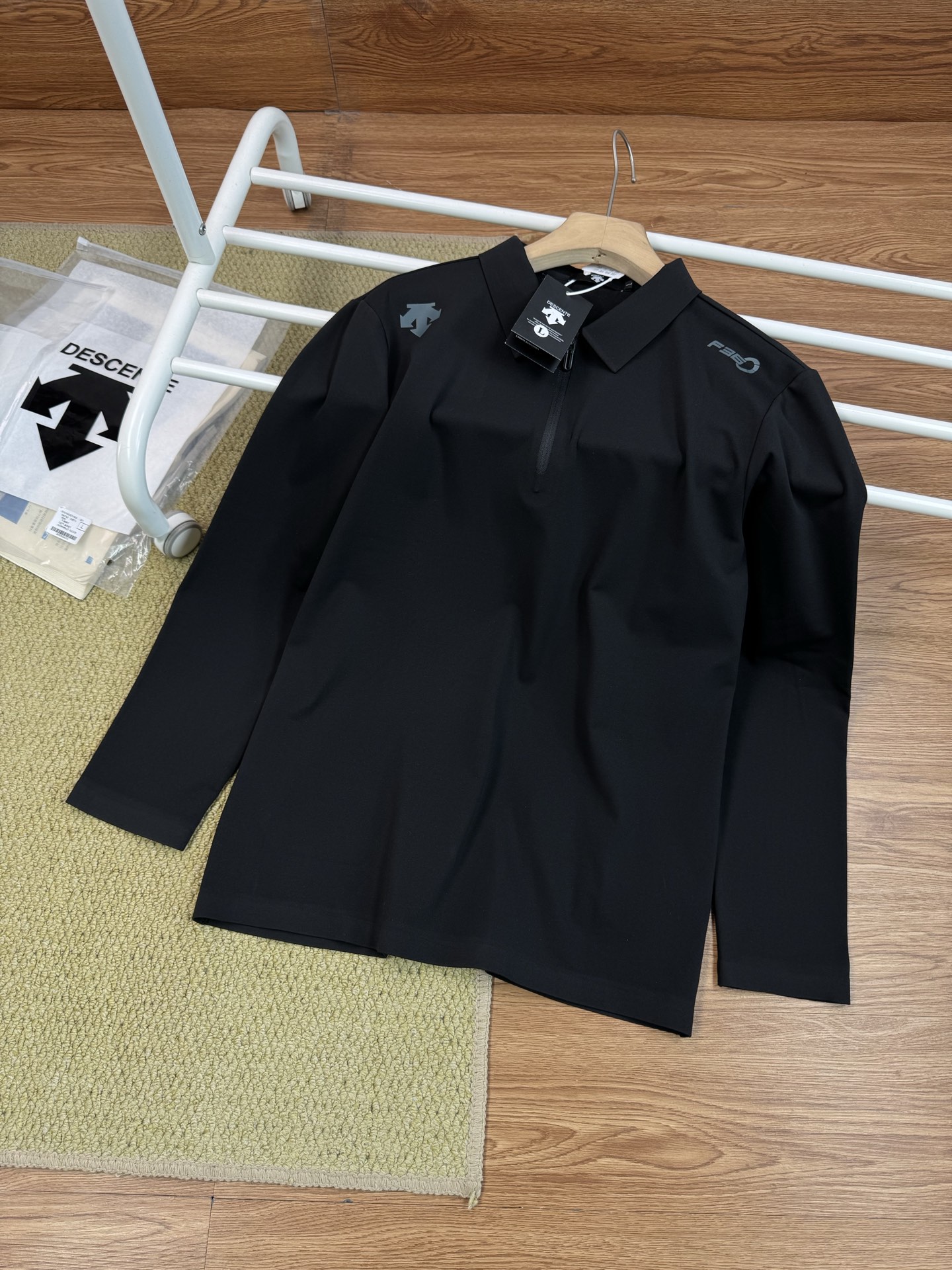 这款衣服是AAAAA 1:1 质量 (非常棒). 使用了和原版一模一样的材料. 商标部分也保持了和Descente一样. 图片拍摄是实物衣服拍摄, 您所收到的实物保证和我们图片一模一样.