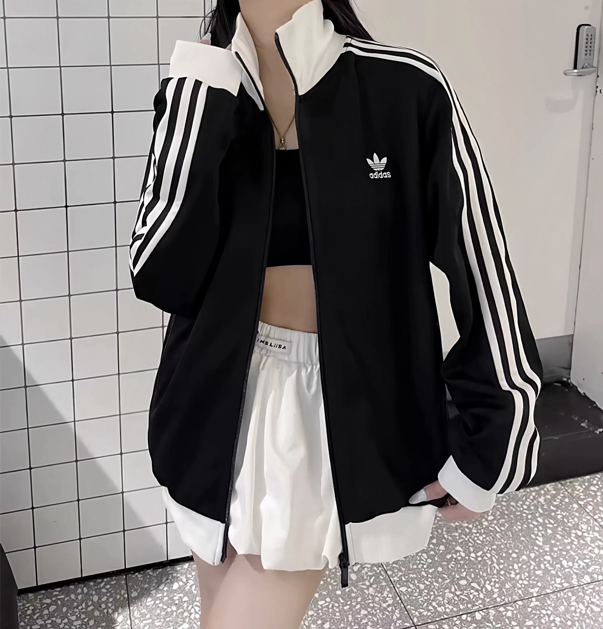 这款衣服是AAAAA 1:1 质量 (非常棒). 使用了和原版一模一样的材料. 商标部分也保持了和阿迪达斯/Adidas一样. 图片拍摄是实物衣服拍摄, 您所收到的实物保证和我们图片一模一样.
