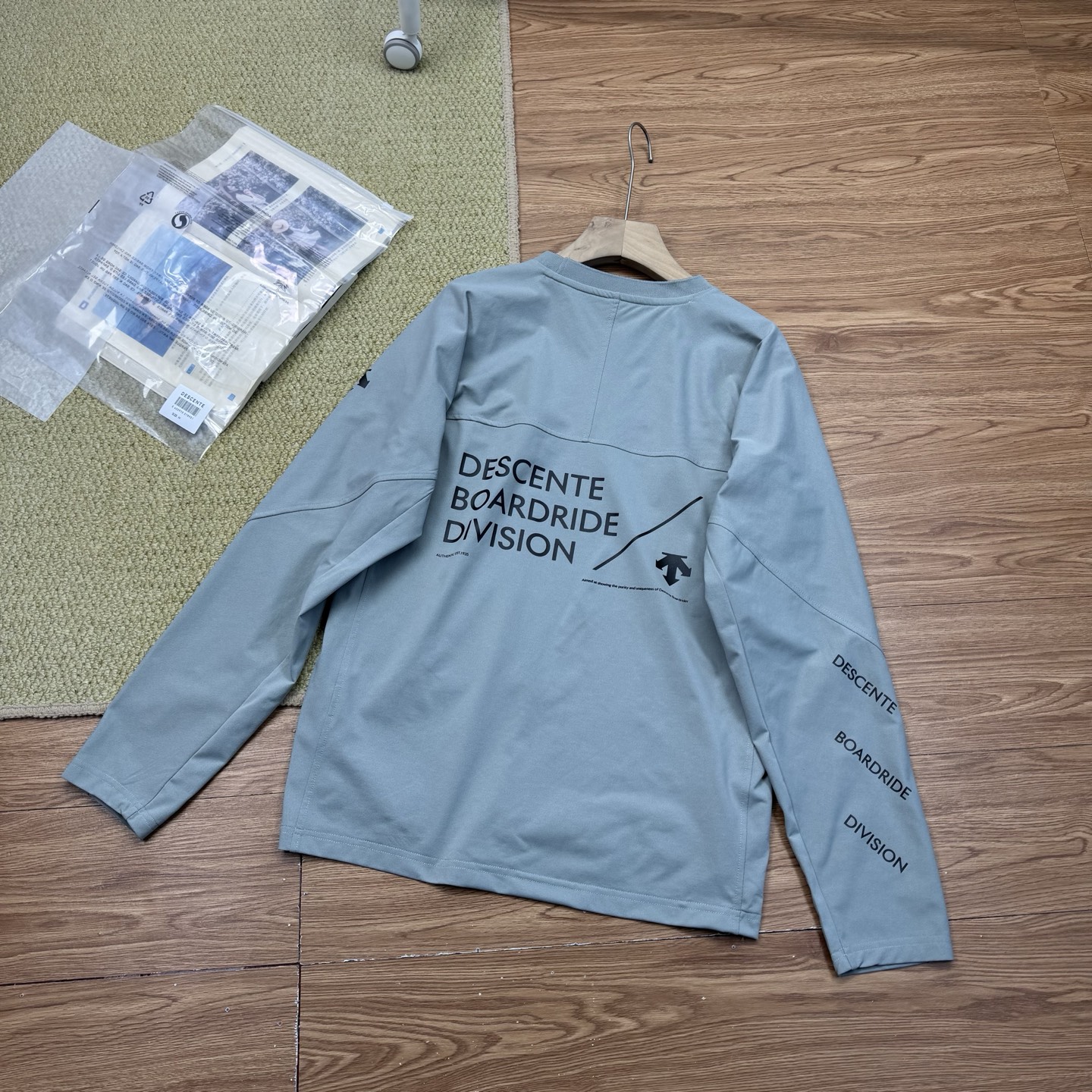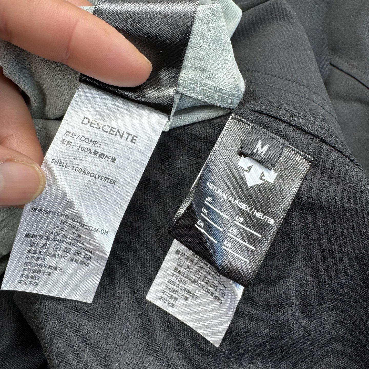 这款衣服是AAAAA 1:1 质量 (非常棒). 使用了和原版一模一样的材料. 商标部分也保持了和Descente一样. 图片拍摄是实物衣服拍摄, 您所收到的实物保证和我们图片一模一样.
