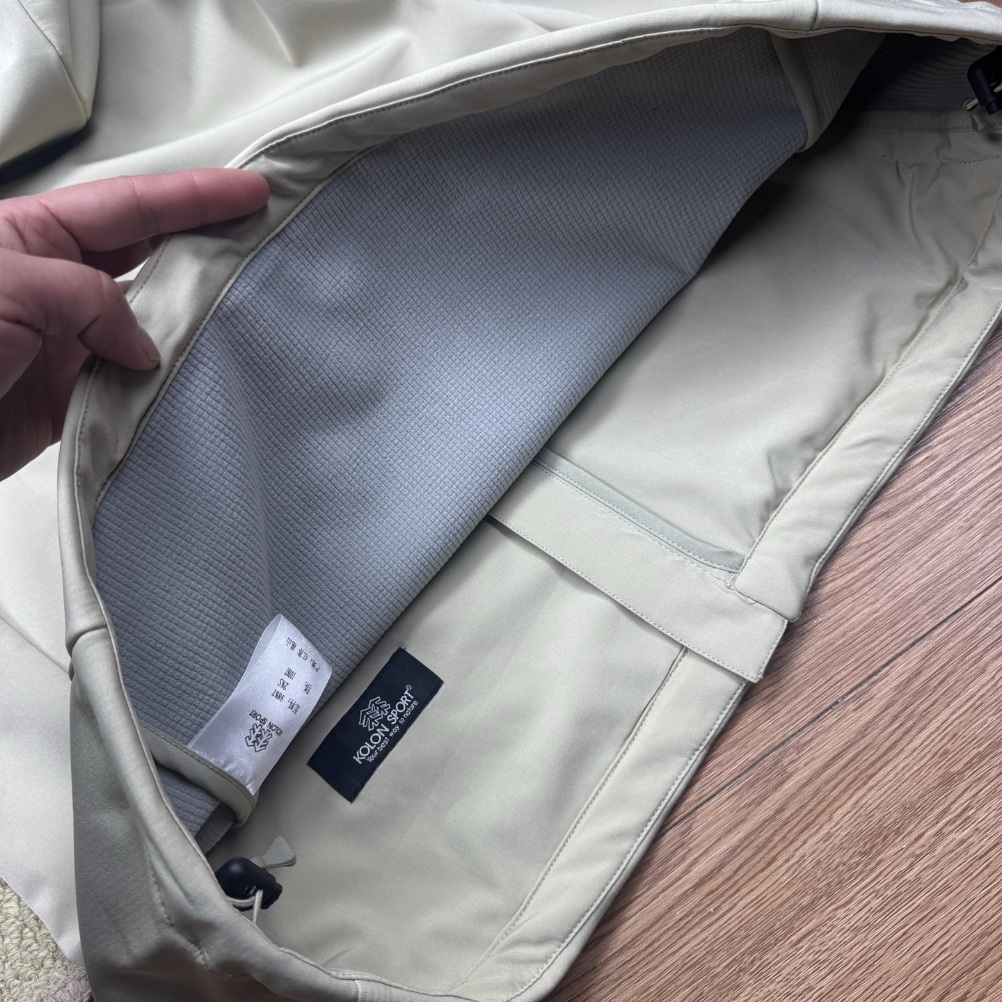 这款衣服是AAAAA 1:1 质量 (非常棒). 使用了和原版一模一样的材料. 商标部分也保持了和KOLON一样. 图片拍摄是实物衣服拍摄, 您所收到的实物保证和我们图片一模一样.