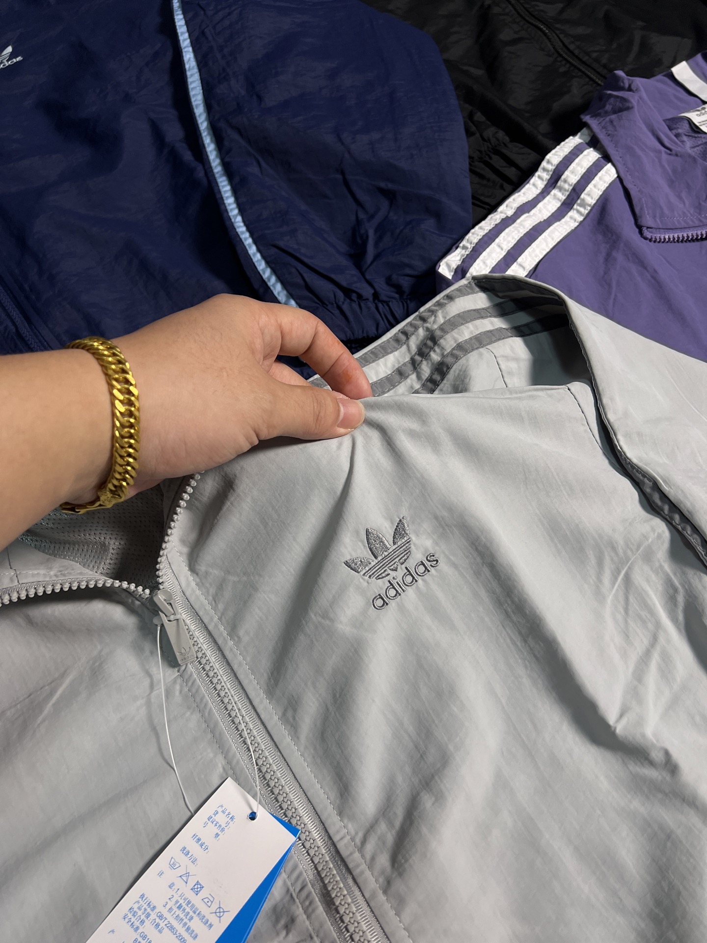 这款衣服是AAAAA 1:1 质量 (非常棒). 使用了和原版一模一样的材料. 商标部分也保持了和阿迪达斯/Adidas一样. 图片拍摄是实物衣服拍摄, 您所收到的实物保证和我们图片一模一样.