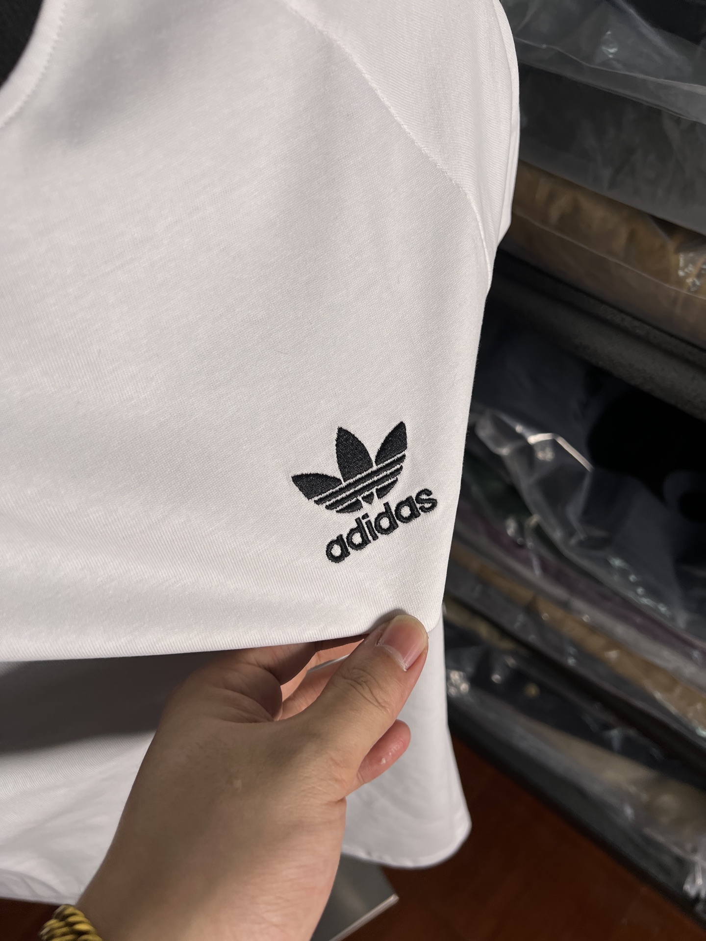 这款衣服是AAAAA 1:1 质量 (非常棒). 使用了和原版一模一样的材料. 商标部分也保持了和阿迪达斯/Adidas一样. 图片拍摄是实物衣服拍摄, 您所收到的实物保证和我们图片一模一样.