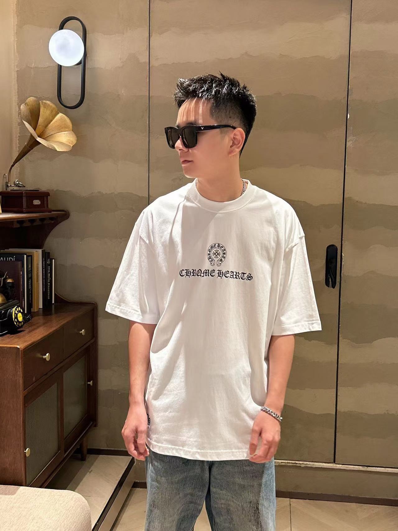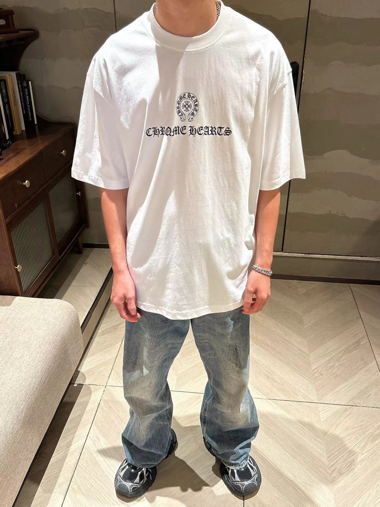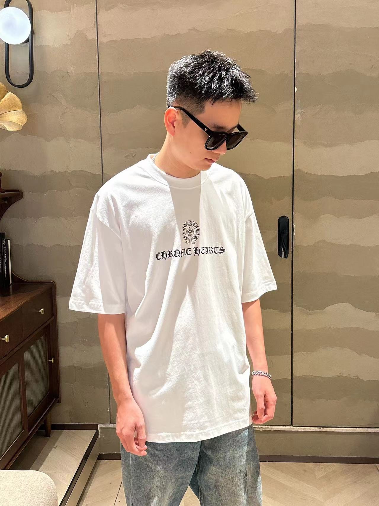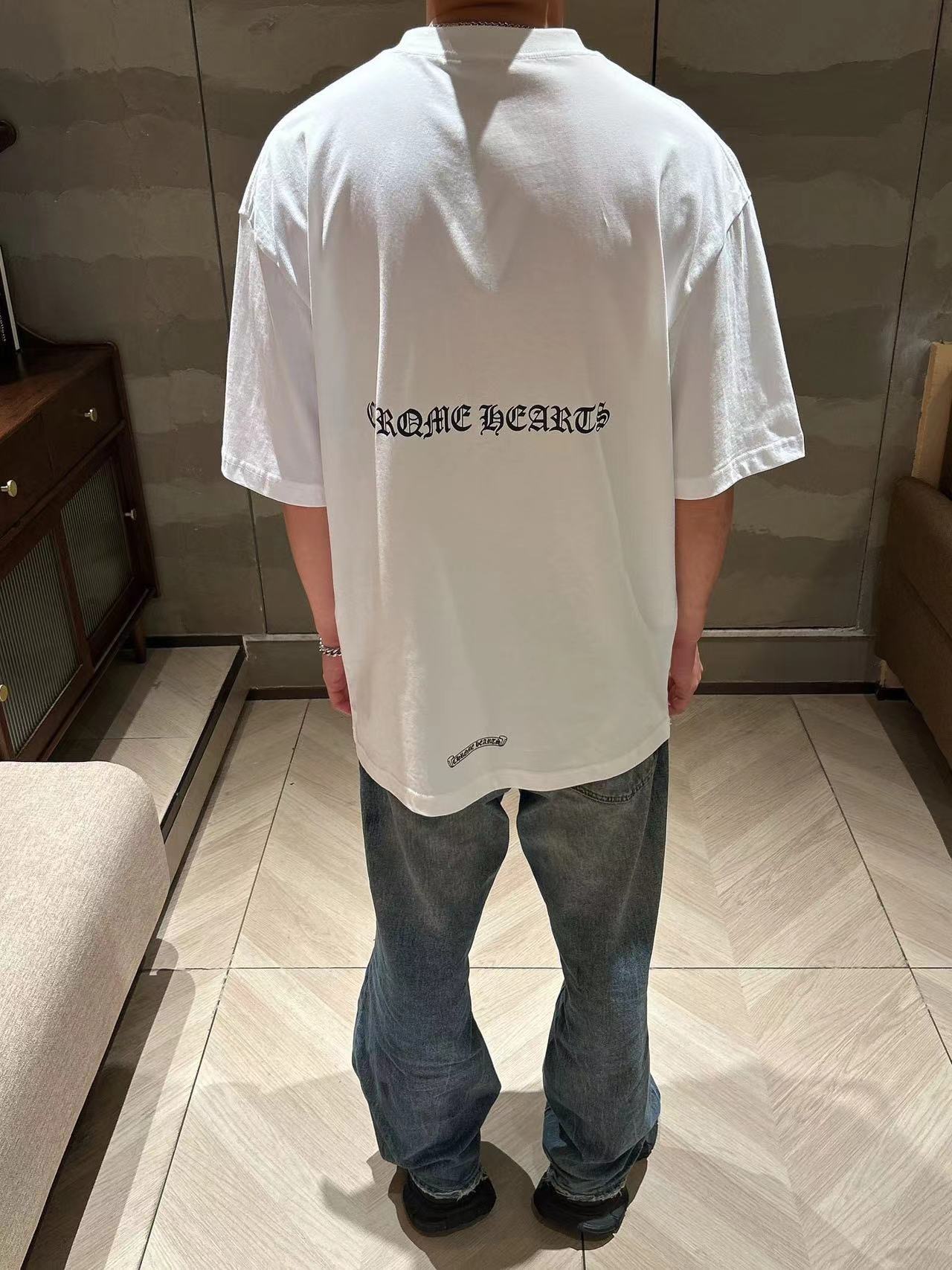 这款衣服是AAAAA 1:1 质量 (非常棒). 使用了和原版一模一样的材料. 商标部分也保持了和克罗心/Chrome Hearts一样. 图片拍摄是实物衣服拍摄, 您所收到的实物保证和我们图片一模一样.