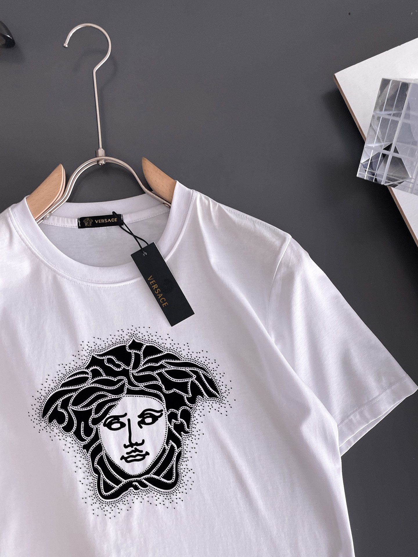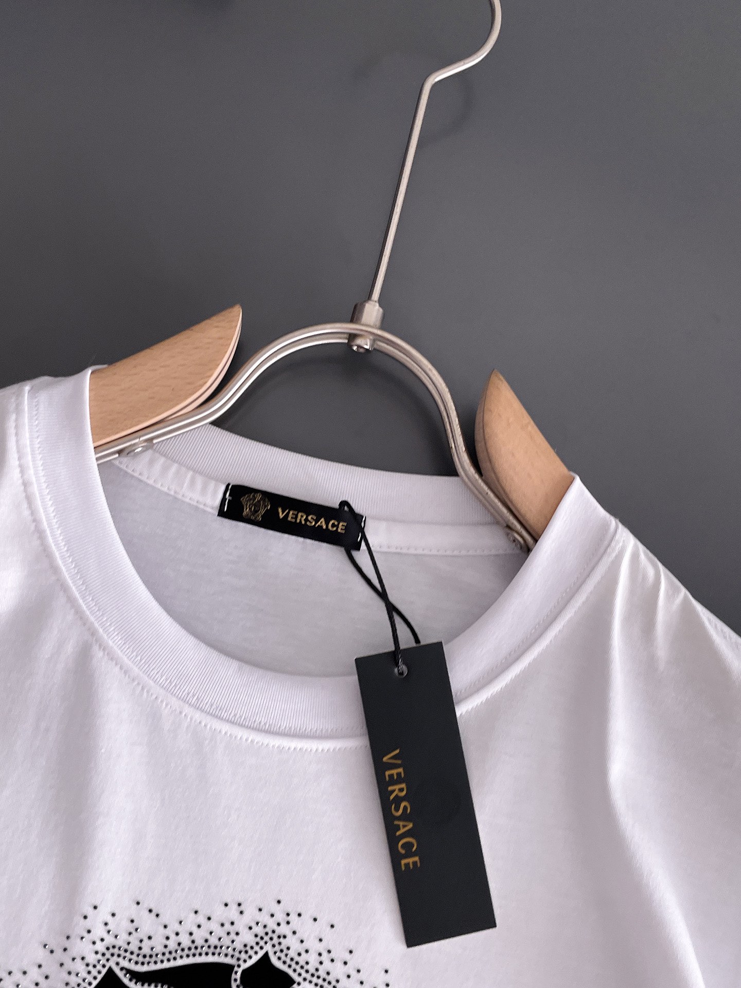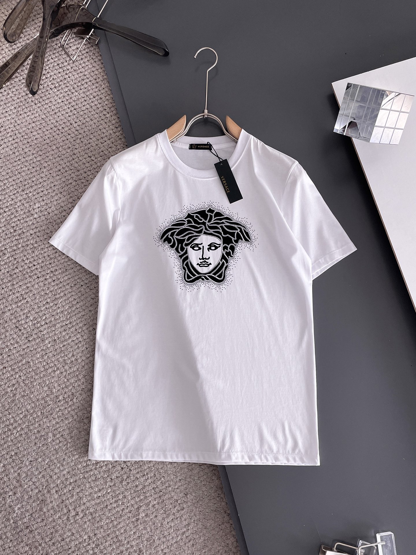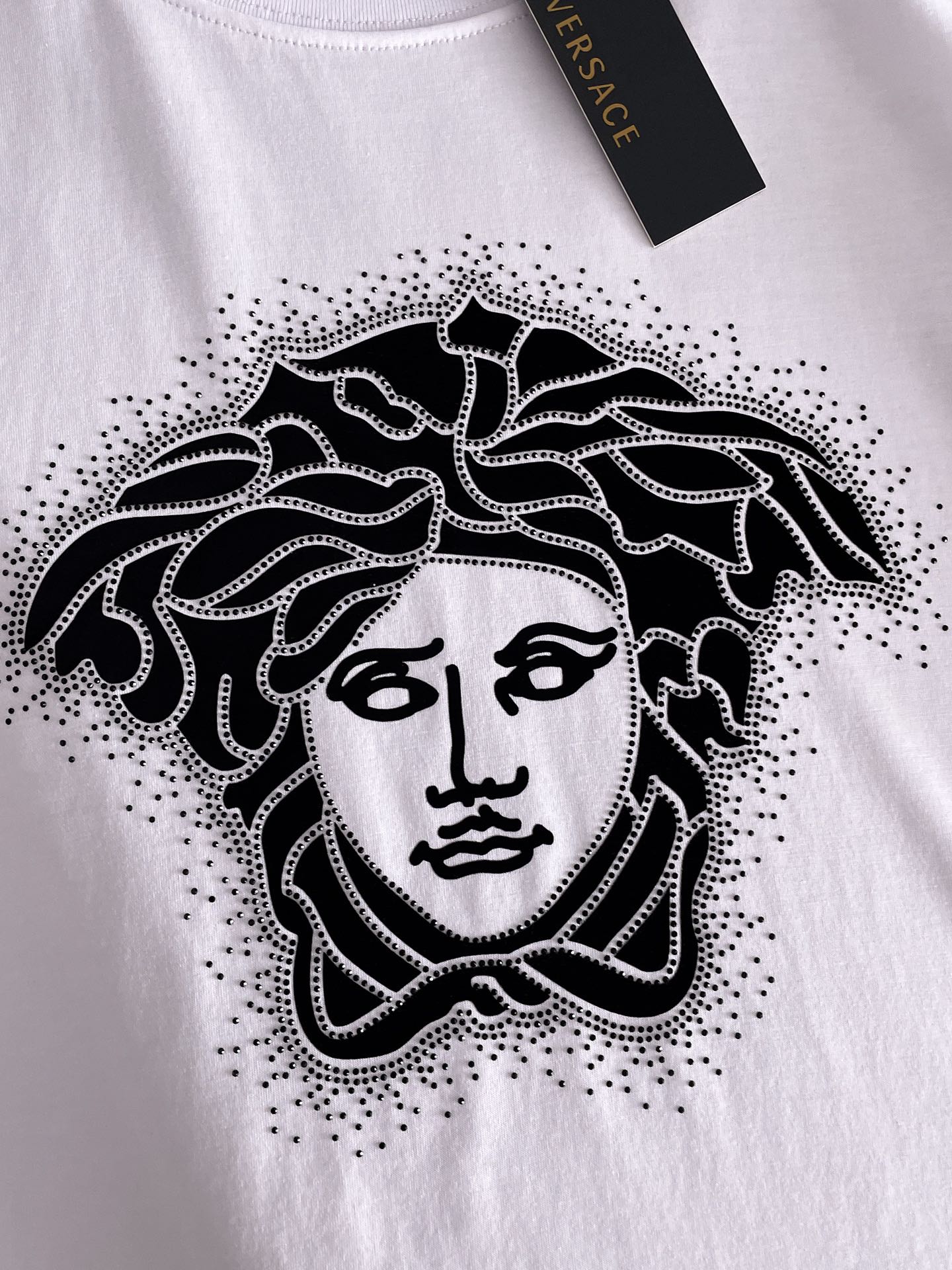 这款衣服是AAAAA 1:1 质量 (非常棒). 使用了和原版一模一样的材料. 商标部分也保持了和范思哲/Versace一样. 图片拍摄是实物衣服拍摄, 您所收到的实物保证和我们图片一模一样.