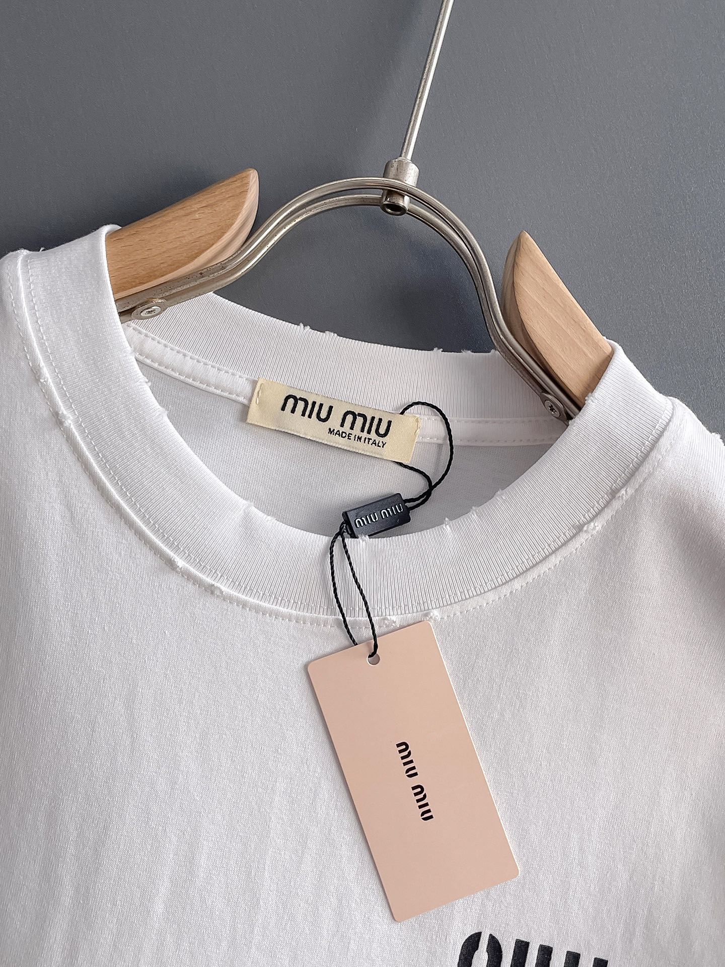 这款衣服是AAAAA 1:1 质量 (非常棒). 使用了和原版一模一样的材料. 商标部分也保持了和缪缪/Miu Miu一样. 图片拍摄是实物衣服拍摄, 您所收到的实物保证和我们图片一模一样.