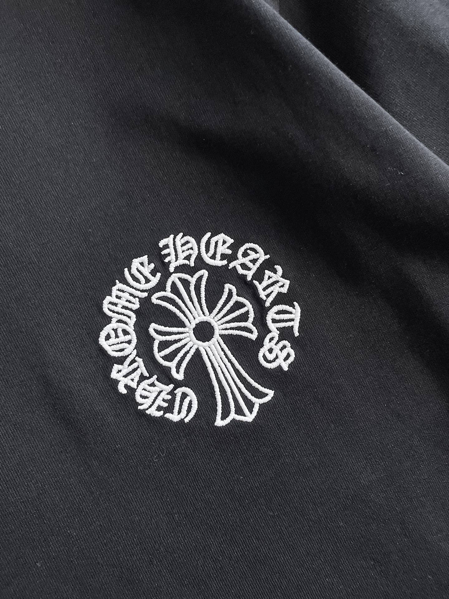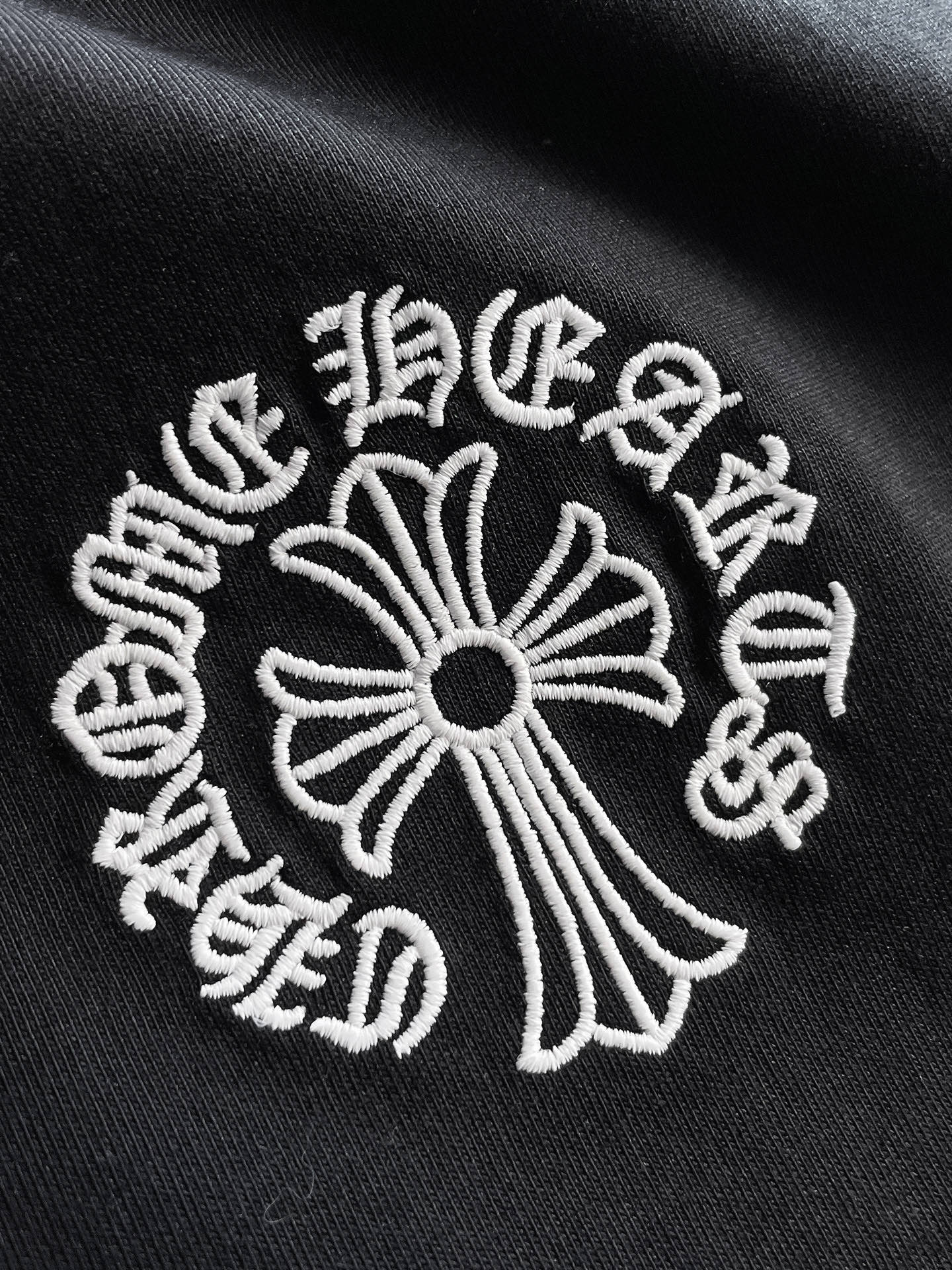 这款衣服是AAAAA 1:1 质量 (非常棒). 使用了和原版一模一样的材料. 商标部分也保持了和克罗心/Chrome Hearts一样. 图片拍摄是实物衣服拍摄, 您所收到的实物保证和我们图片一模一样.