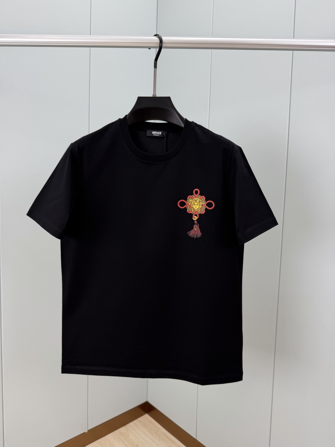 这款衣服是AAAAA 1:1 质量 (非常棒). 使用了和原版一模一样的材料. 商标部分也保持了和范思哲/Versace一样. 图片拍摄是实物衣服拍摄, 您所收到的实物保证和我们图片一模一样.