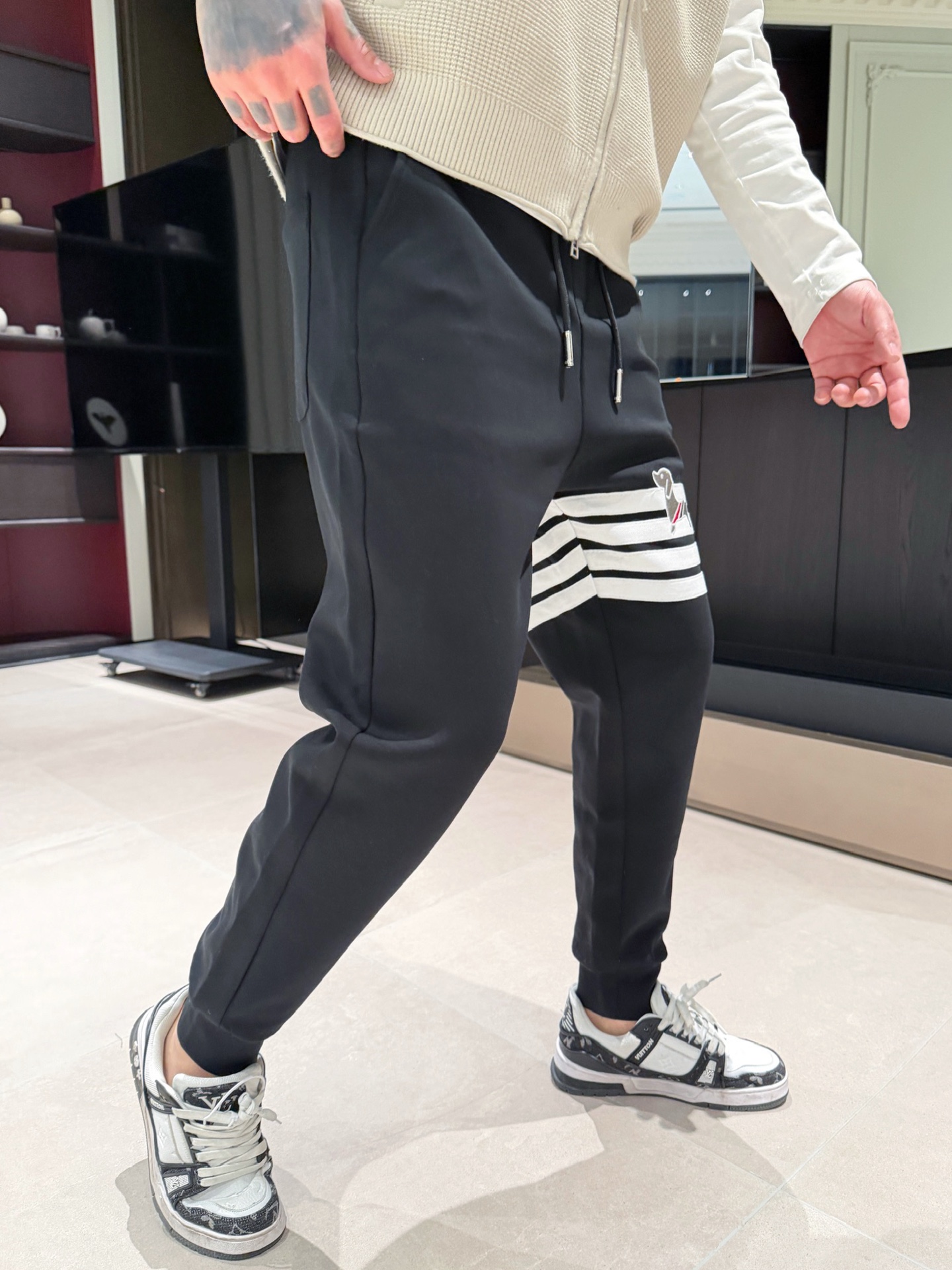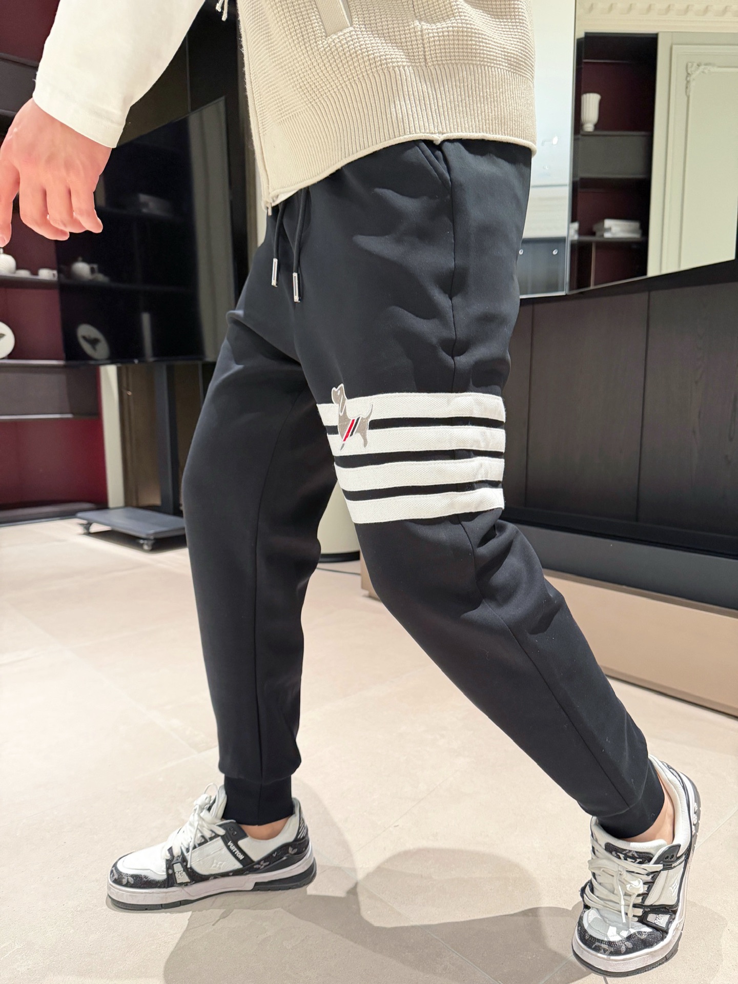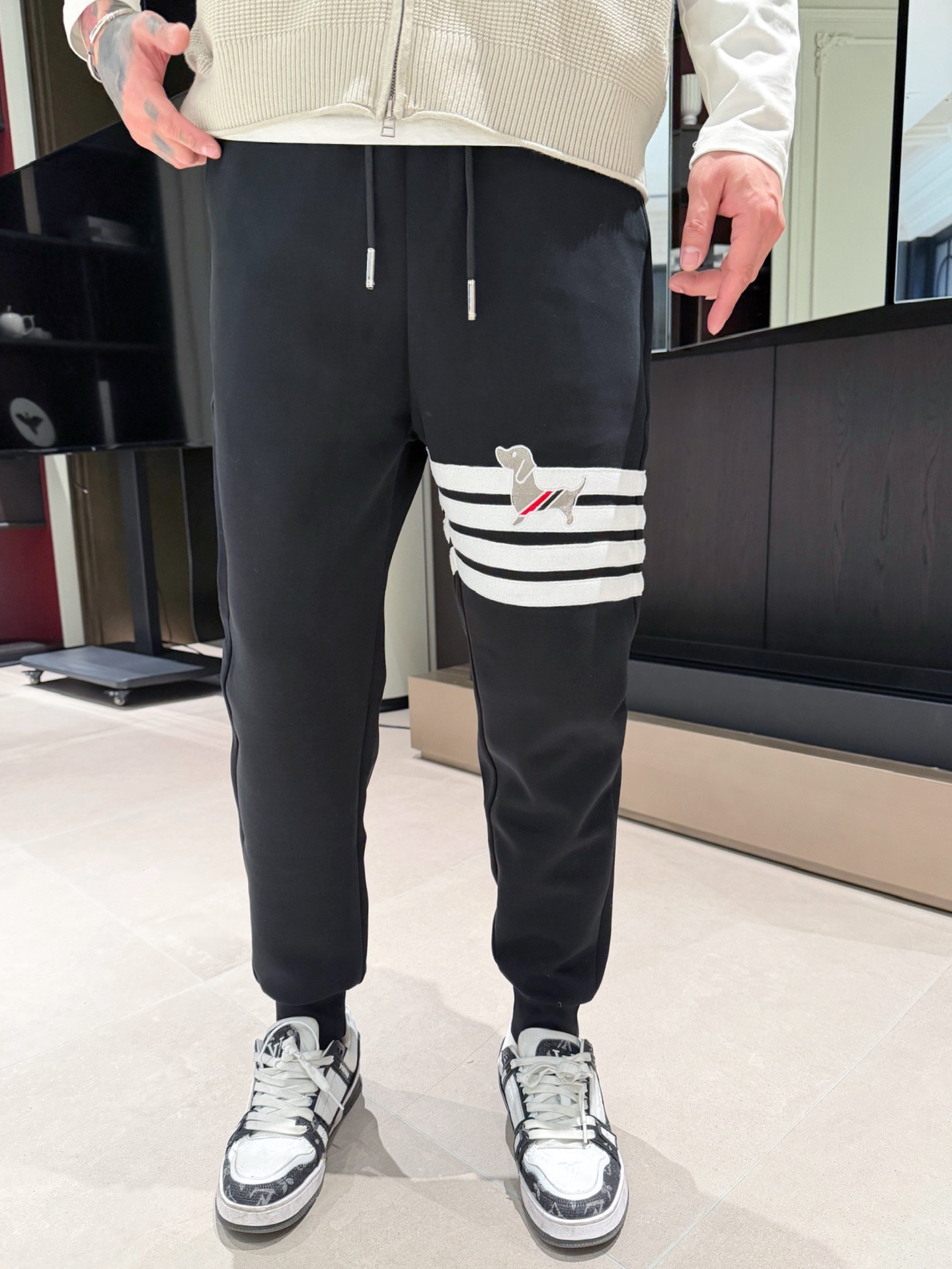 这款衣服是AAAAA 1:1 质量 (非常棒). 使用了和原版一模一样的材料. 商标部分也保持了和汤姆布朗/Thom Browne一样. 图片拍摄是实物衣服拍摄, 您所收到的实物保证和我们图片一模一样.