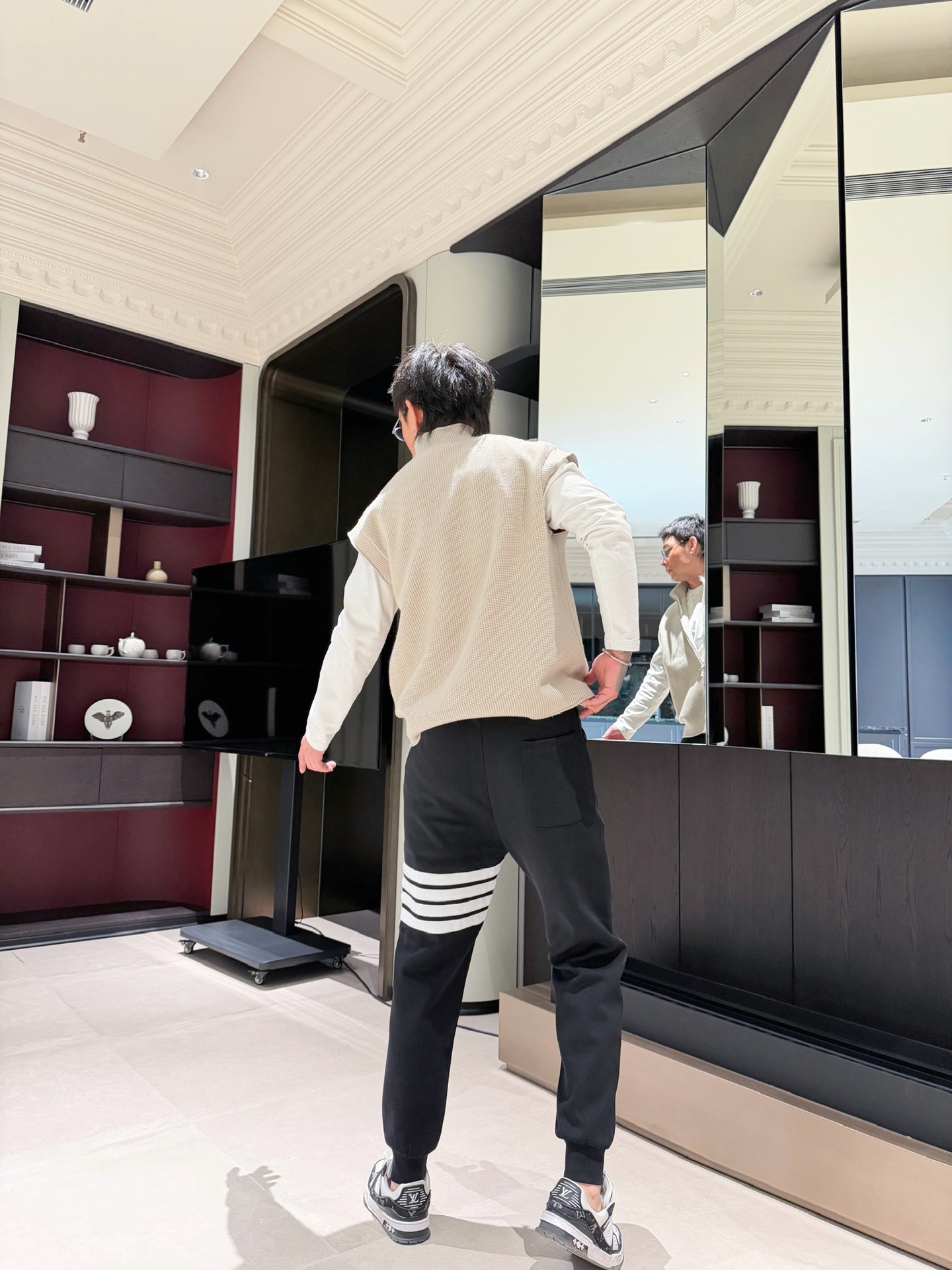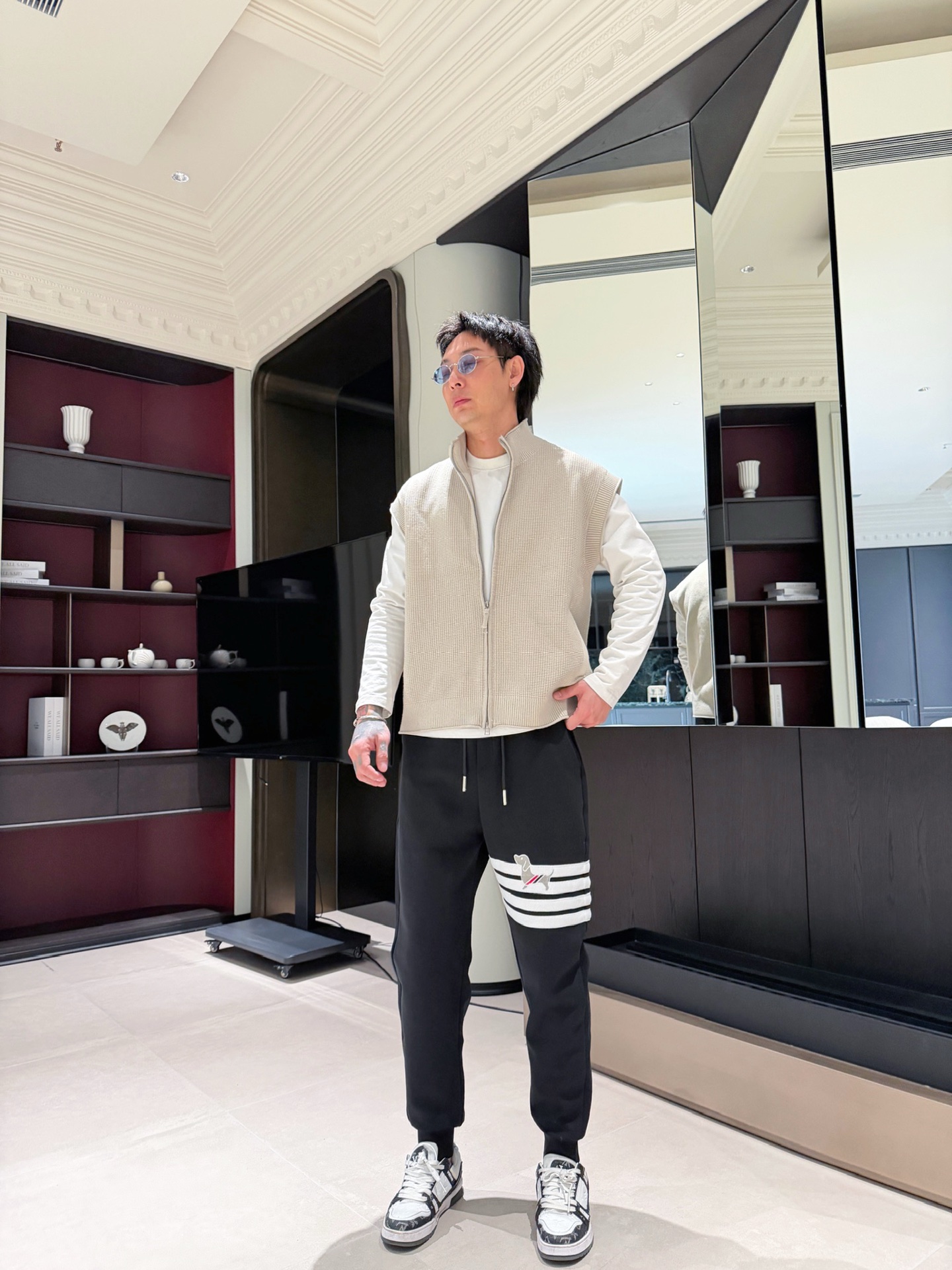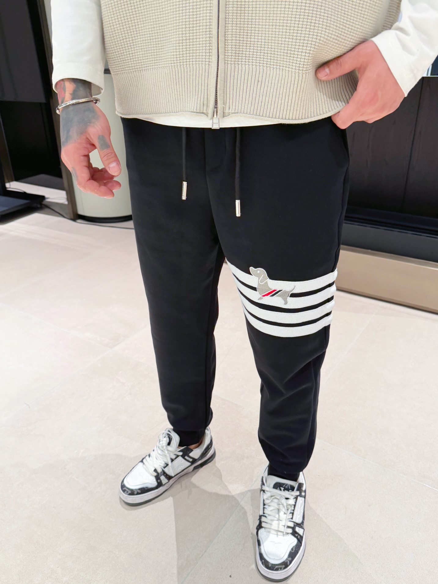 这款衣服是AAAAA 1:1 质量 (非常棒). 使用了和原版一模一样的材料. 商标部分也保持了和汤姆布朗/Thom Browne一样. 图片拍摄是实物衣服拍摄, 您所收到的实物保证和我们图片一模一样.