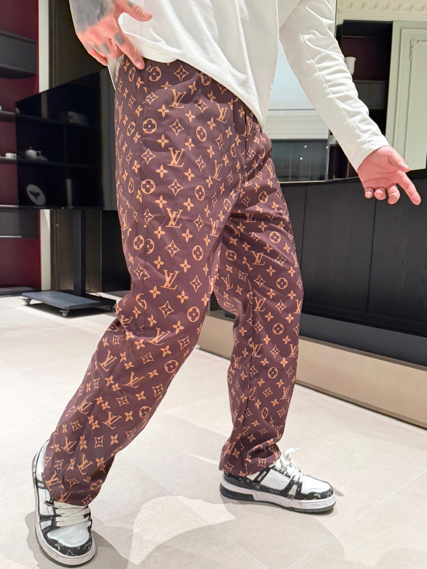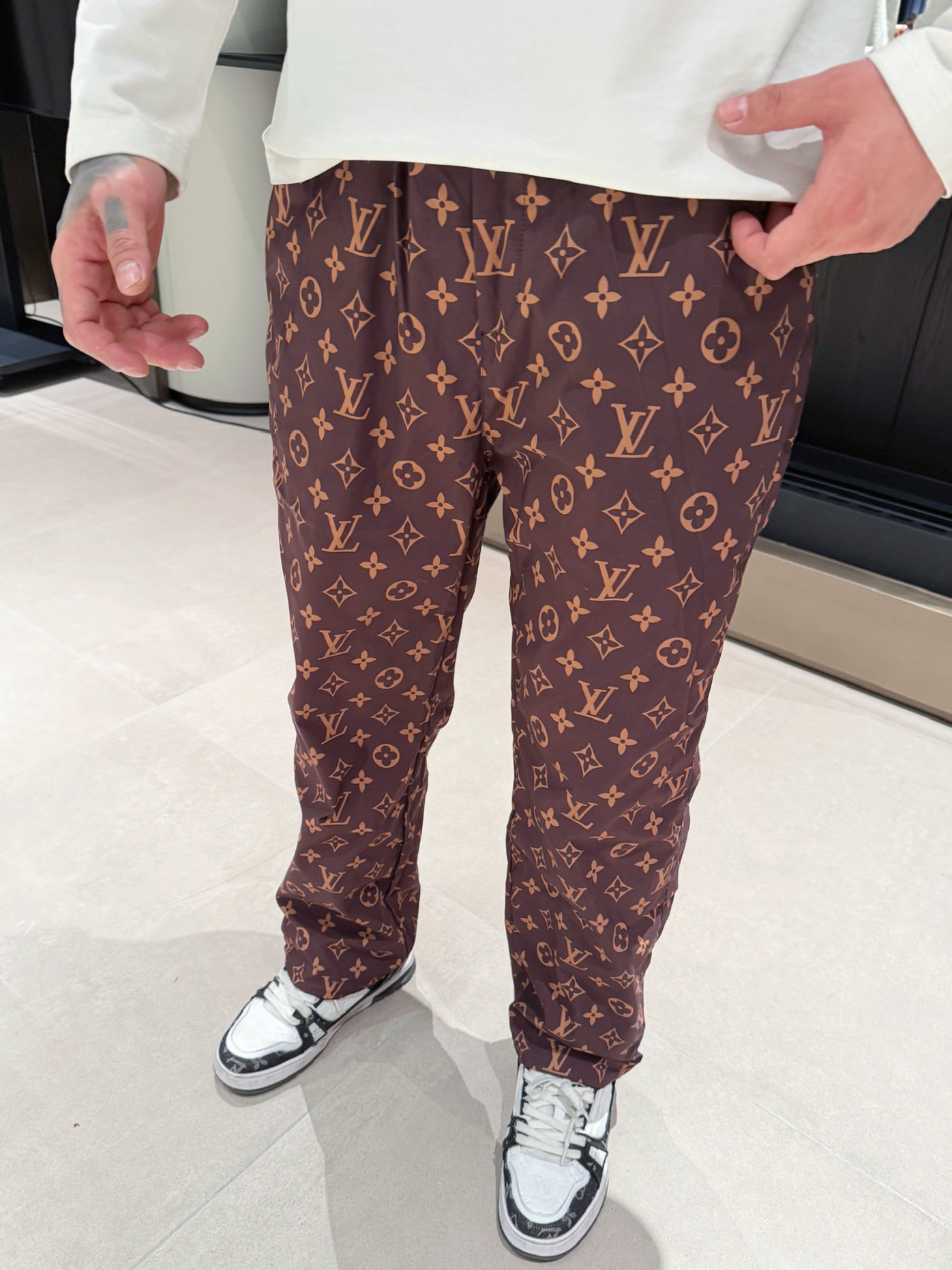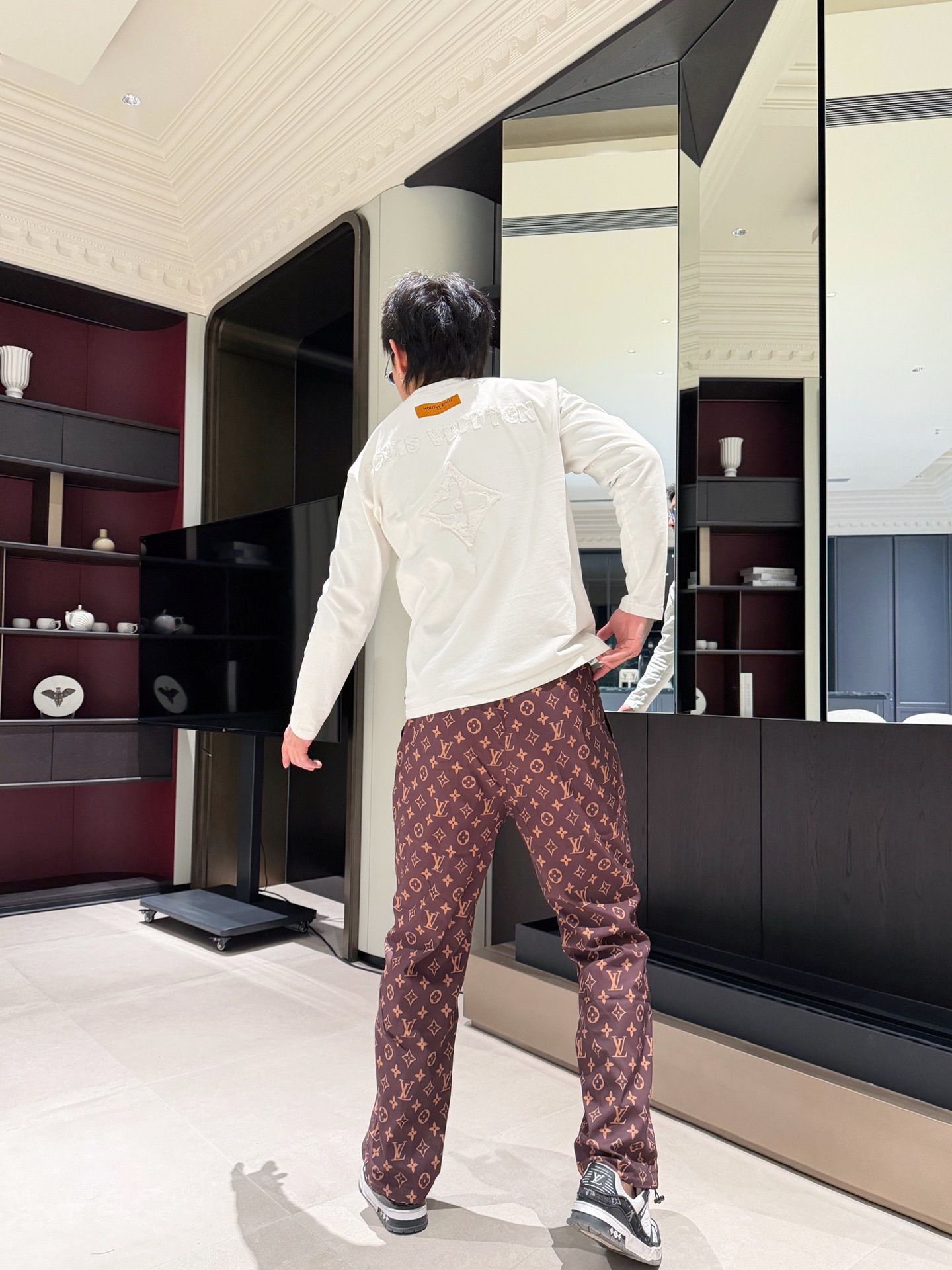 这款衣服是AAAAA 1:1 质量 (非常棒). 使用了和原版一模一样的材料. 商标部分也保持了和路易威登/Louis Vuitton一样. 图片拍摄是实物衣服拍摄, 您所收到的实物保证和我们图片一模一样.