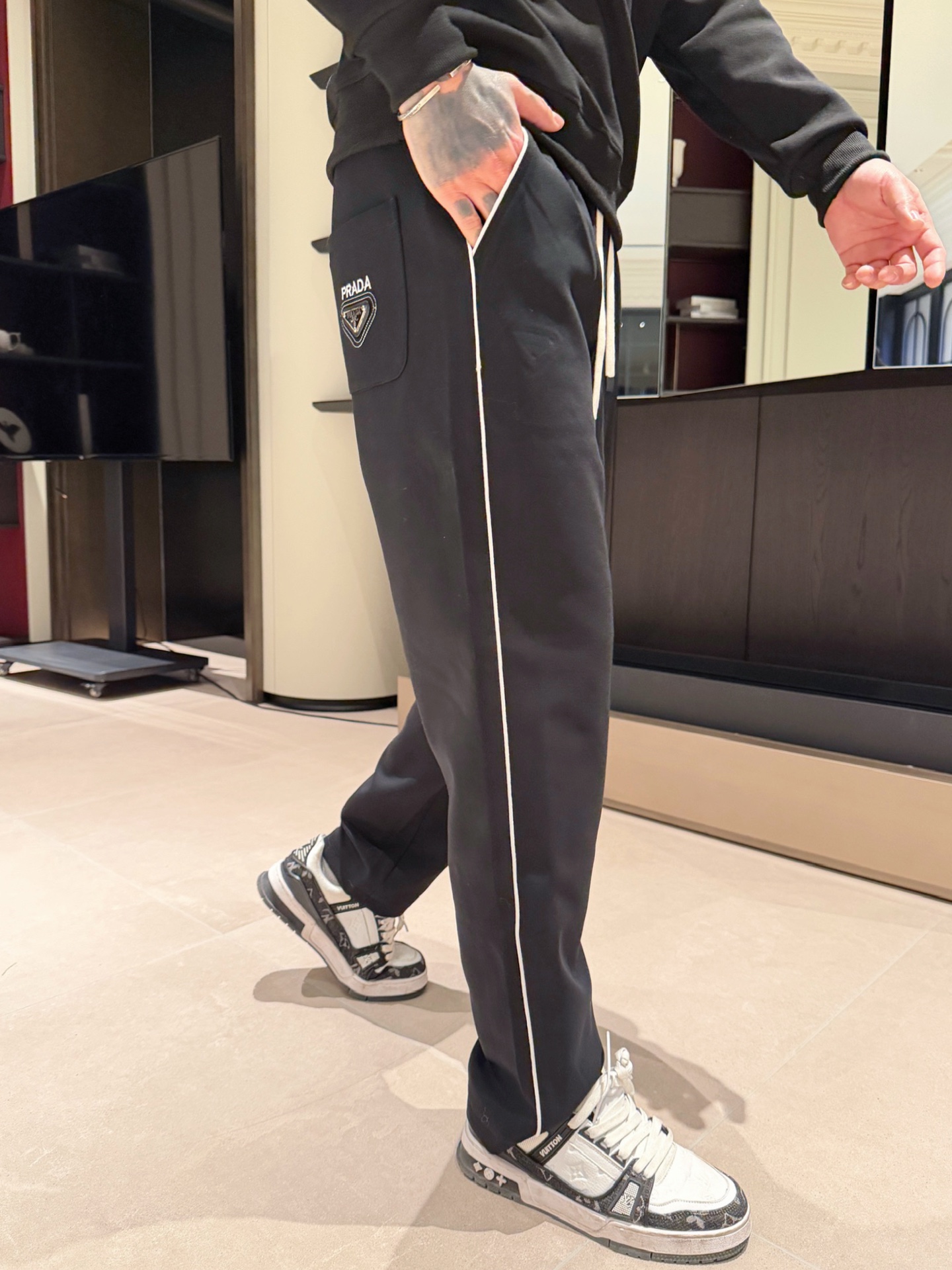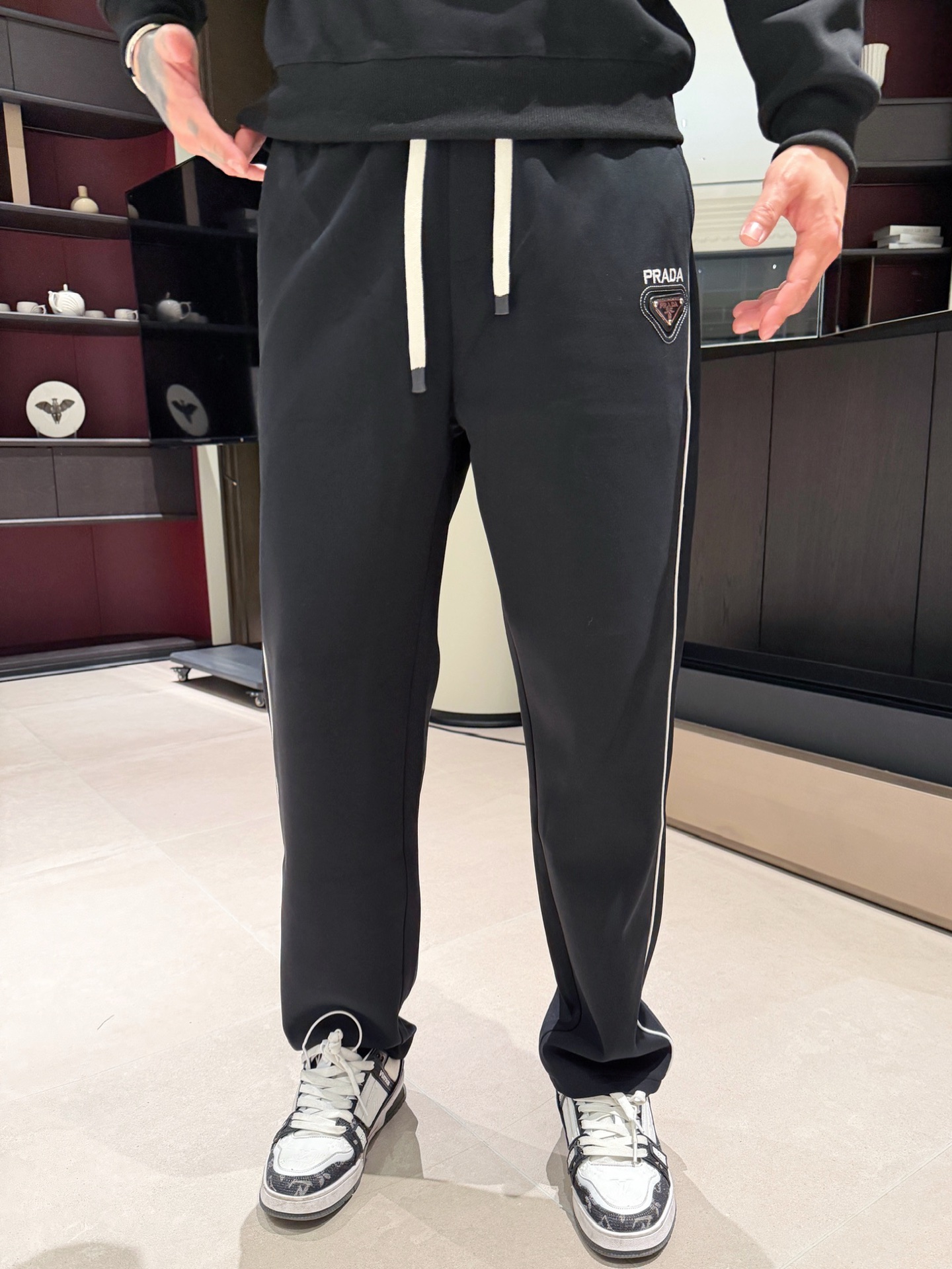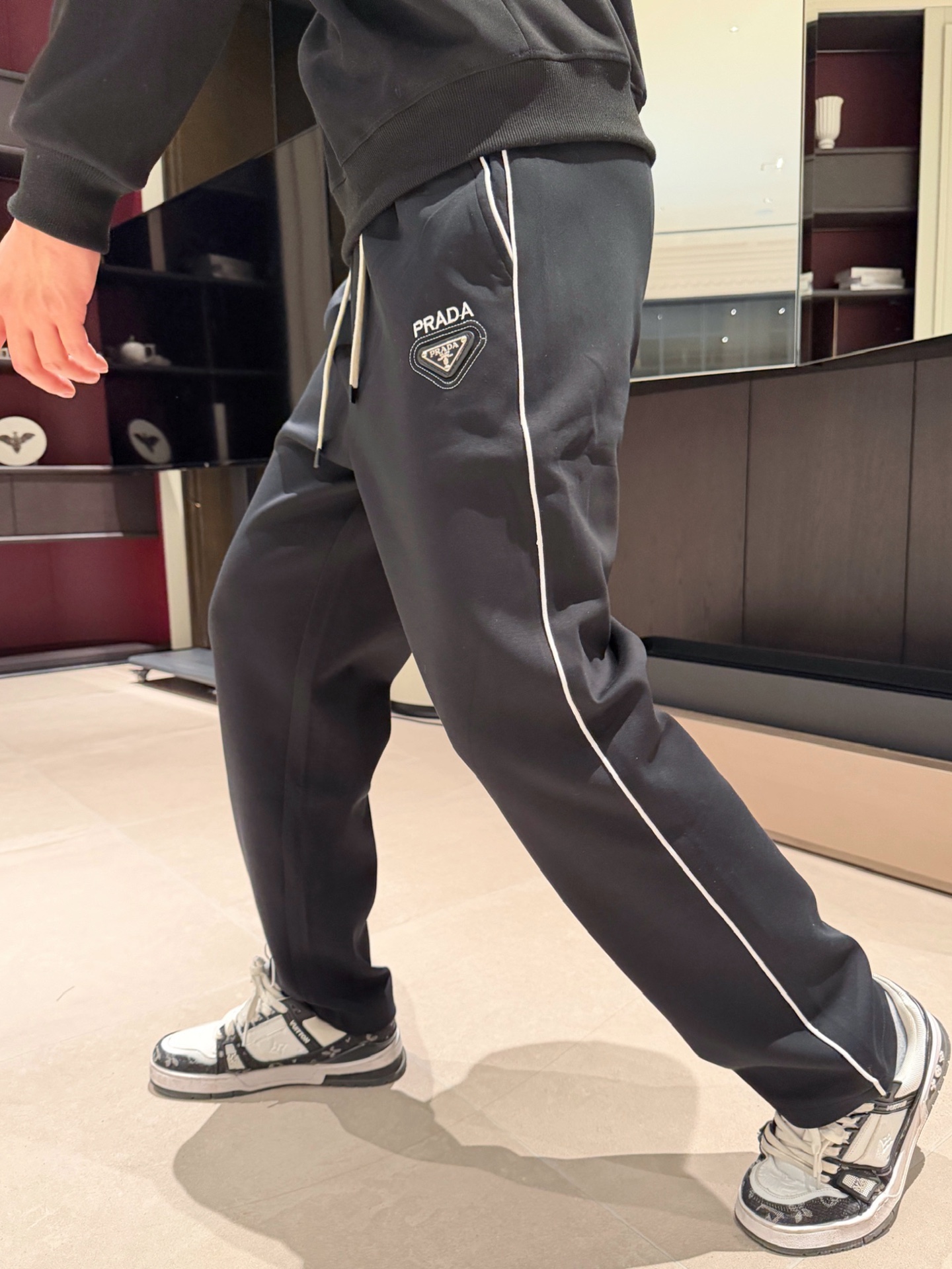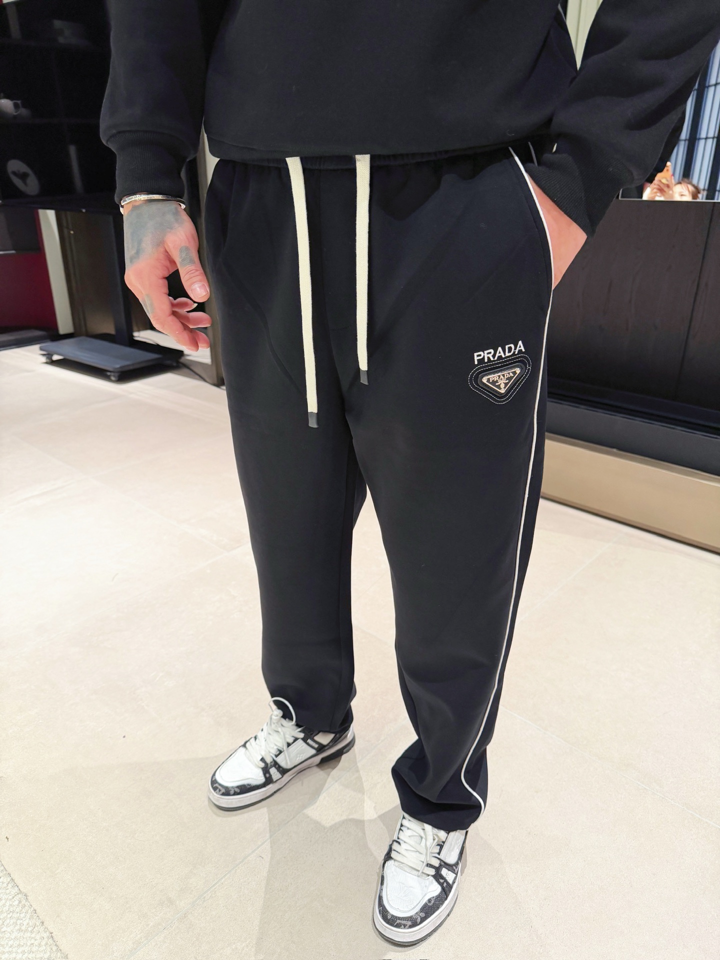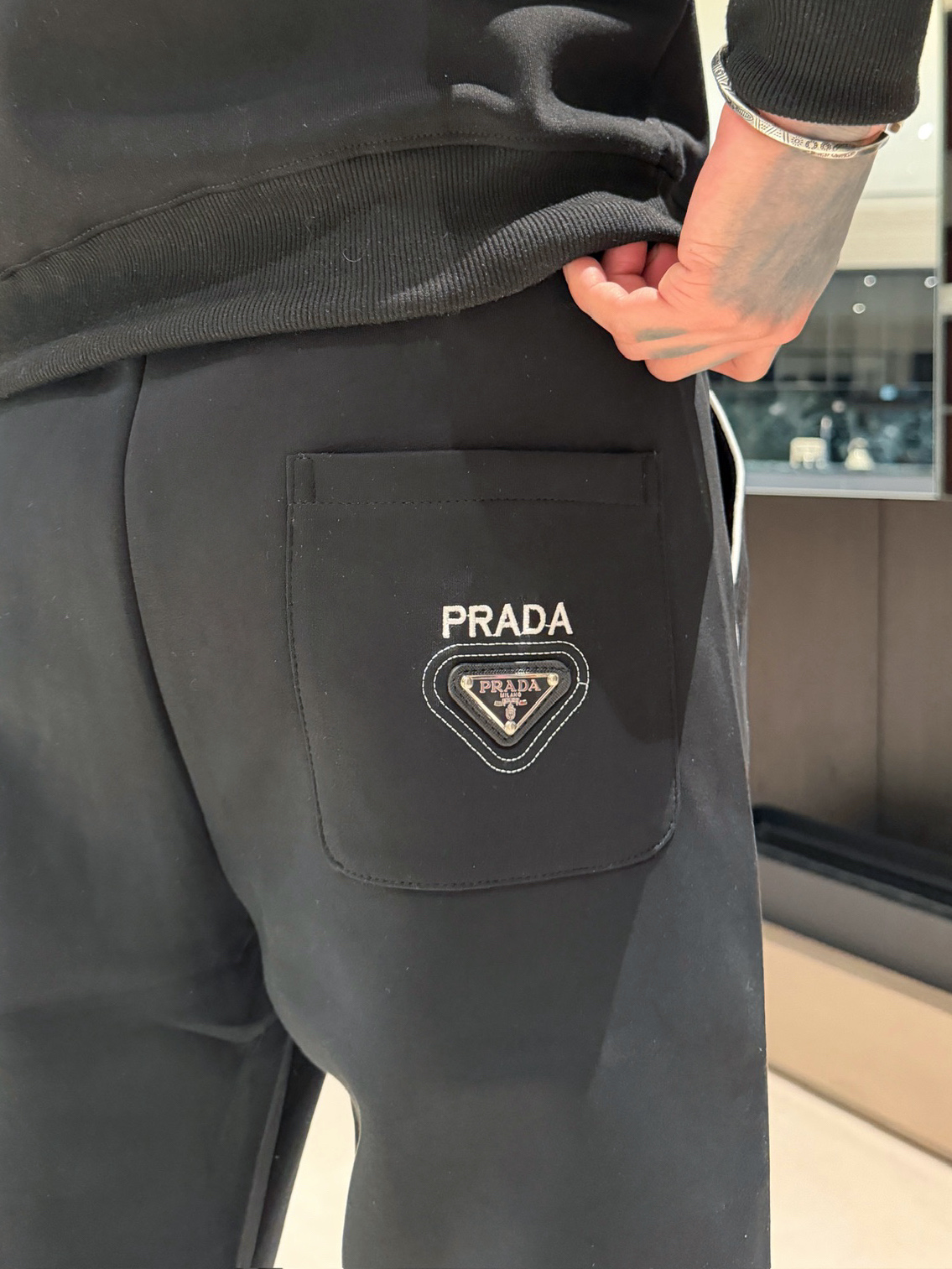 这款衣服是AAAAA 1:1 质量 (非常棒). 使用了和原版一模一样的材料. 商标部分也保持了和普拉达/Prada一样. 图片拍摄是实物衣服拍摄, 您所收到的实物保证和我们图片一模一样.