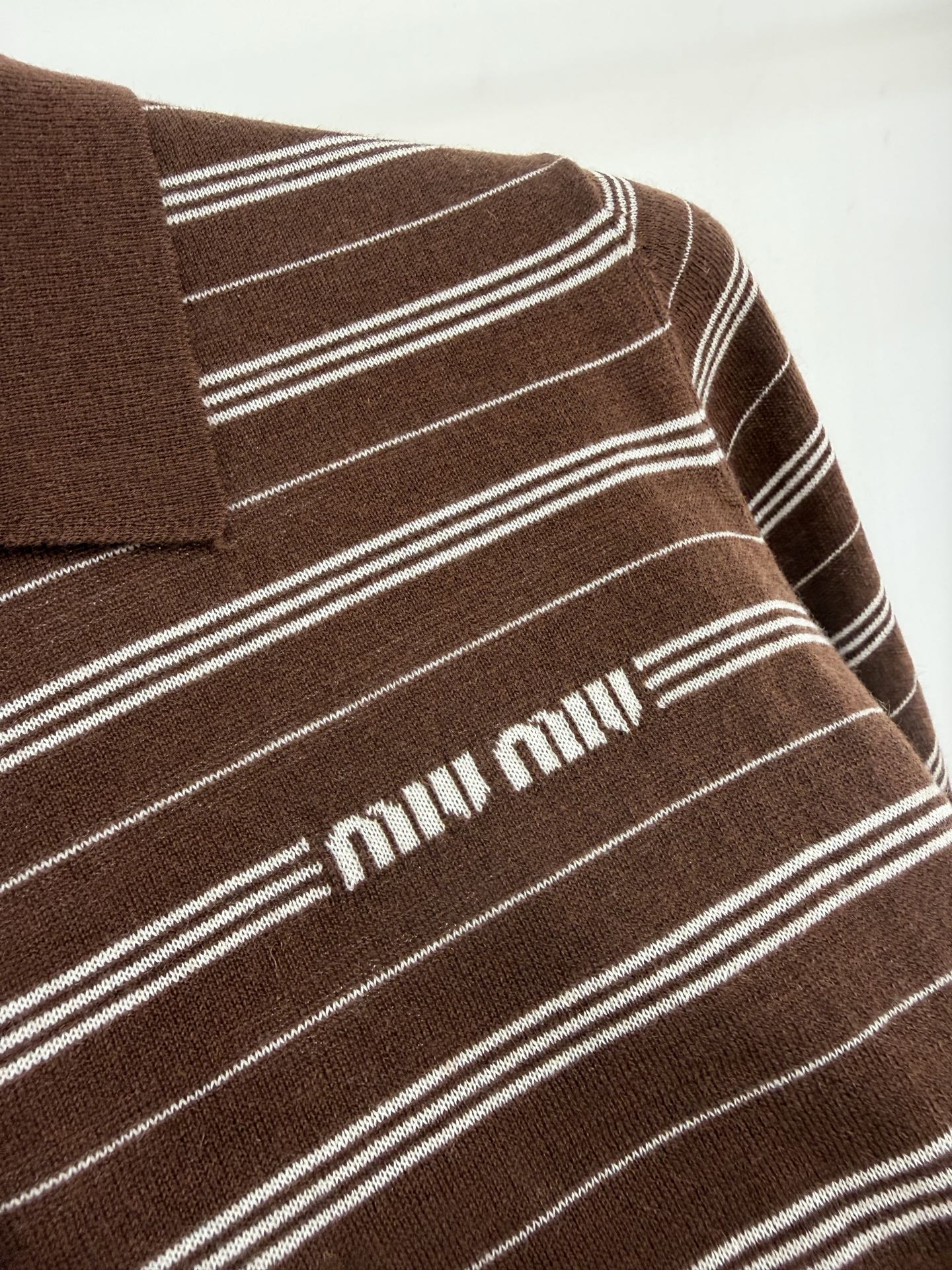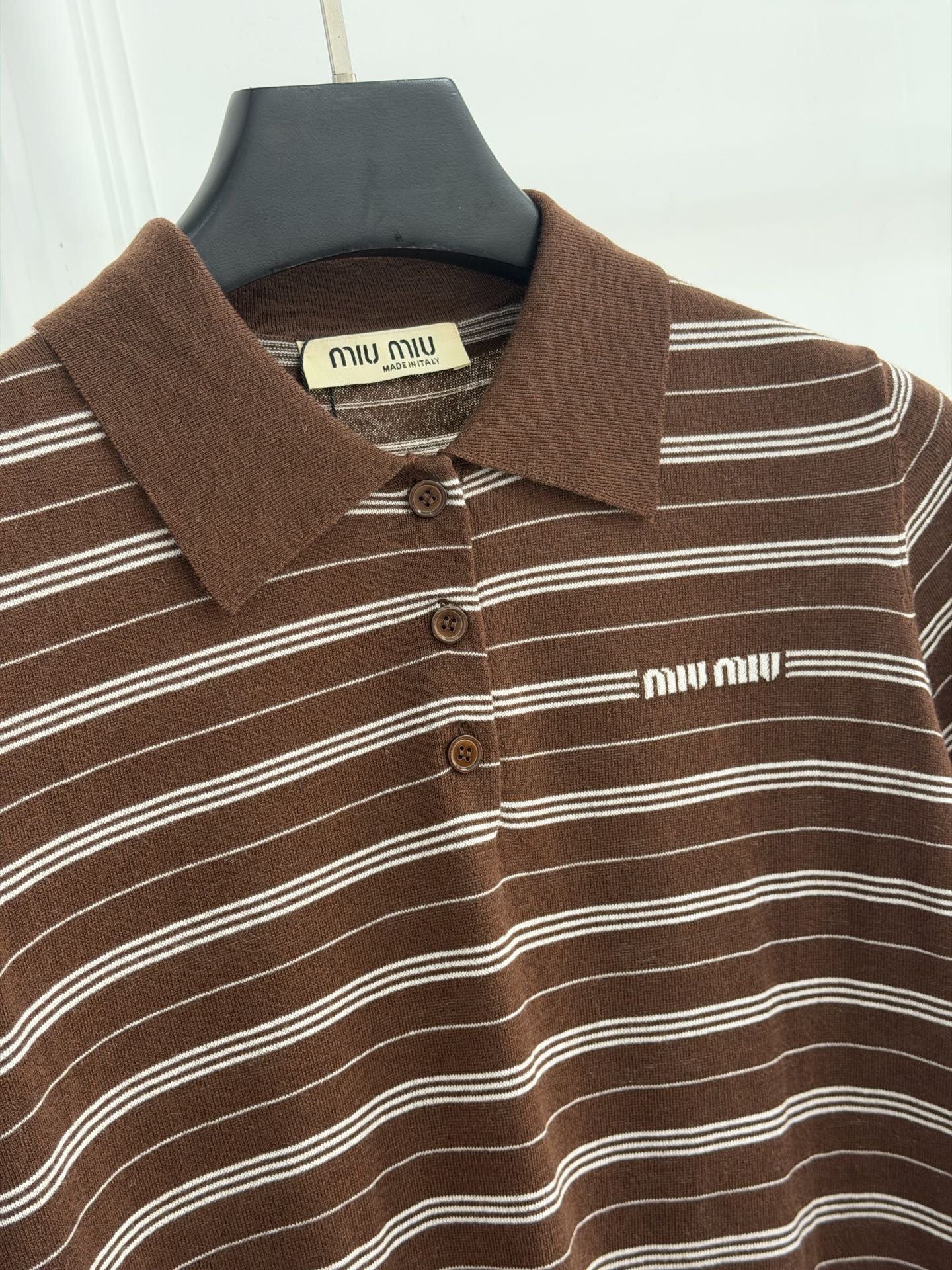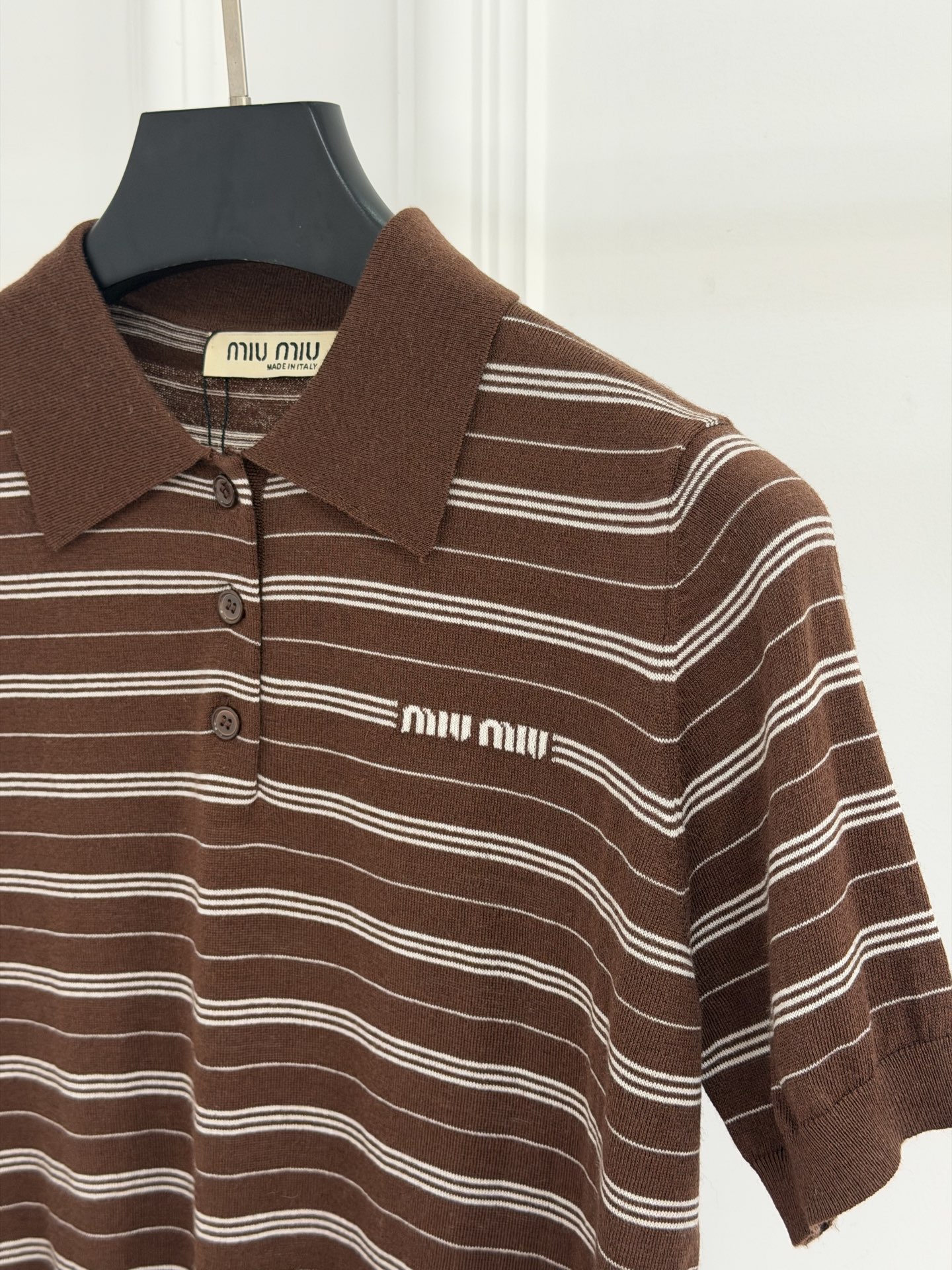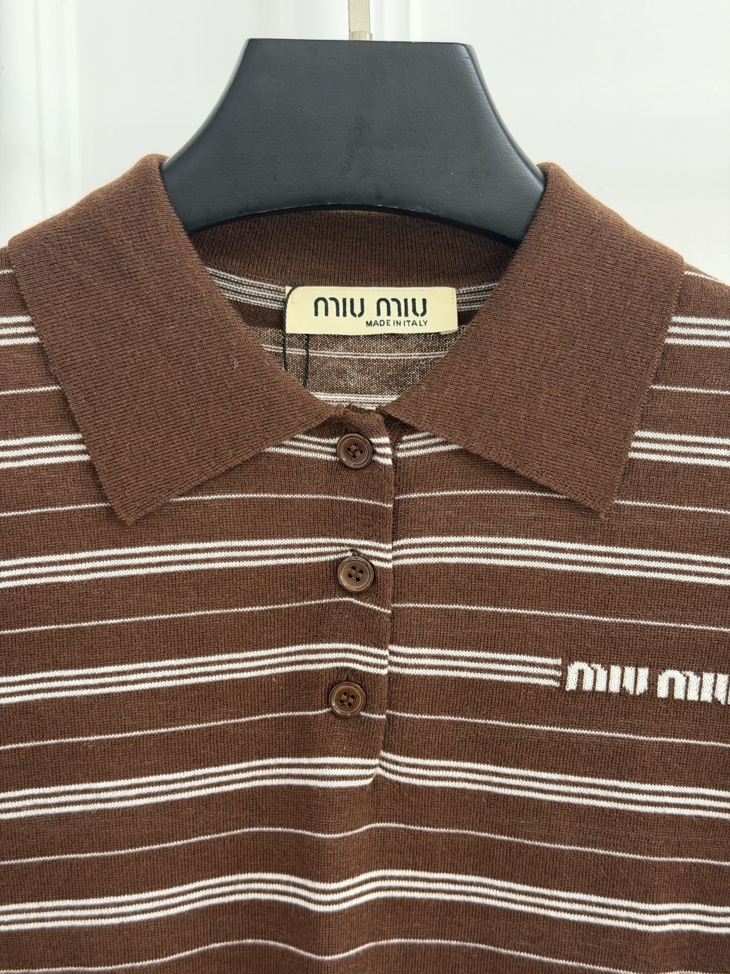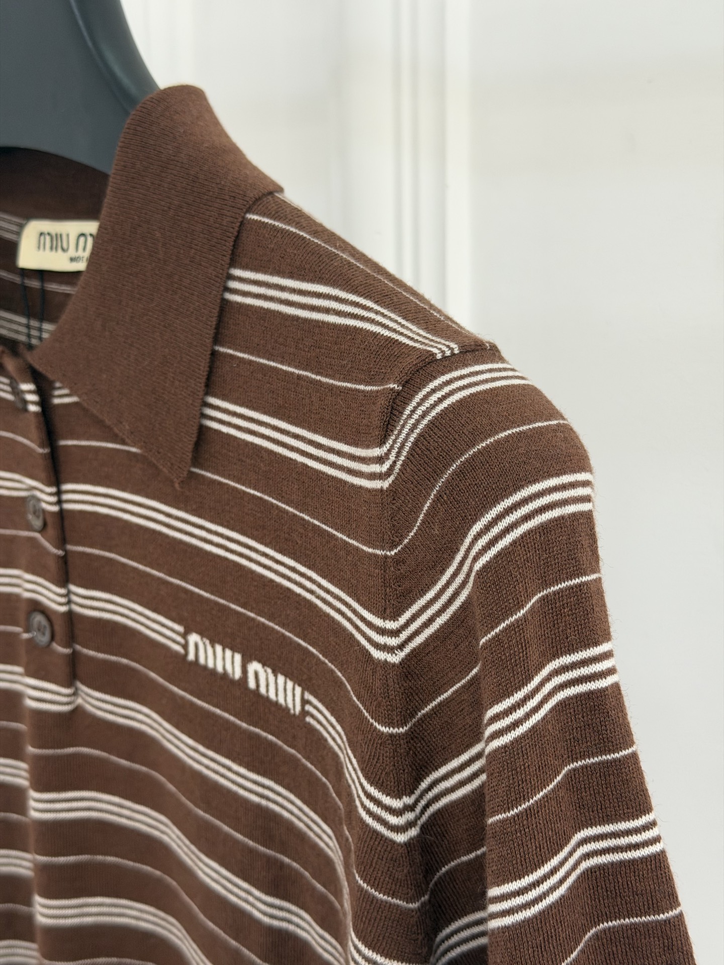 这款衣服是AAAAA 1:1 质量 (非常棒). 使用了和原版一模一样的材料. 商标部分也保持了和缪缪/Miu Miu一样. 图片拍摄是实物衣服拍摄, 您所收到的实物保证和我们图片一模一样.