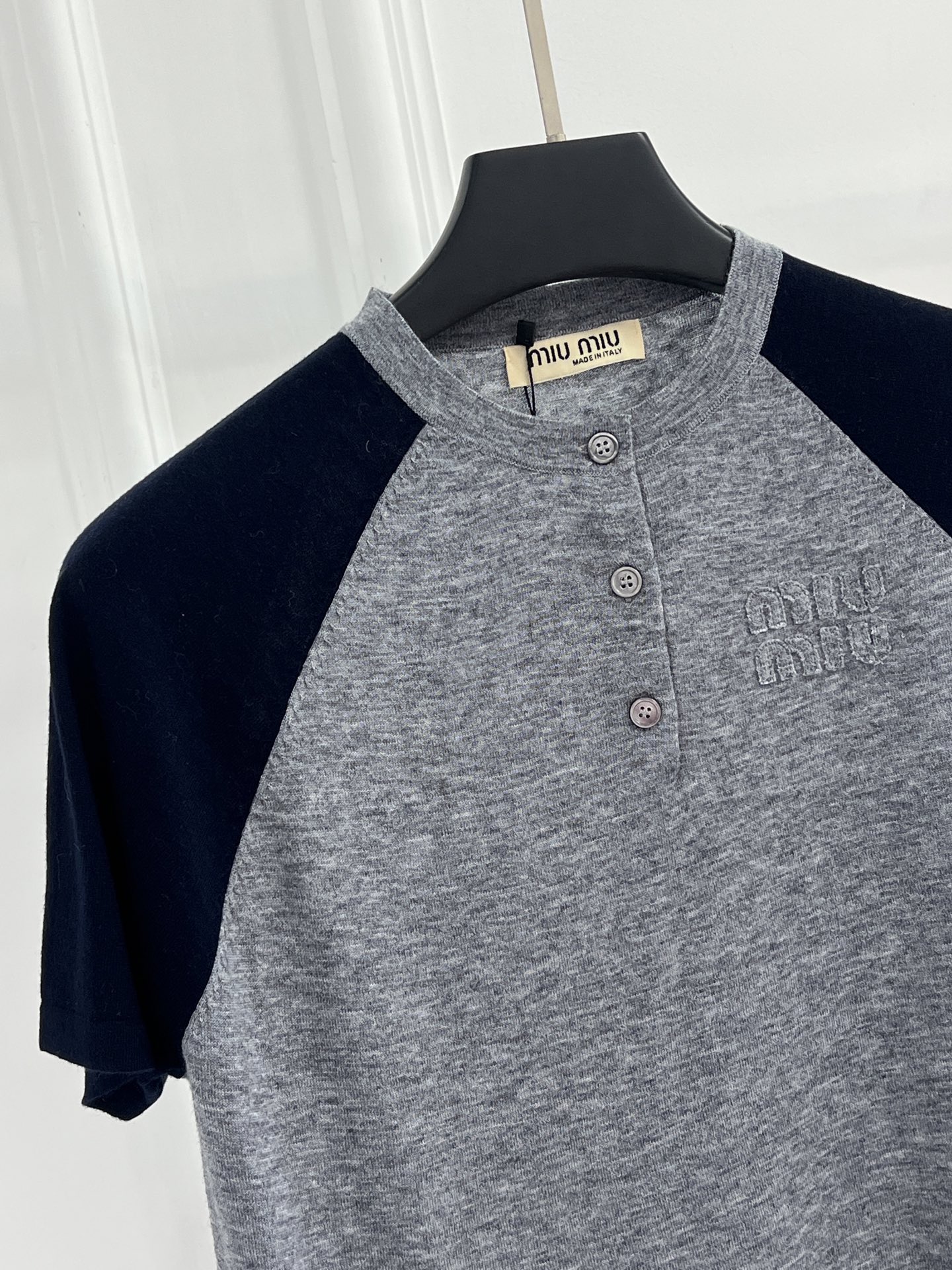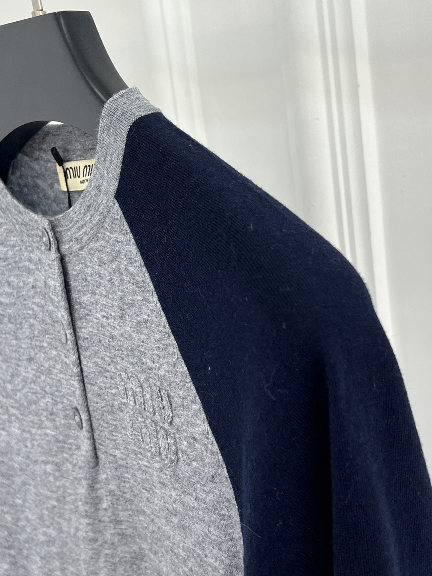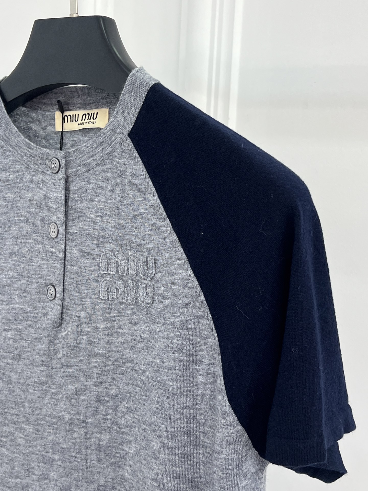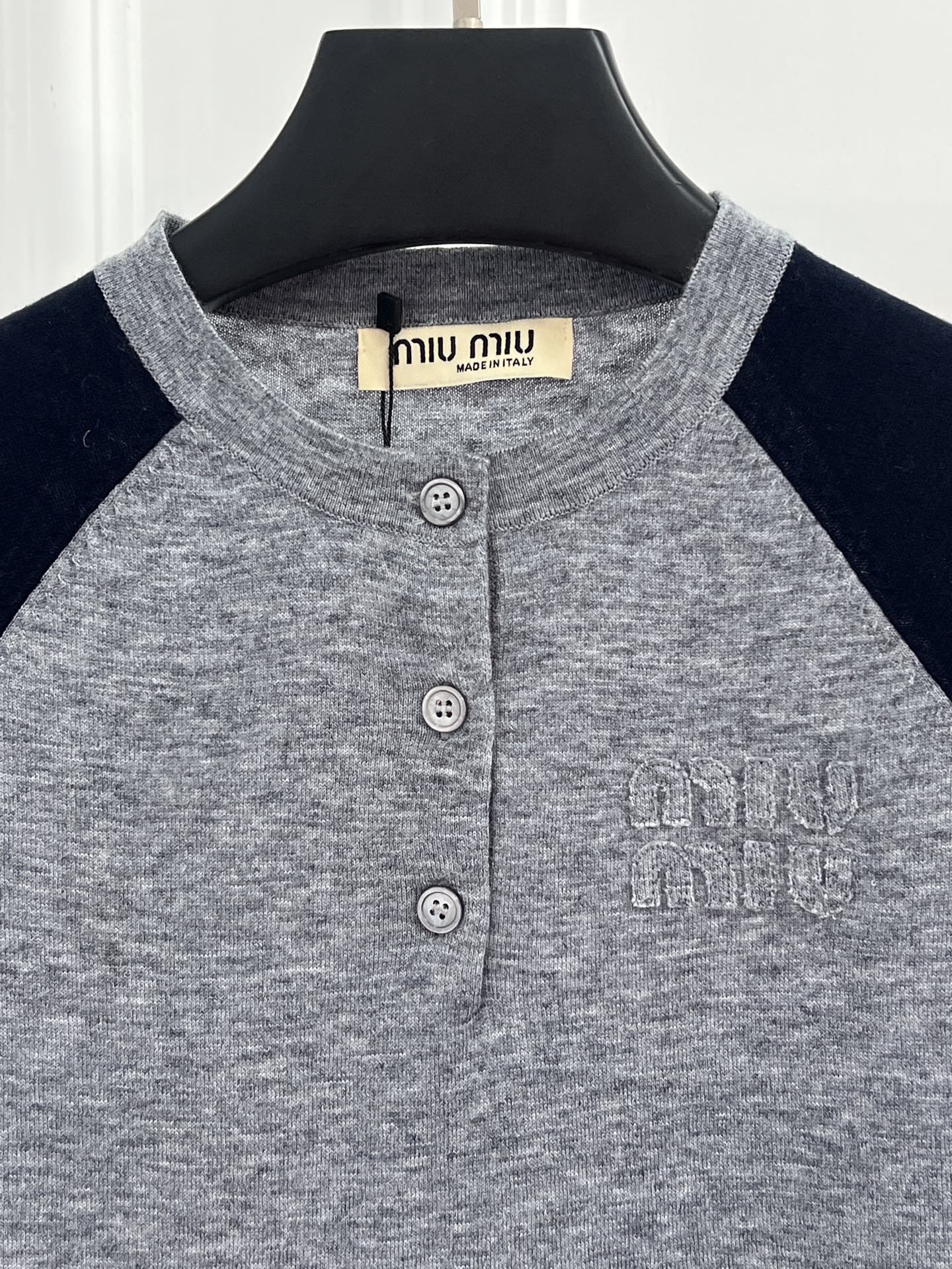 这款衣服是AAAAA 1:1 质量 (非常棒). 使用了和原版一模一样的材料. 商标部分也保持了和缪缪/Miu Miu一样. 图片拍摄是实物衣服拍摄, 您所收到的实物保证和我们图片一模一样.