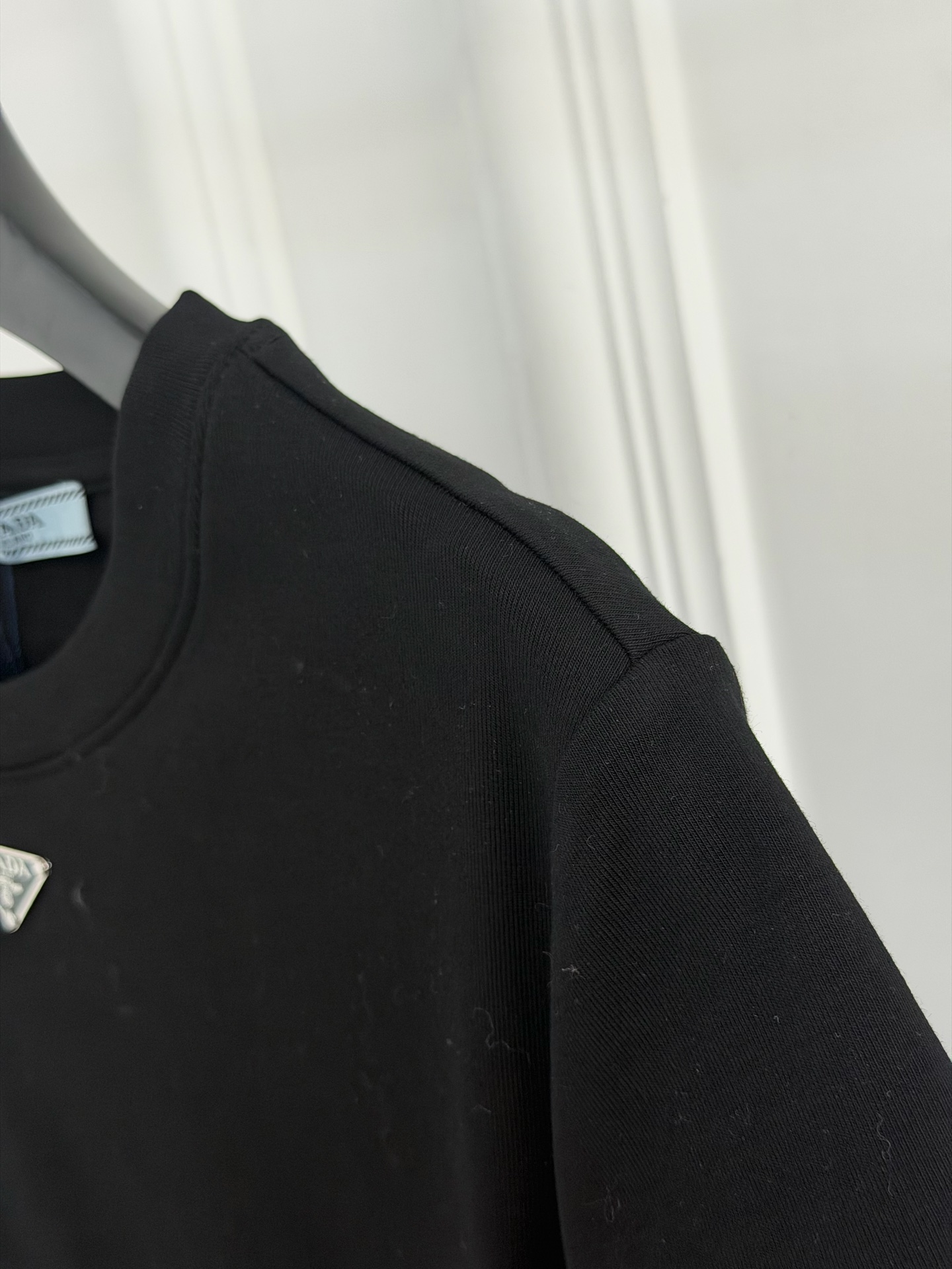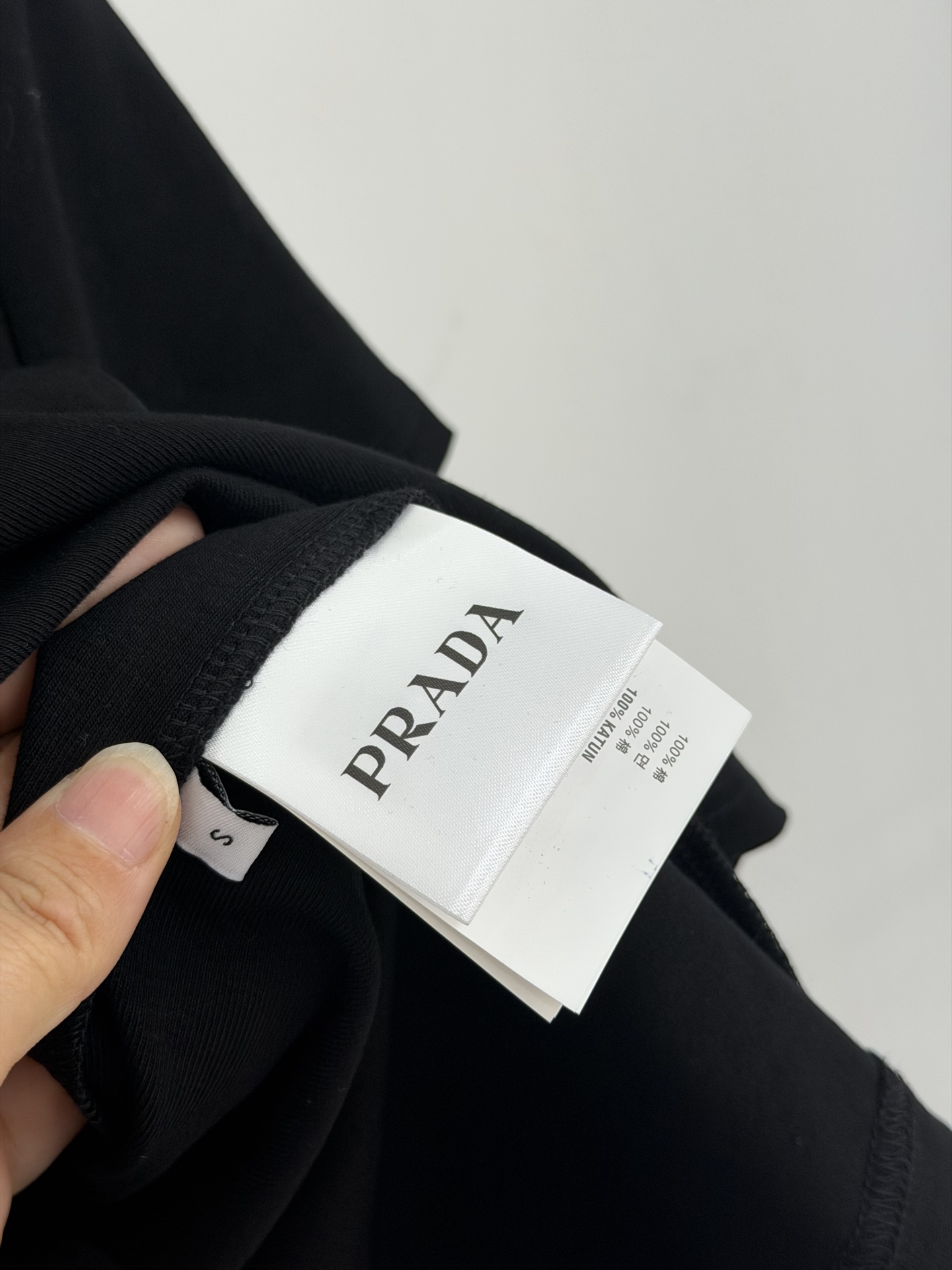 这款衣服是AAAAA 1:1 质量 (非常棒). 使用了和原版一模一样的材料. 商标部分也保持了和普拉达/Prada一样. 图片拍摄是实物衣服拍摄, 您所收到的实物保证和我们图片一模一样.