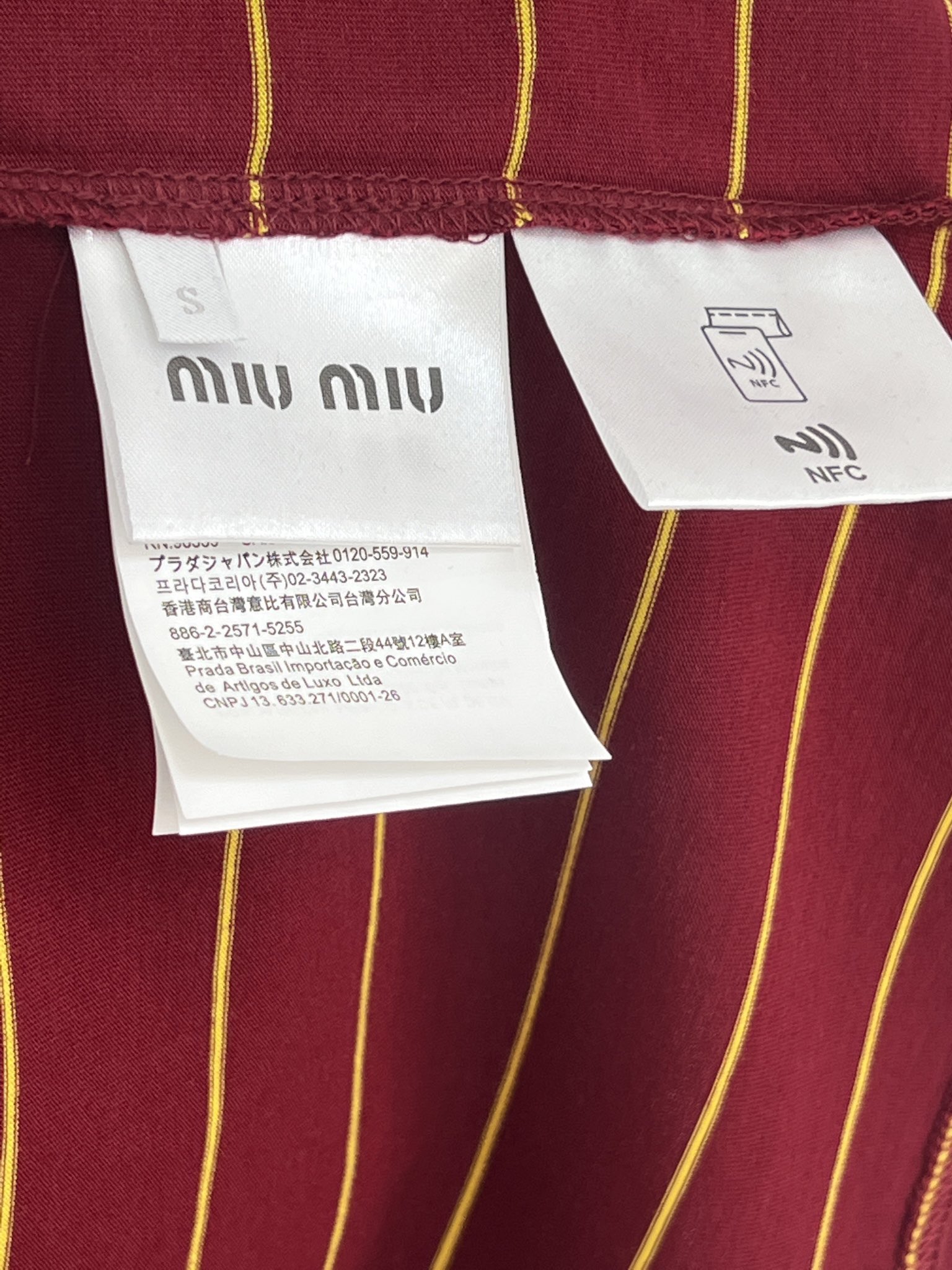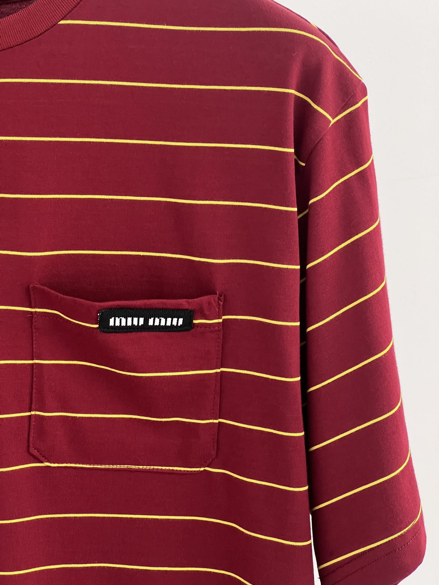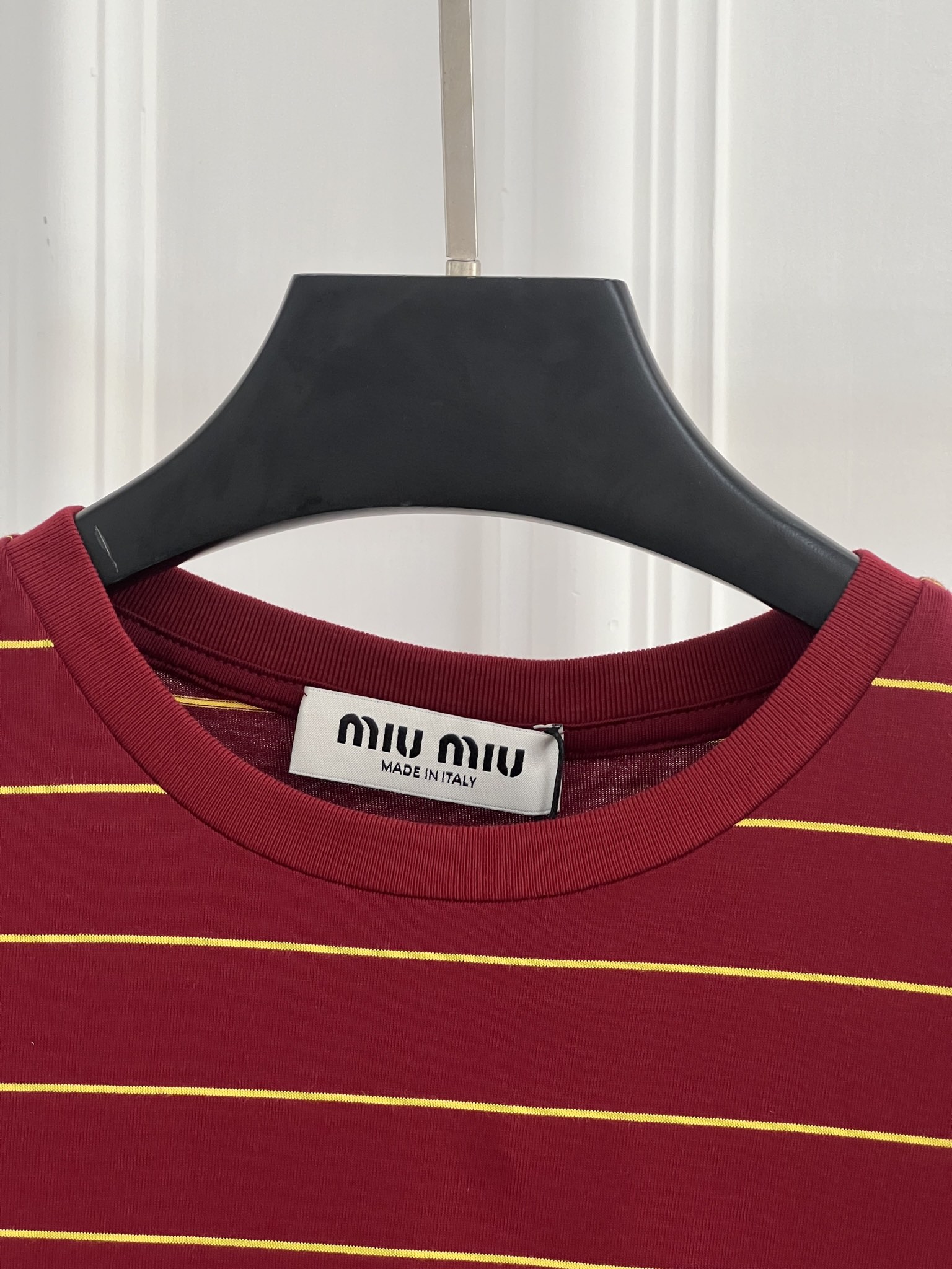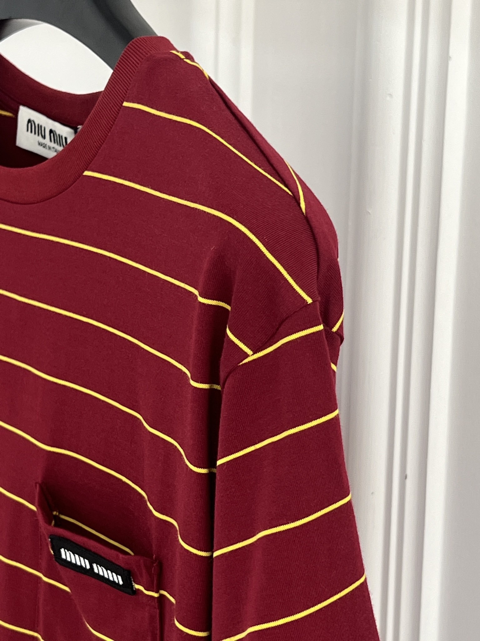 这款衣服是AAAAA 1:1 质量 (非常棒). 使用了和原版一模一样的材料. 商标部分也保持了和缪缪/Miu Miu一样. 图片拍摄是实物衣服拍摄, 您所收到的实物保证和我们图片一模一样.