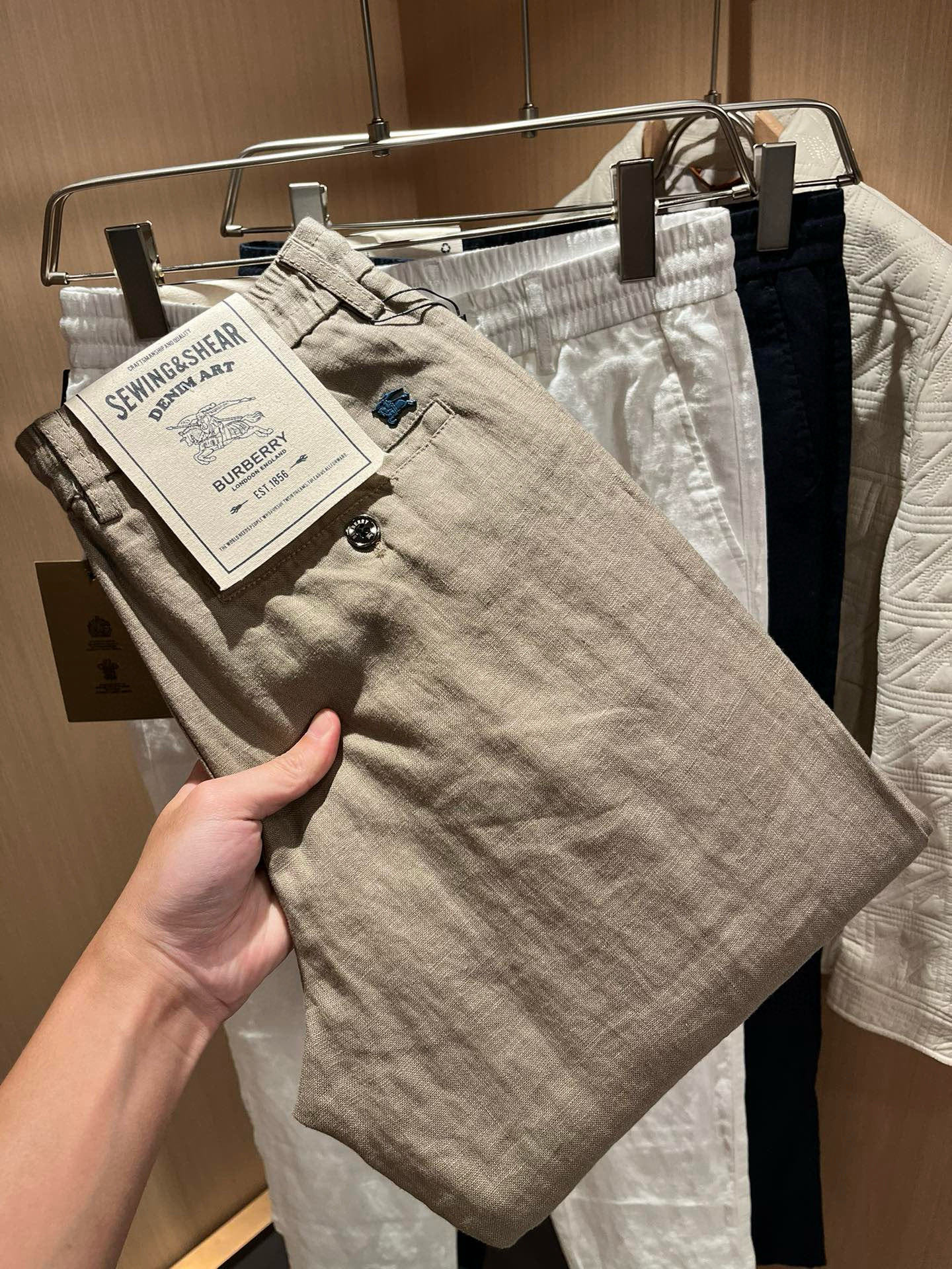 这款衣服是AAAAA 1:1 质量 (非常棒). 使用了和原版一模一样的材料. 商标部分也保持了和巴宝莉/Burberry一样. 图片拍摄是实物衣服拍摄, 您所收到的实物保证和我们图片一模一样.