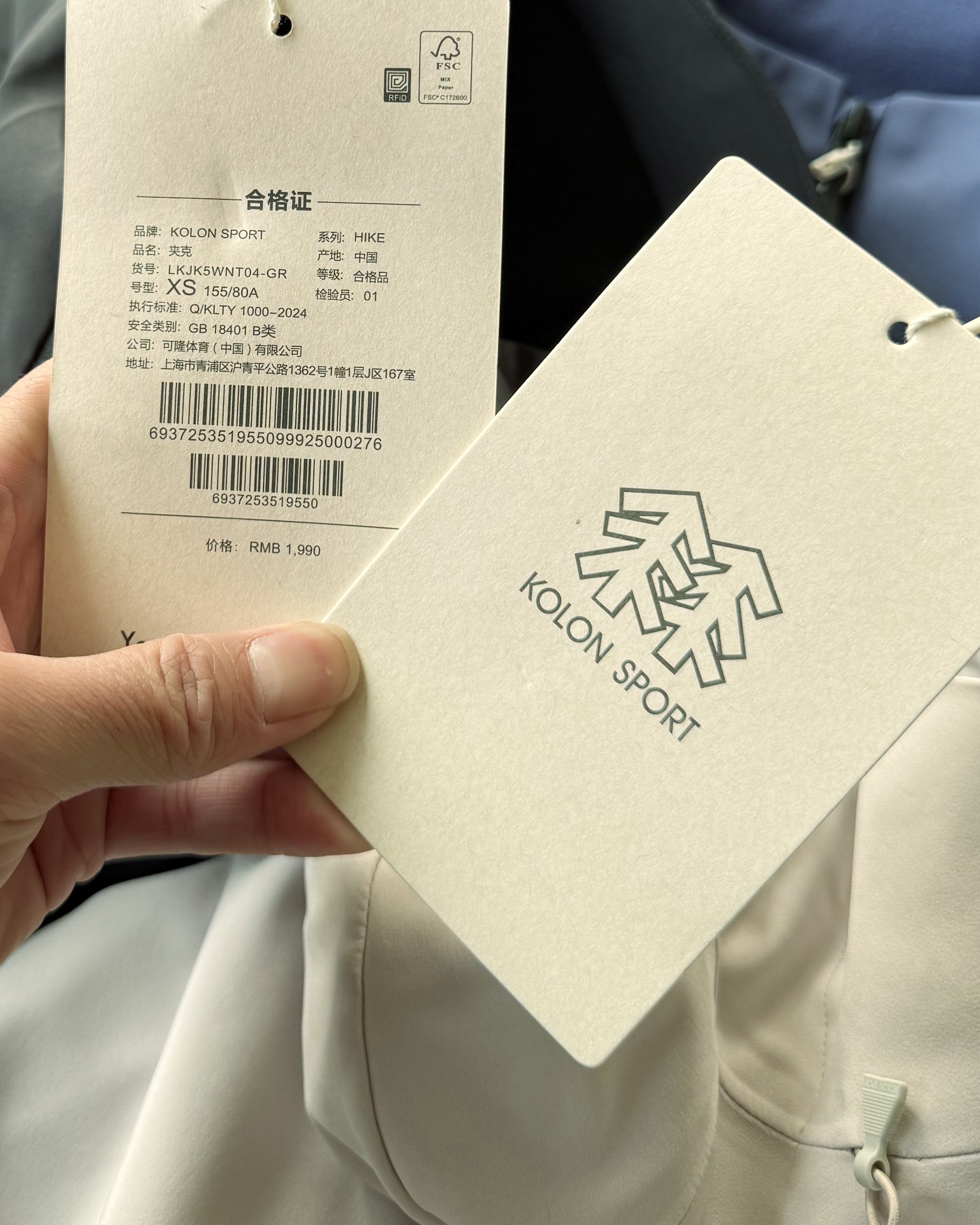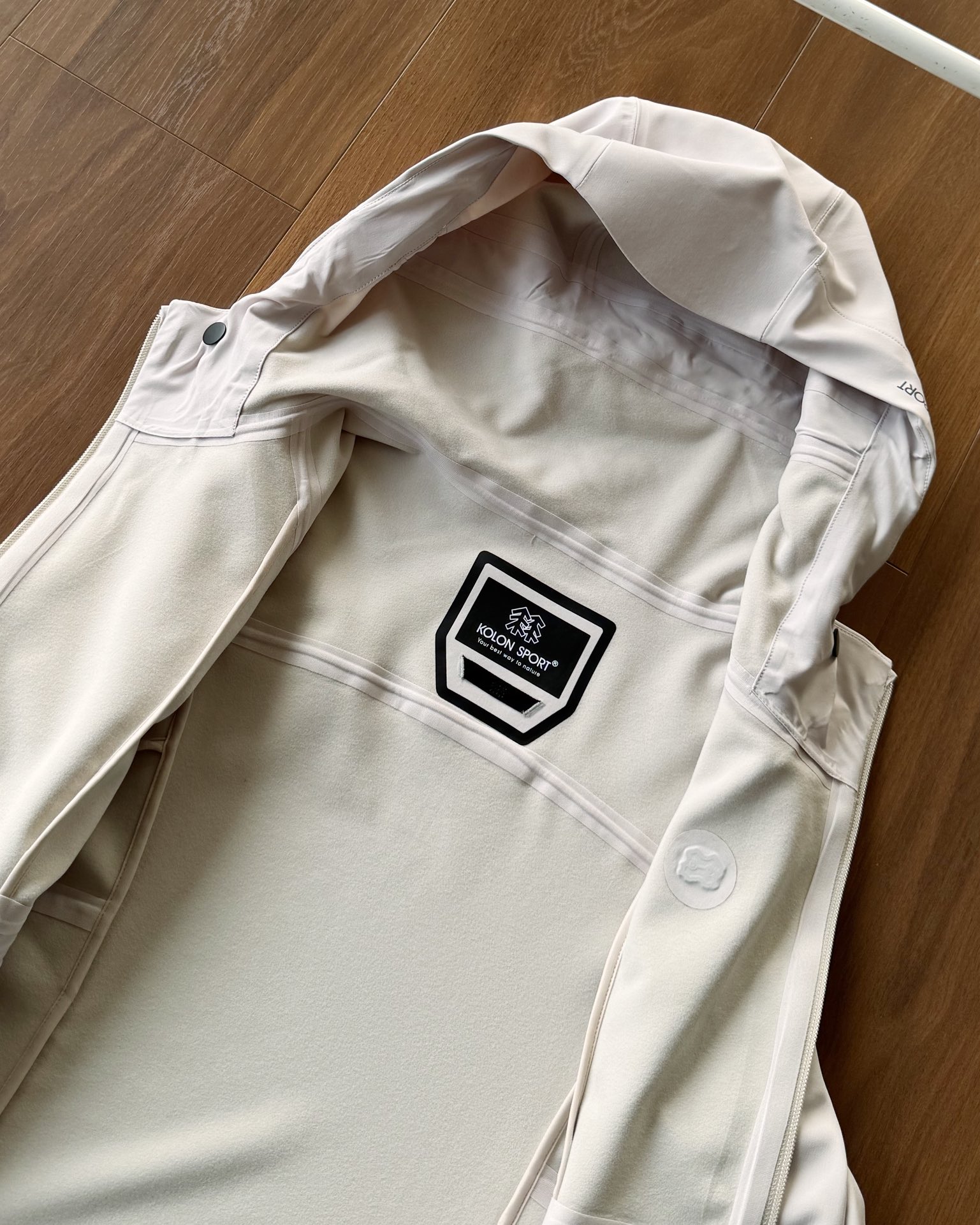 这款衣服是AAAAA 1:1 质量 (非常棒). 使用了和原版一模一样的材料. 商标部分也保持了和KOLON一样. 图片拍摄是实物衣服拍摄, 您所收到的实物保证和我们图片一模一样.