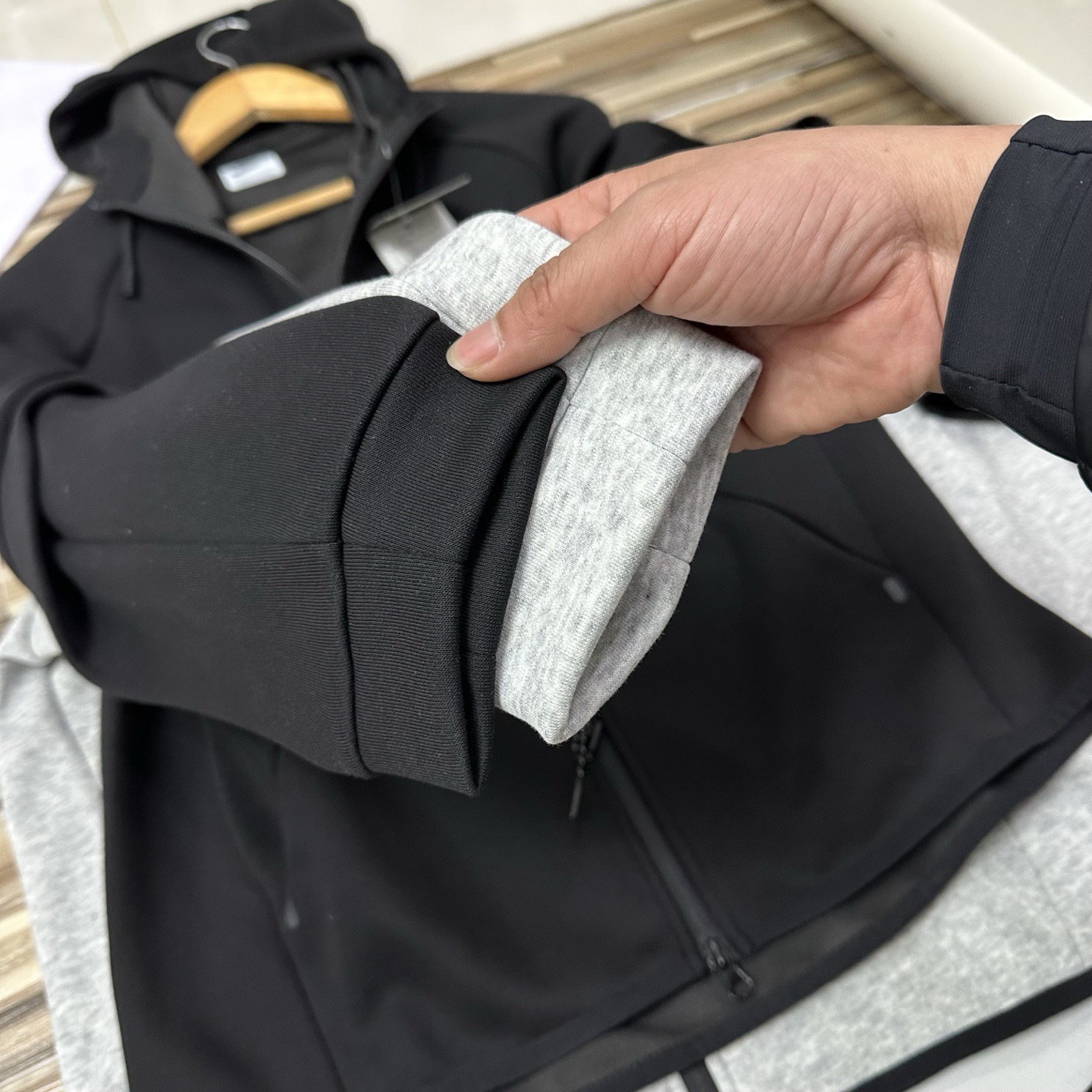 这款衣服是AAAAA 1:1 质量 (非常棒). 使用了和原版一模一样的材料. 商标部分也保持了和Nike一样. 图片拍摄是实物衣服拍摄, 您所收到的实物保证和我们图片一模一样.