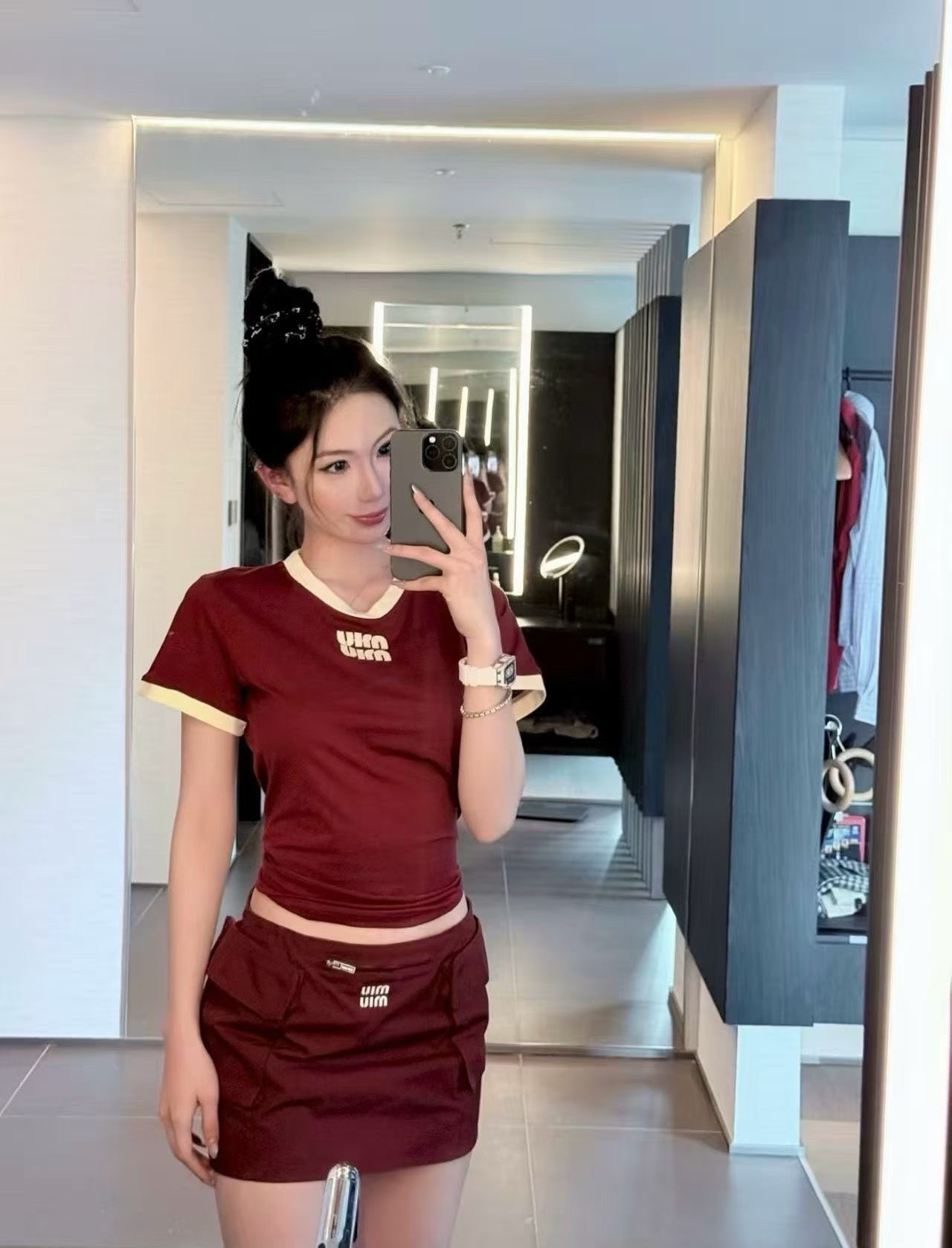 这款衣服是AAAAA 1:1 质量 (非常棒). 使用了和原版一模一样的材料. 商标部分也保持了和缪缪/Miu Miu一样. 图片拍摄是实物衣服拍摄, 您所收到的实物保证和我们图片一模一样.