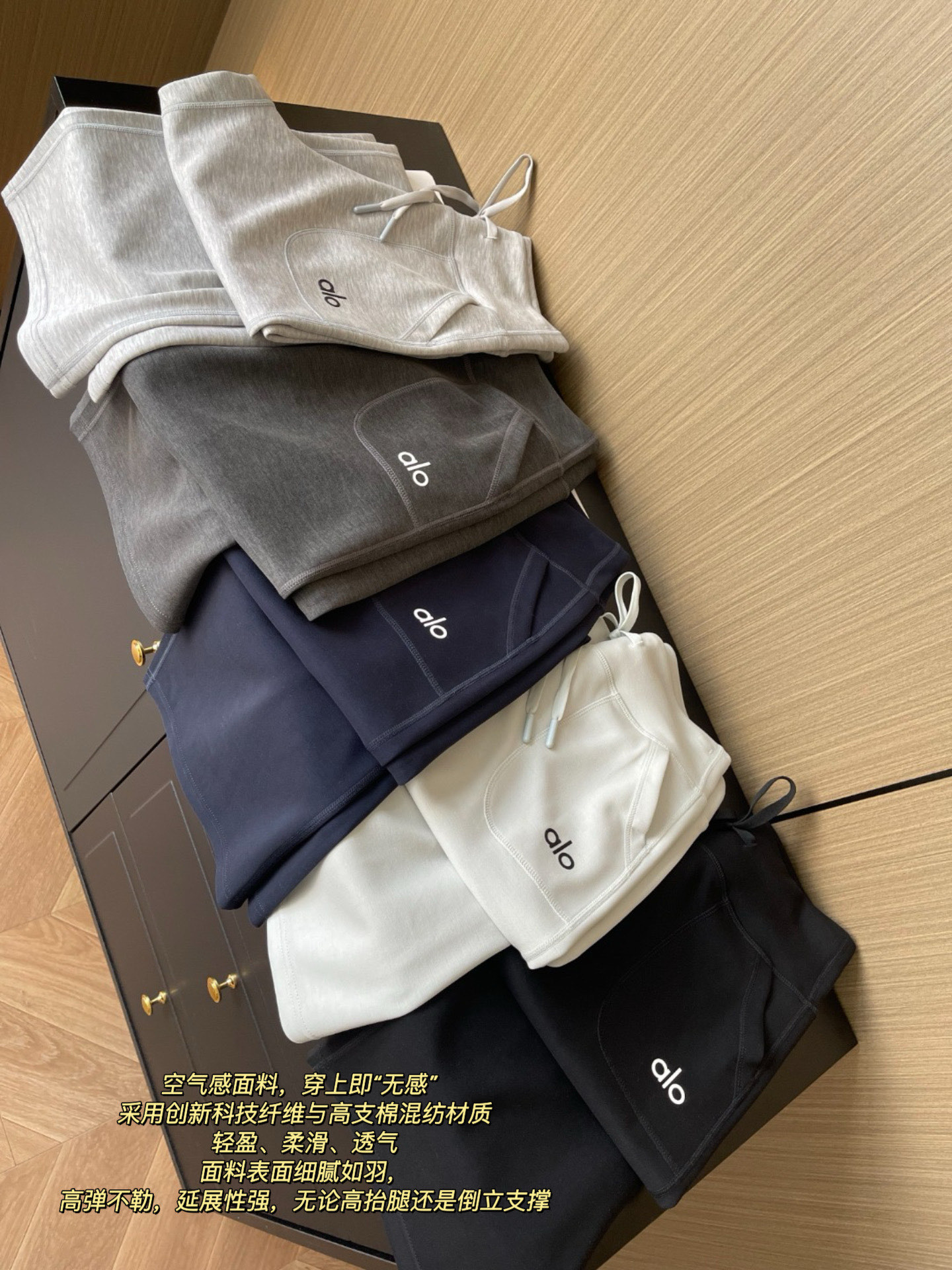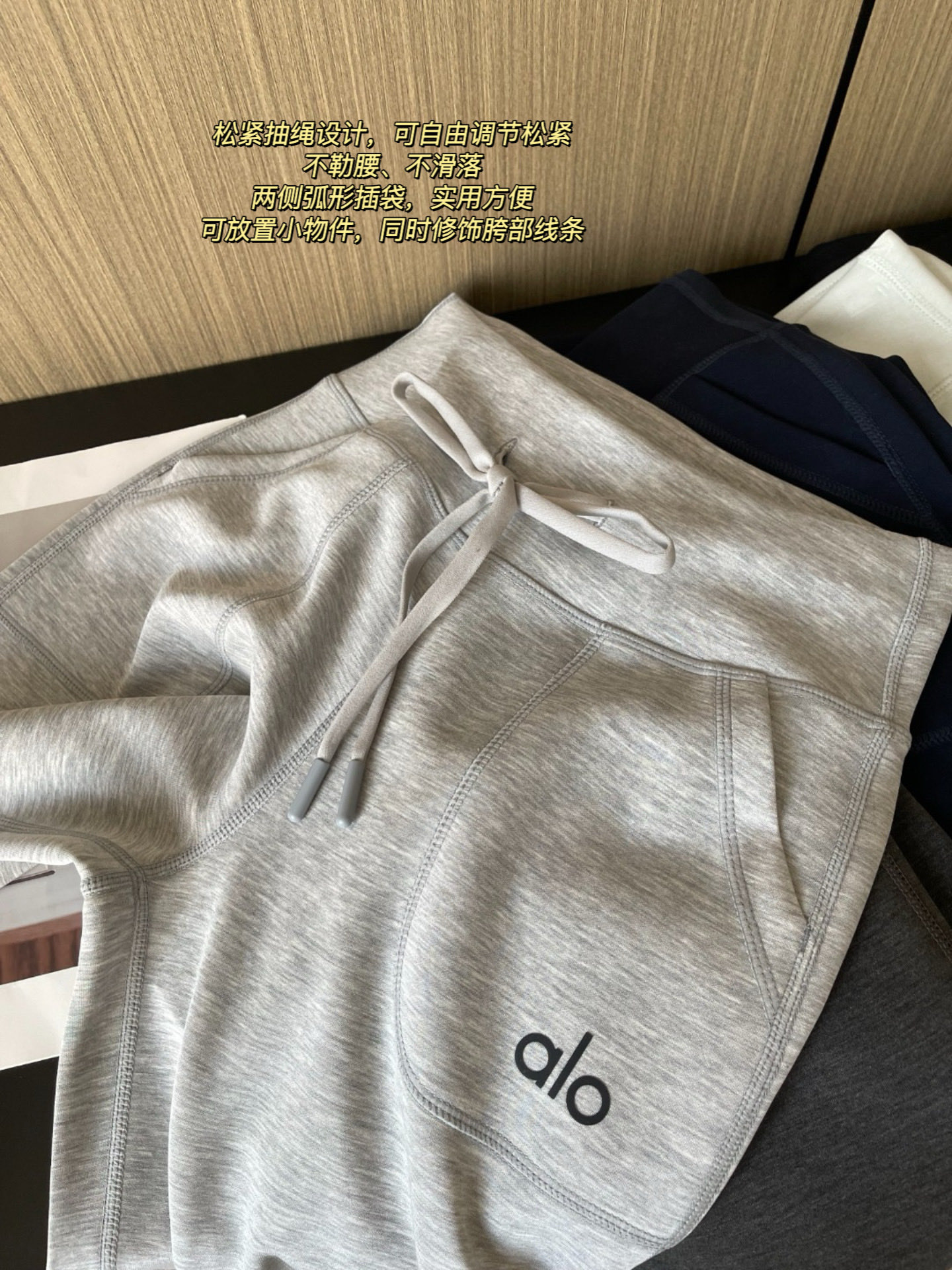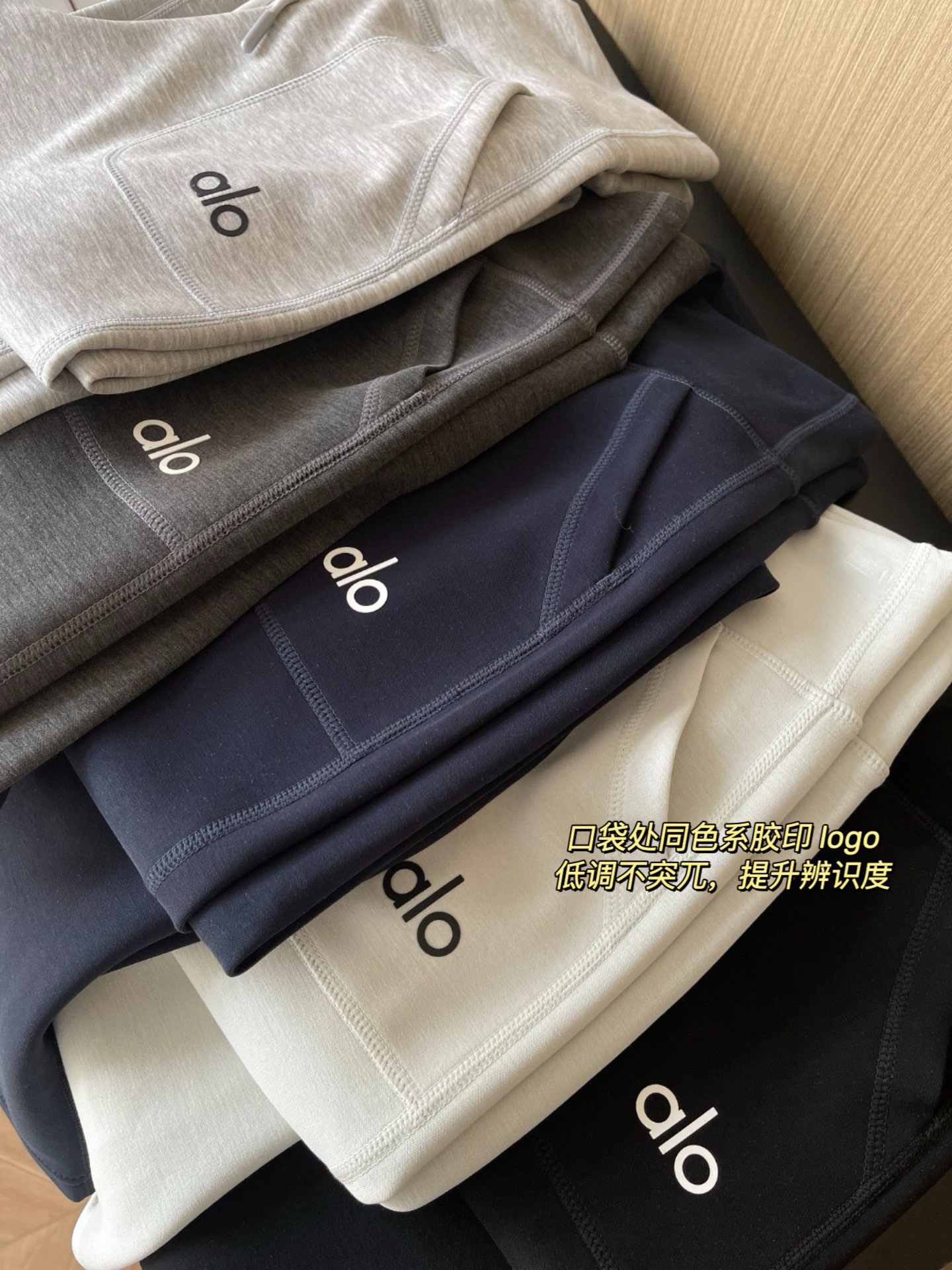 这款衣服是AAAAA 1:1 质量 (非常棒). 使用了和原版一模一样的材料. 商标部分也保持了和Alo Yoga一样. 图片拍摄是实物衣服拍摄, 您所收到的实物保证和我们图片一模一样.