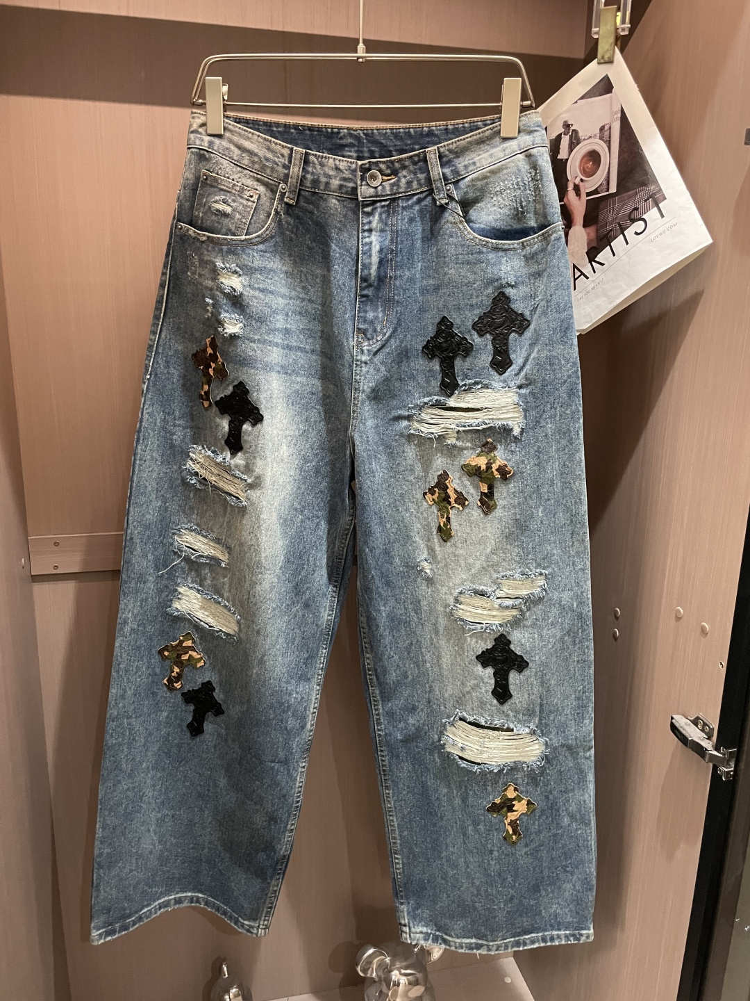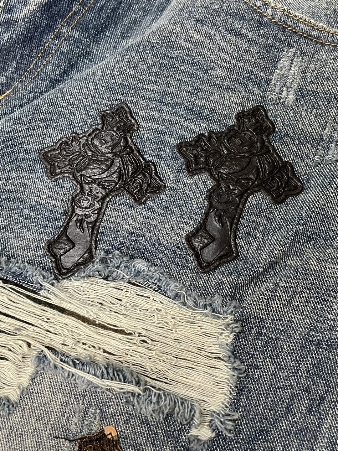 这款衣服是AAAAA 1:1 质量 (非常棒). 使用了和原版一模一样的材料. 商标部分也保持了和克罗心/Chrome Hearts一样. 图片拍摄是实物衣服拍摄, 您所收到的实物保证和我们图片一模一样.