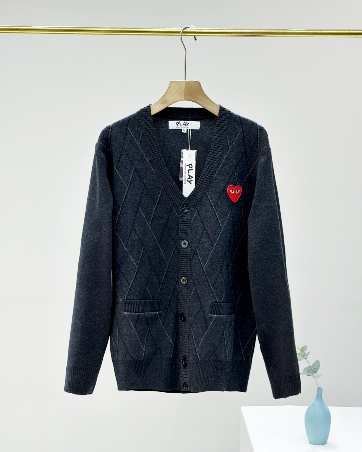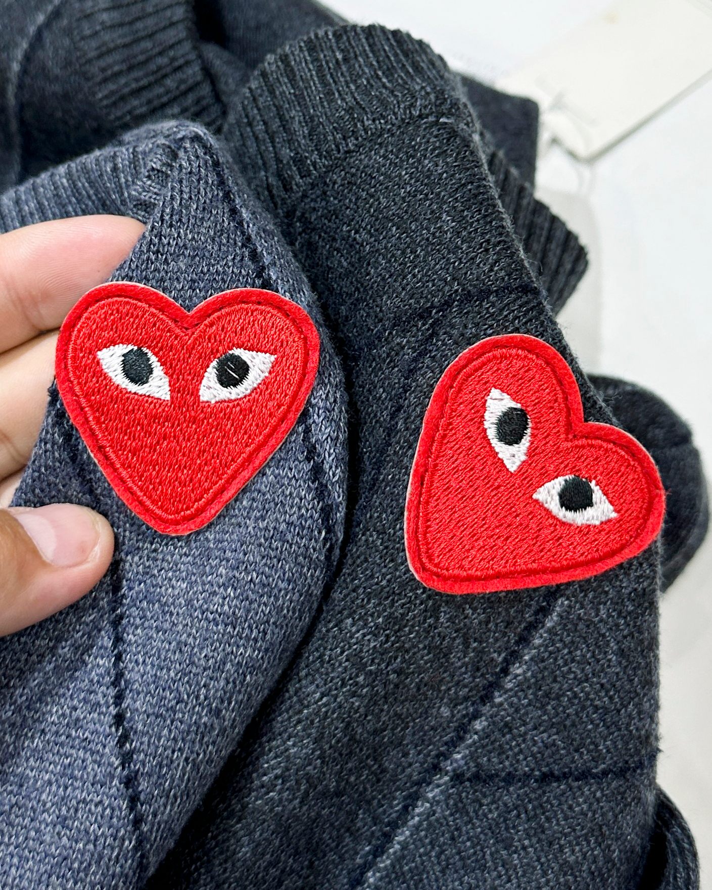 这款衣服是AAAAA 1:1 质量 (非常棒). 使用了和原版一模一样的材料. 商标部分也保持了和Comme Des Garcons一样. 图片拍摄是实物衣服拍摄, 您所收到的实物保证和我们图片一模一样.