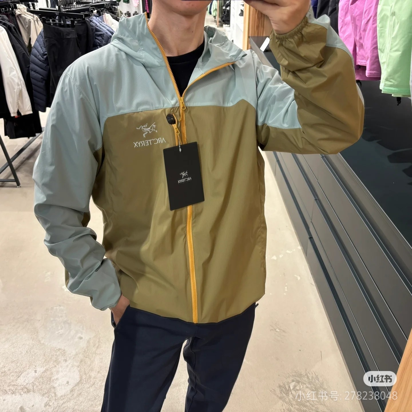 这款衣服是AAAAA 1:1 质量 (非常棒). 使用了和原版一模一样的材料. 商标部分也保持了和ARC'TERYX一样. 图片拍摄是实物衣服拍摄, 您所收到的实物保证和我们图片一模一样.