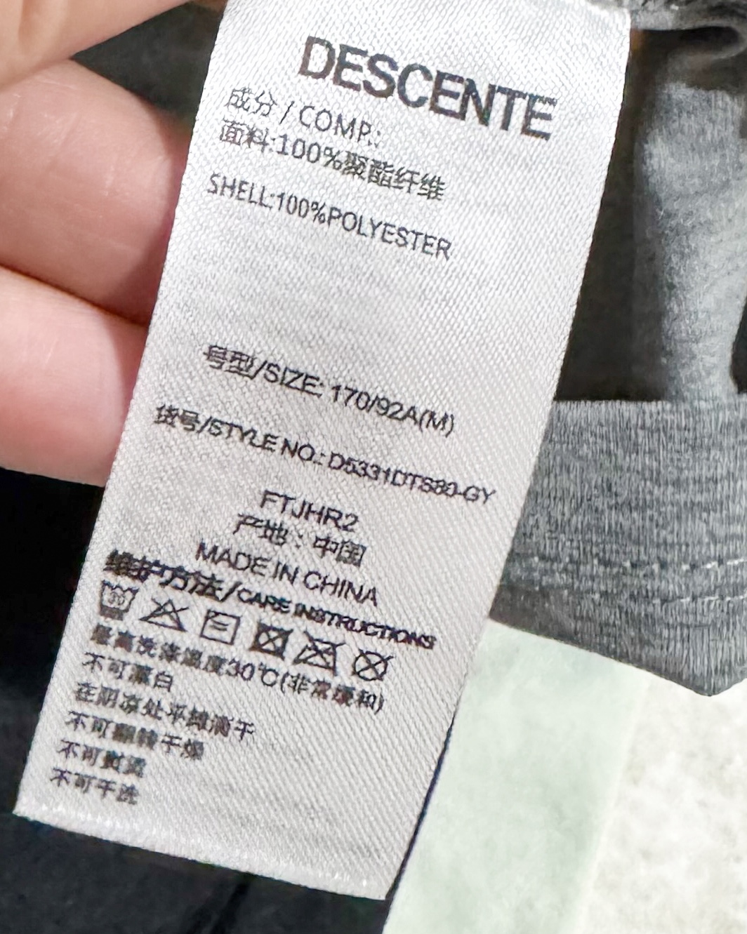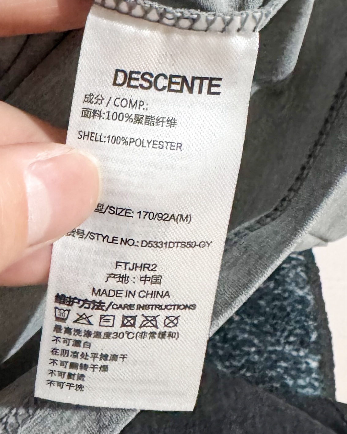 这款衣服是AAAAA 1:1 质量 (非常棒). 使用了和原版一模一样的材料. 商标部分也保持了和Descente一样. 图片拍摄是实物衣服拍摄, 您所收到的实物保证和我们图片一模一样.