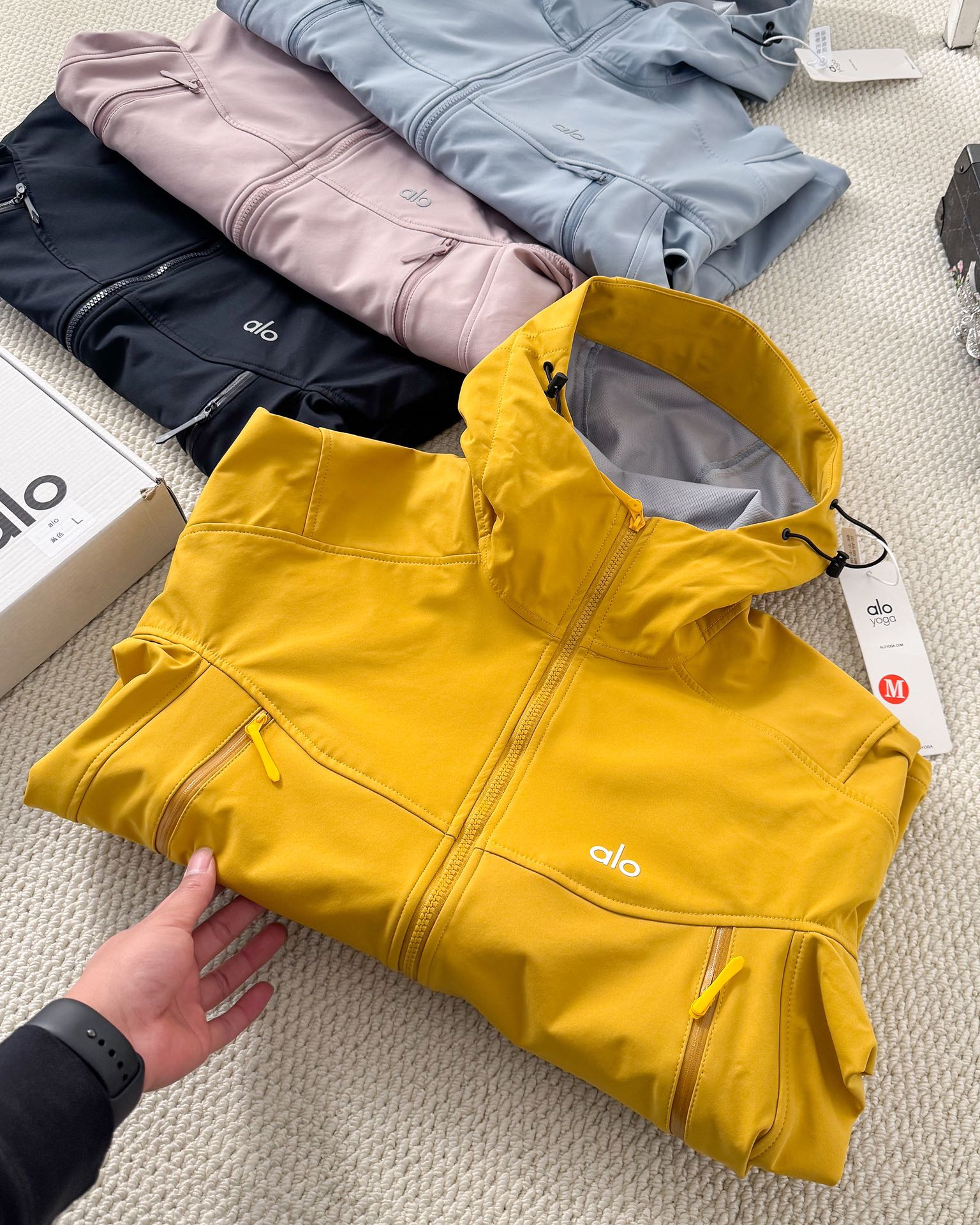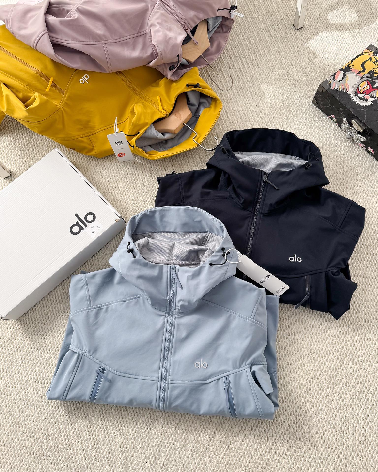 这款衣服是AAAAA 1:1 质量 (非常棒). 使用了和原版一模一样的材料. 商标部分也保持了和Alo Yoga一样. 图片拍摄是实物衣服拍摄, 您所收到的实物保证和我们图片一模一样.