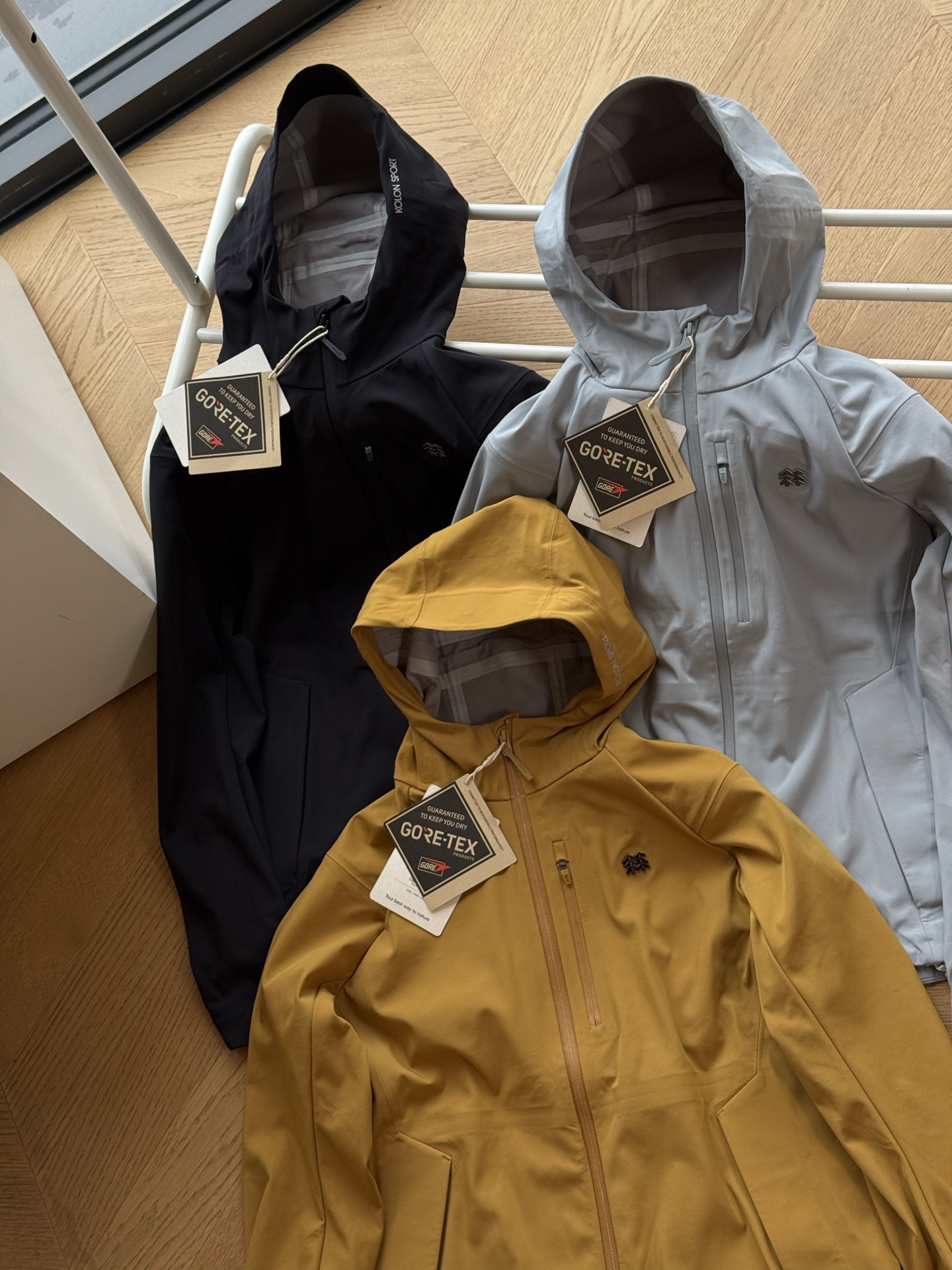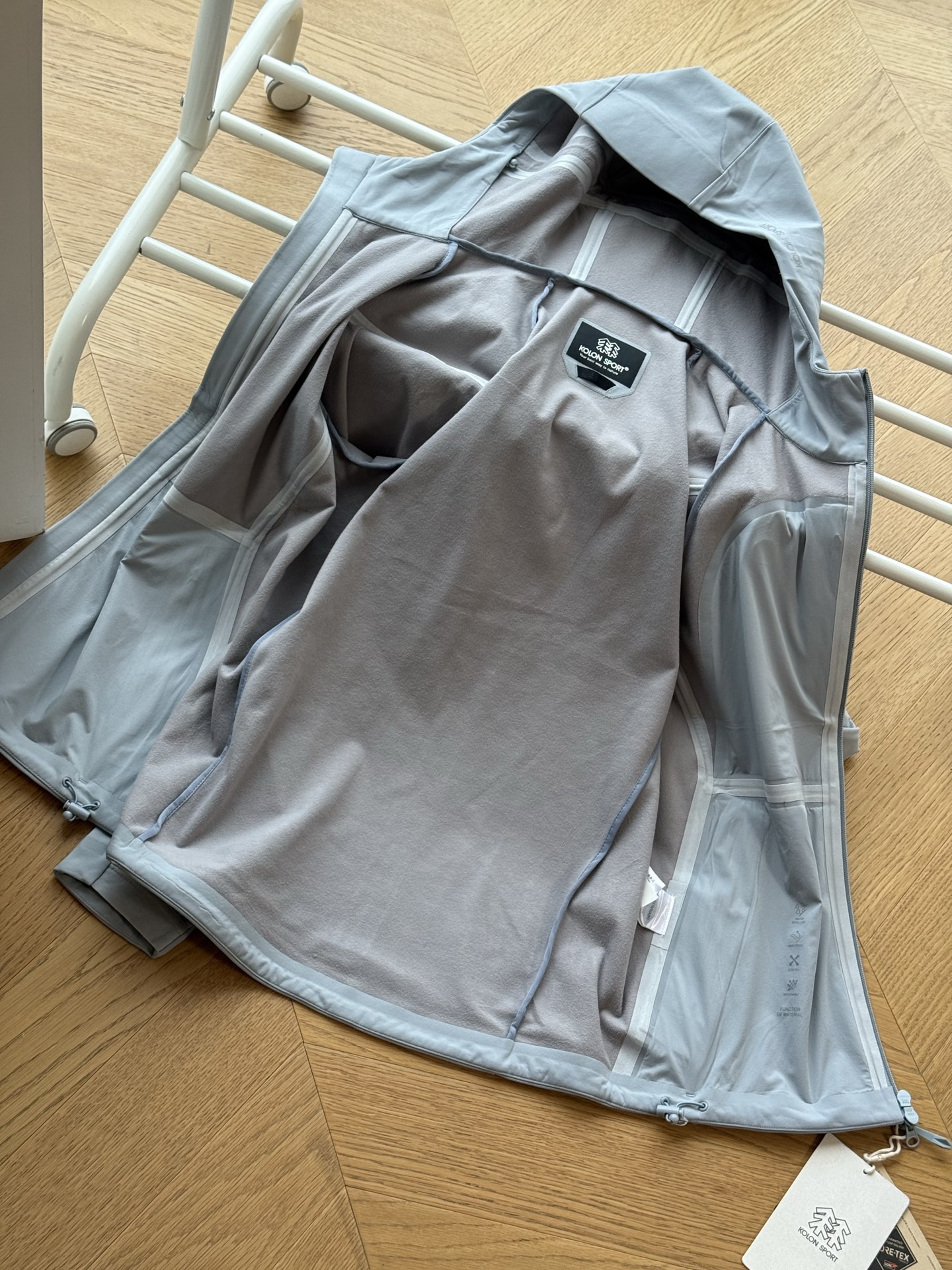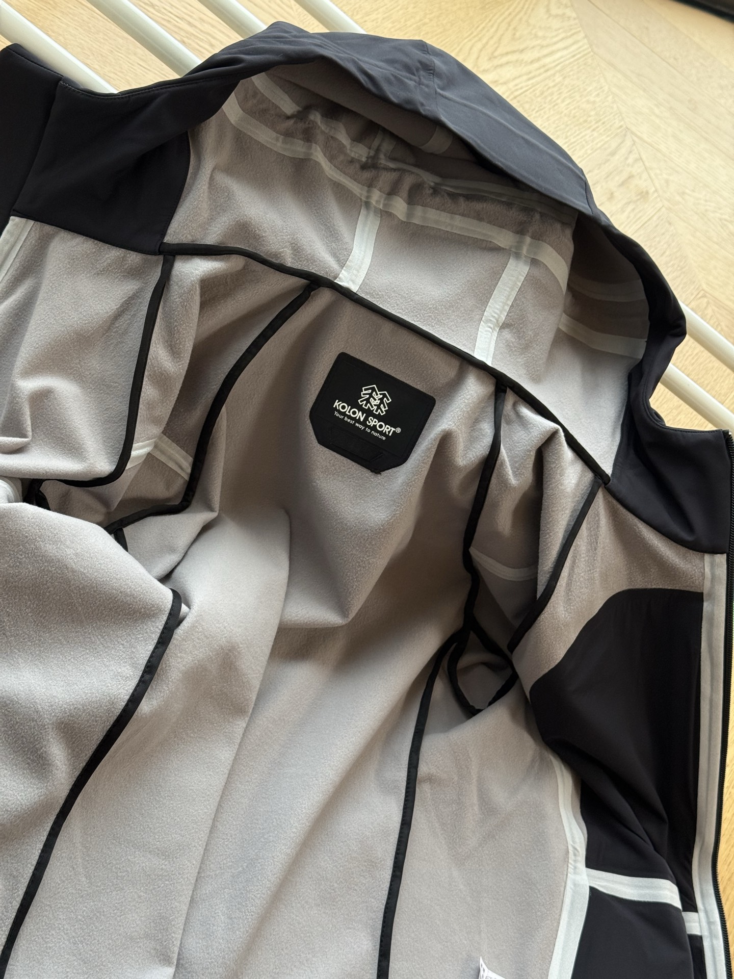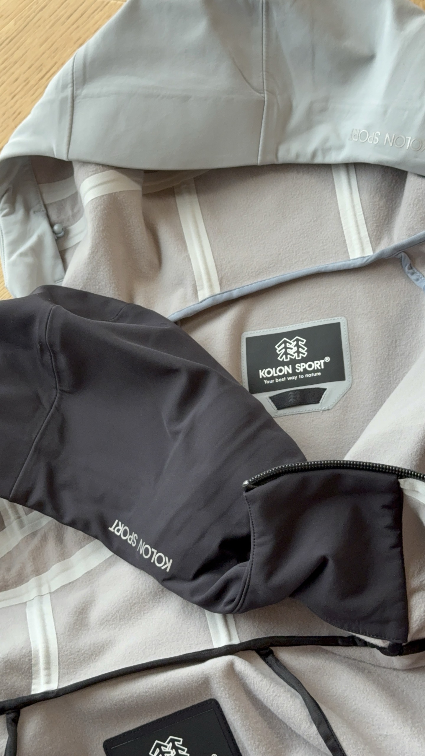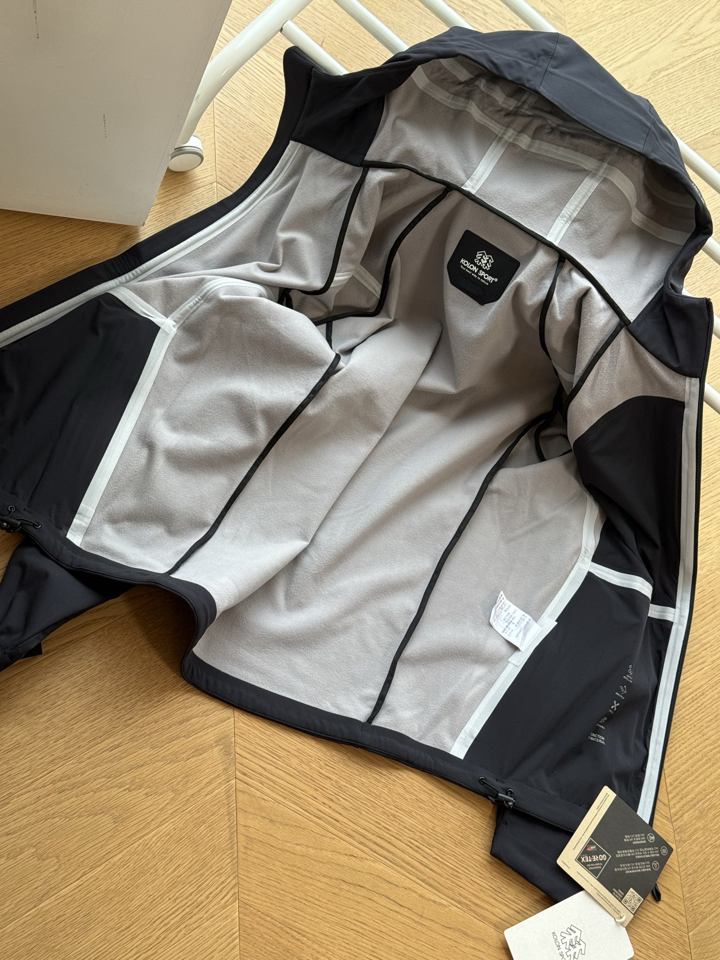 这款衣服是AAAAA 1:1 质量 (非常棒). 使用了和原版一模一样的材料. 商标部分也保持了和KOLON一样. 图片拍摄是实物衣服拍摄, 您所收到的实物保证和我们图片一模一样.