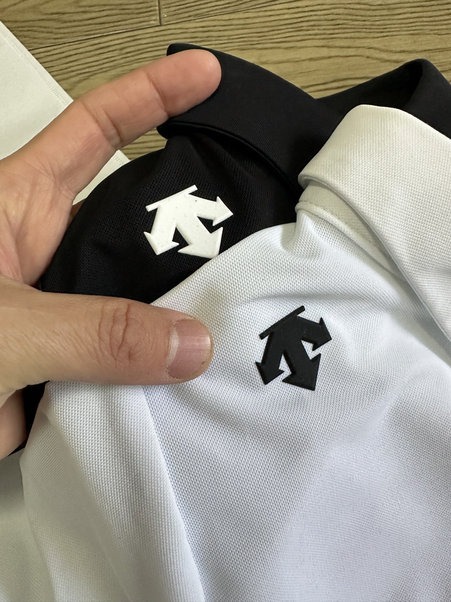 这款衣服是AAAAA 1:1 质量 (非常棒). 使用了和原版一模一样的材料. 商标部分也保持了和Descente一样. 图片拍摄是实物衣服拍摄, 您所收到的实物保证和我们图片一模一样.