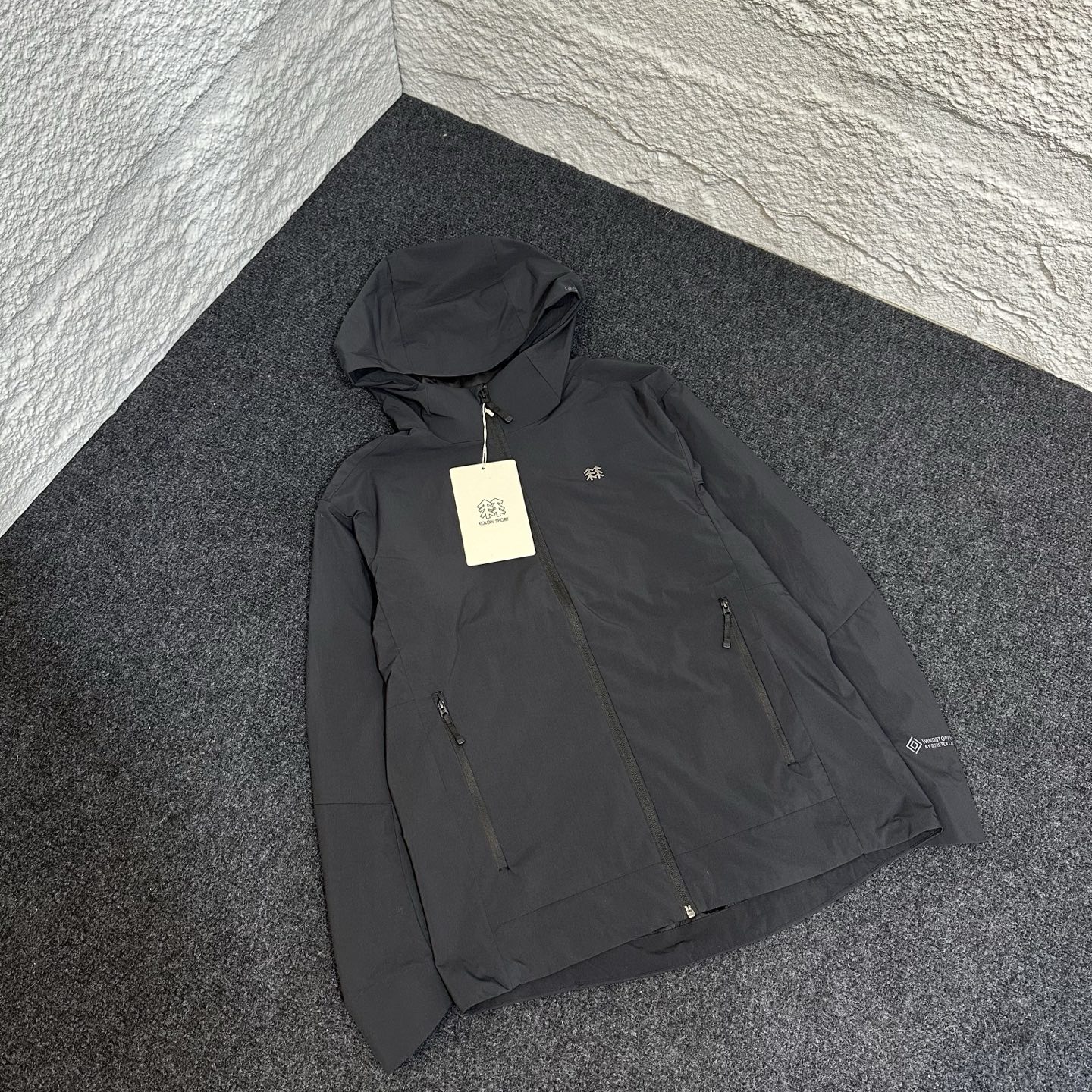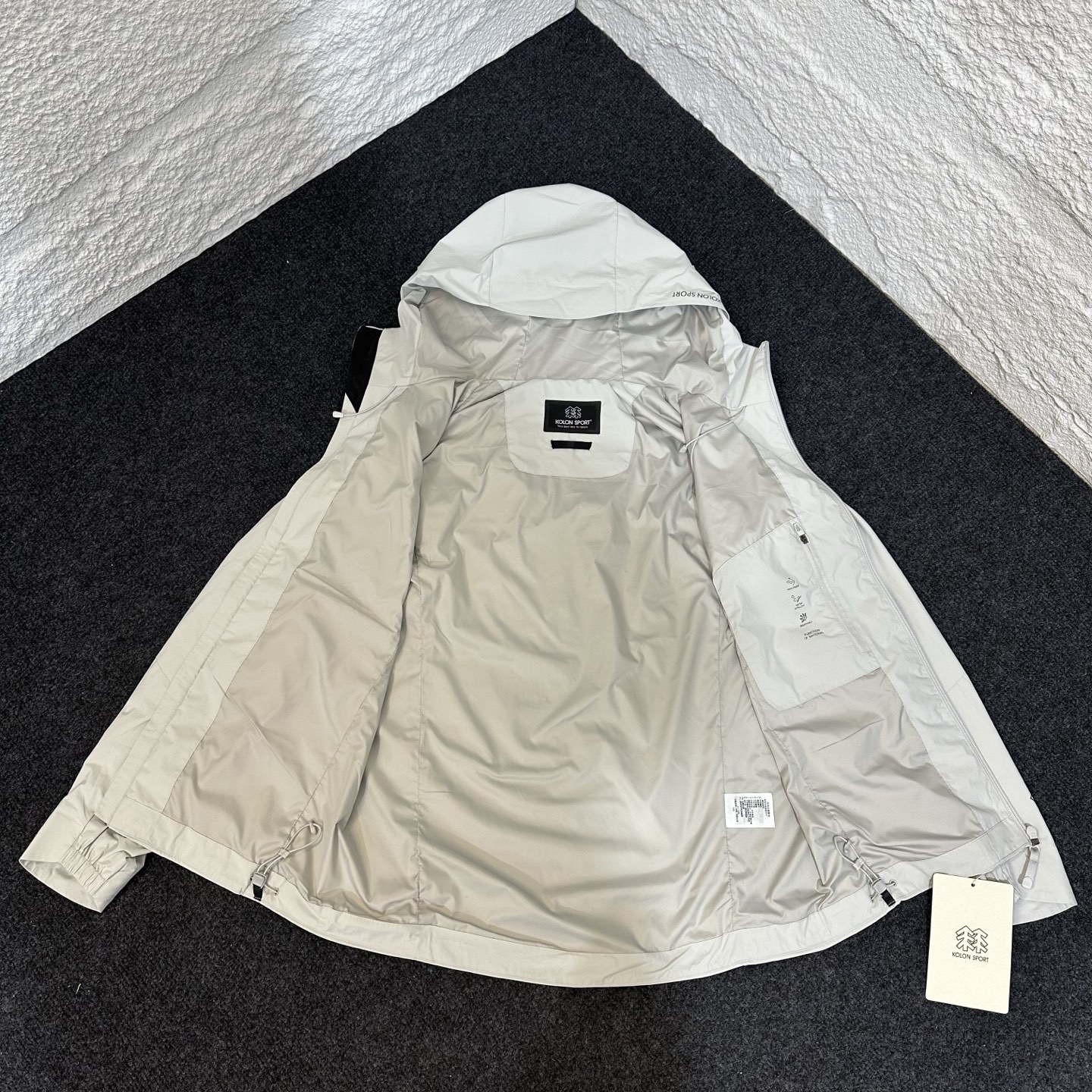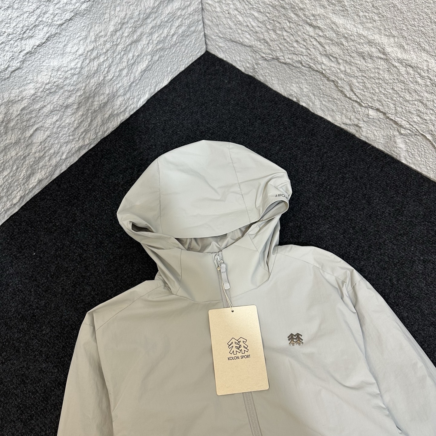 这款衣服是AAAAA 1:1 质量 (非常棒). 使用了和原版一模一样的材料. 商标部分也保持了和KOLON一样. 图片拍摄是实物衣服拍摄, 您所收到的实物保证和我们图片一模一样.