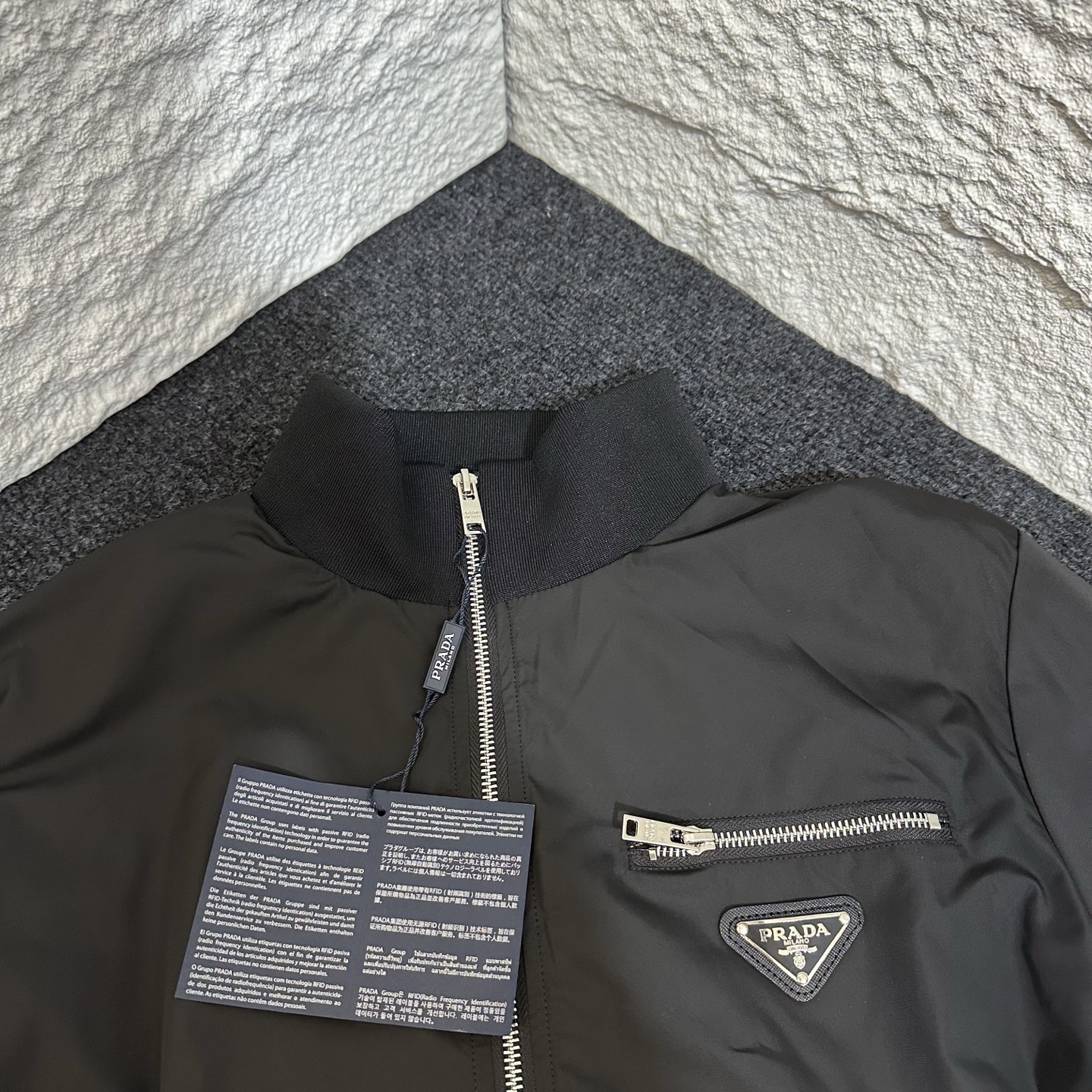 这款衣服是AAAAA 1:1 质量 (非常棒). 使用了和原版一模一样的材料. 商标部分也保持了和普拉达/Prada一样. 图片拍摄是实物衣服拍摄, 您所收到的实物保证和我们图片一模一样.