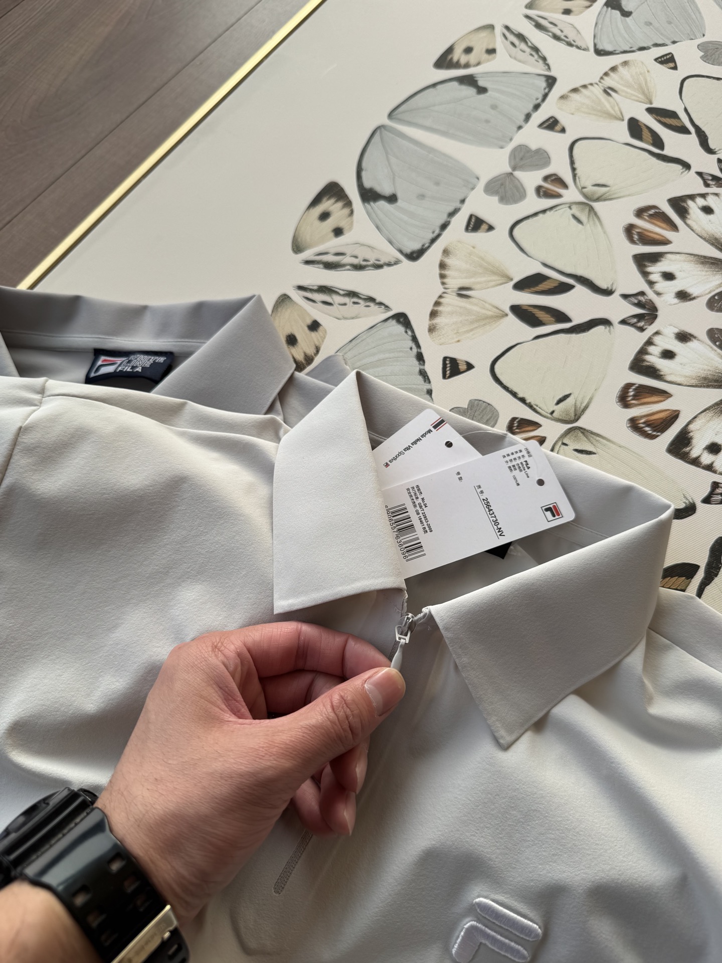 这款衣服是AAAAA 1:1 质量 (非常棒). 使用了和原版一模一样的材料. 商标部分也保持了和Fila一样. 图片拍摄是实物衣服拍摄, 您所收到的实物保证和我们图片一模一样.