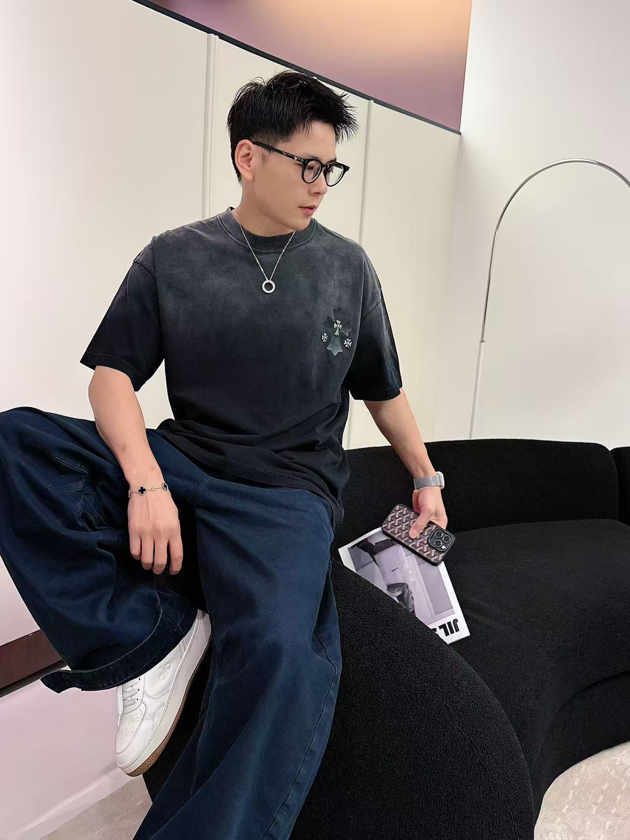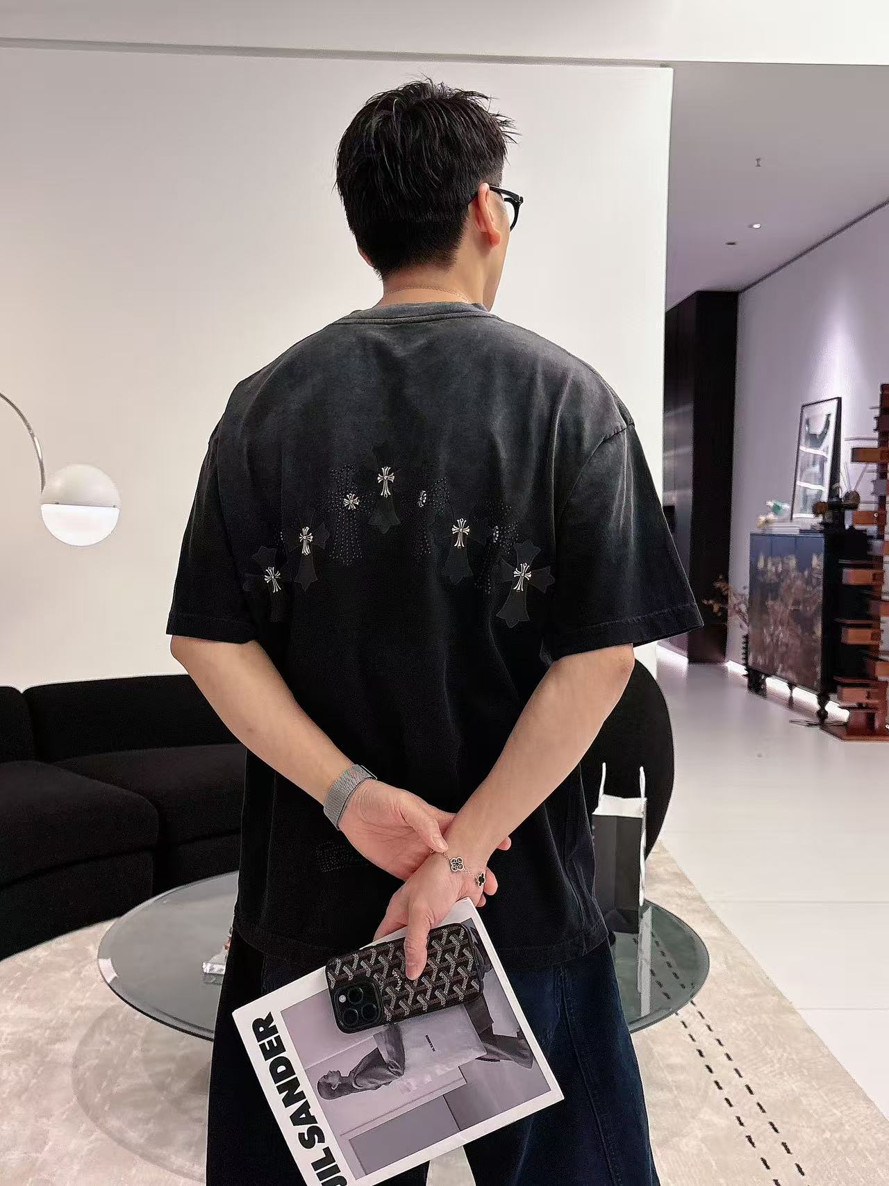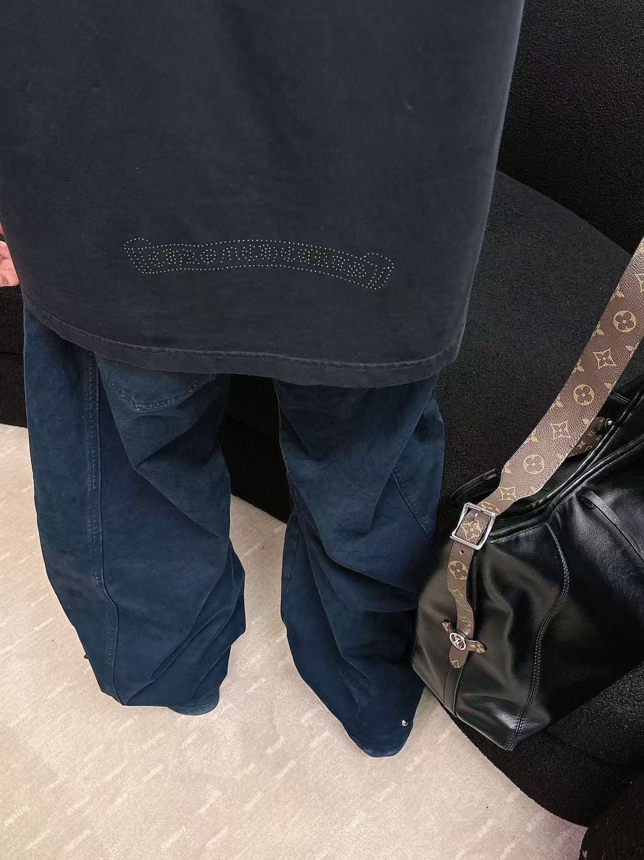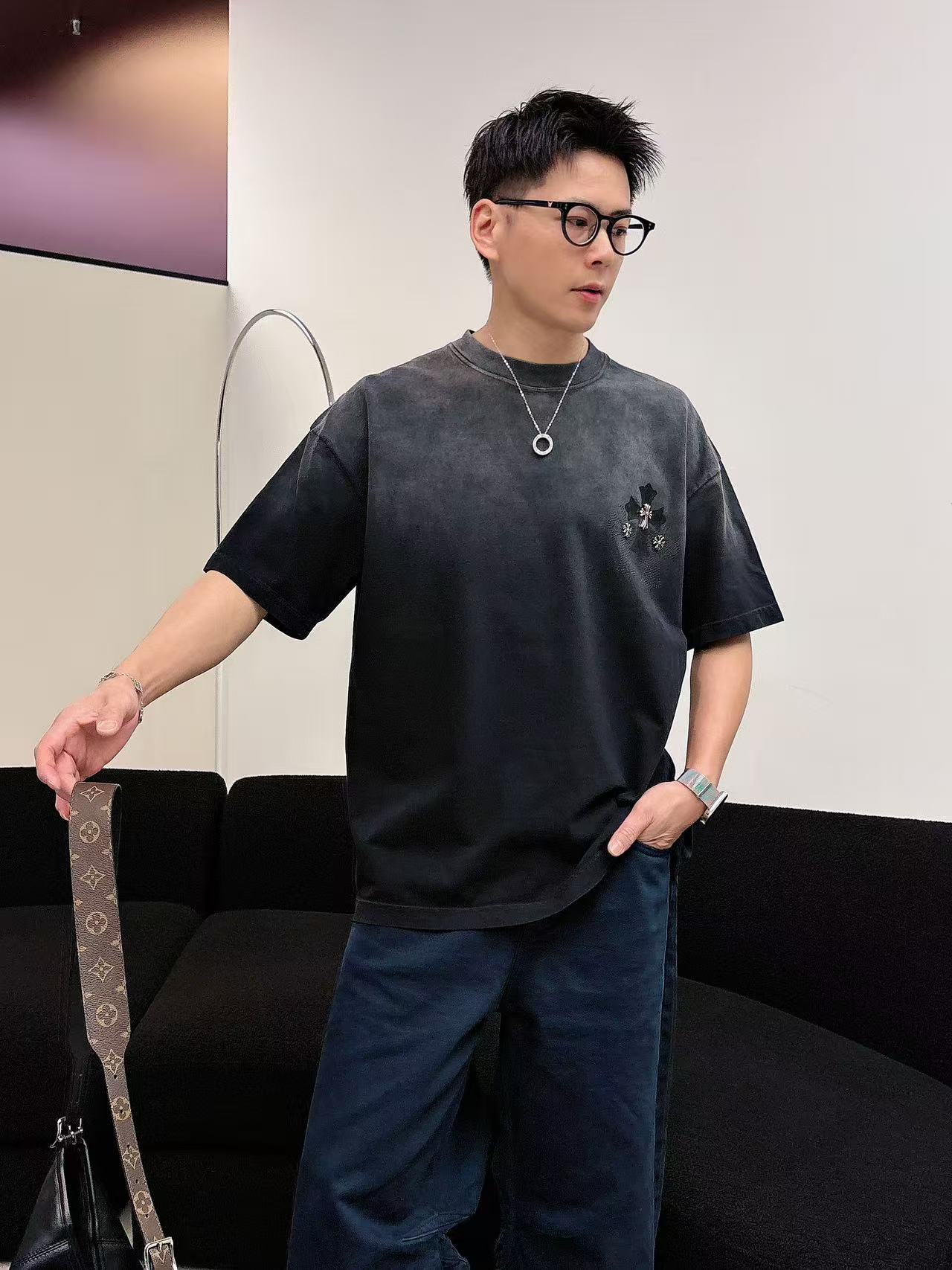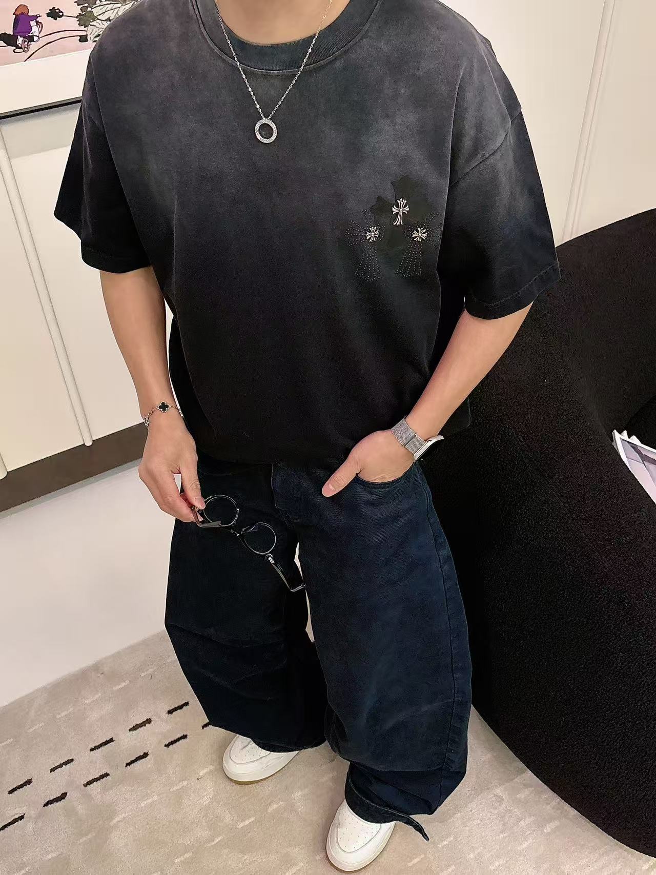 这款衣服是AAAAA 1:1 质量 (非常棒). 使用了和原版一模一样的材料. 商标部分也保持了和克罗心/Chrome Hearts一样. 图片拍摄是实物衣服拍摄, 您所收到的实物保证和我们图片一模一样.