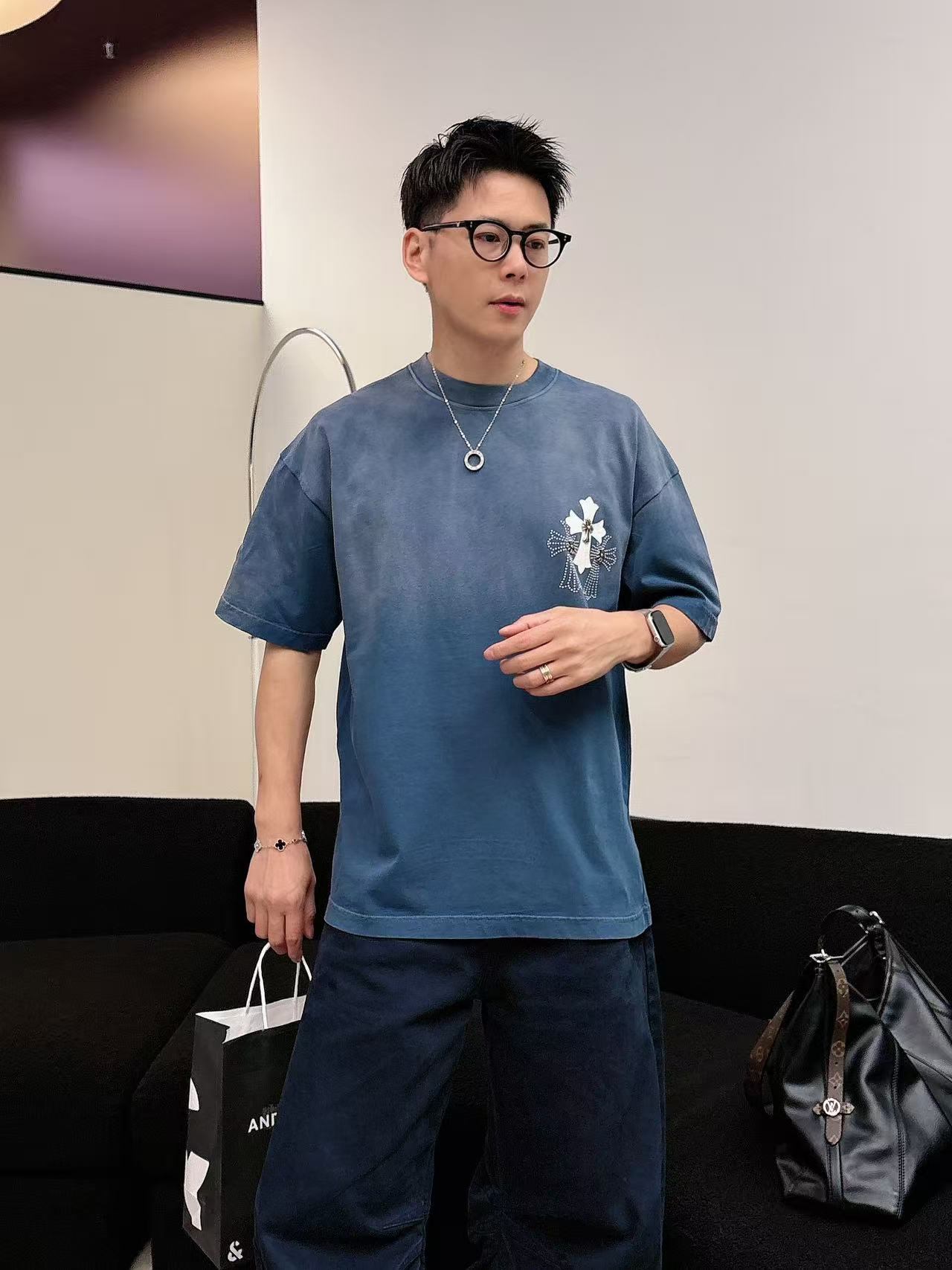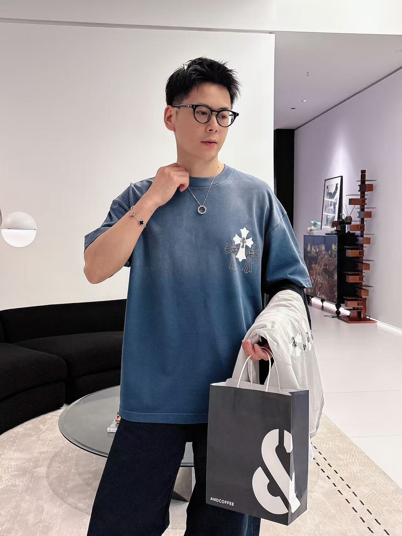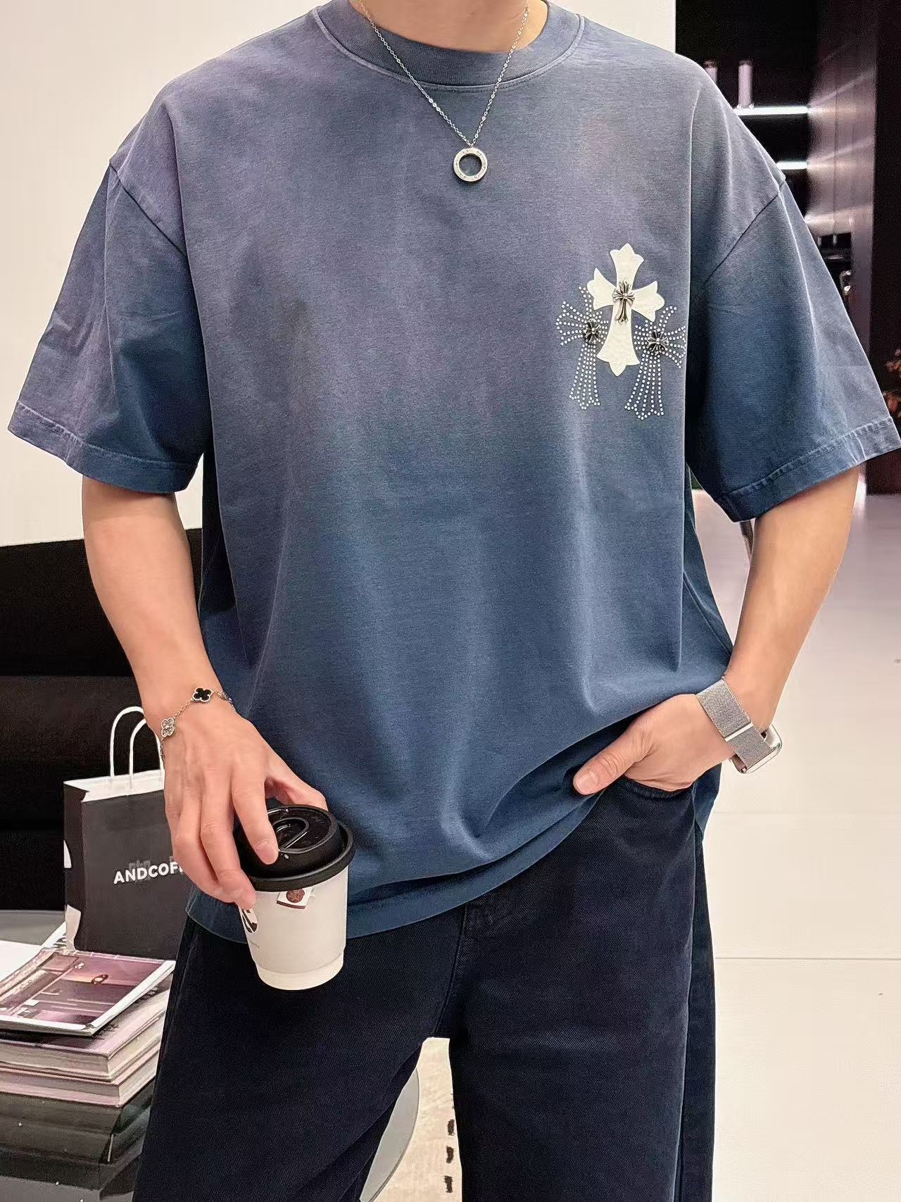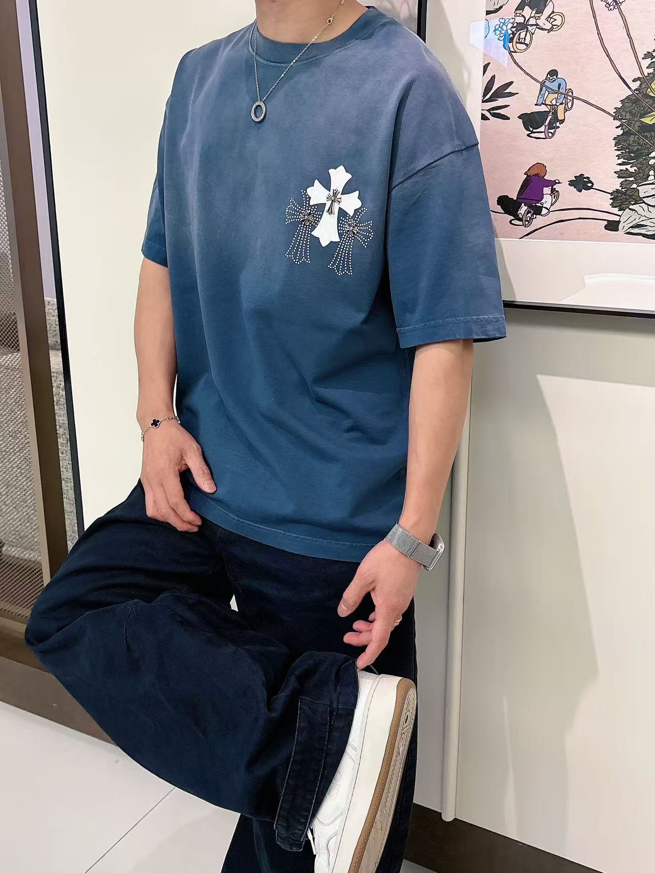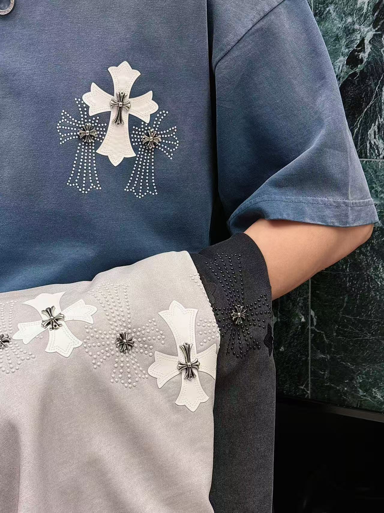这款衣服是AAAAA 1:1 质量 (非常棒). 使用了和原版一模一样的材料. 商标部分也保持了和克罗心/Chrome Hearts一样. 图片拍摄是实物衣服拍摄, 您所收到的实物保证和我们图片一模一样.