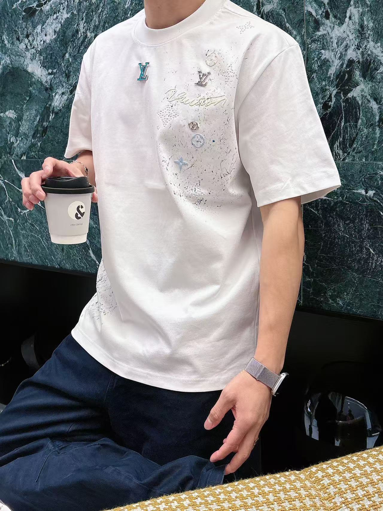 这款衣服是AAAAA 1:1 质量 (非常棒). 使用了和原版一模一样的材料. 商标部分也保持了和路易威登/Louis Vuitton一样. 图片拍摄是实物衣服拍摄, 您所收到的实物保证和我们图片一模一样.