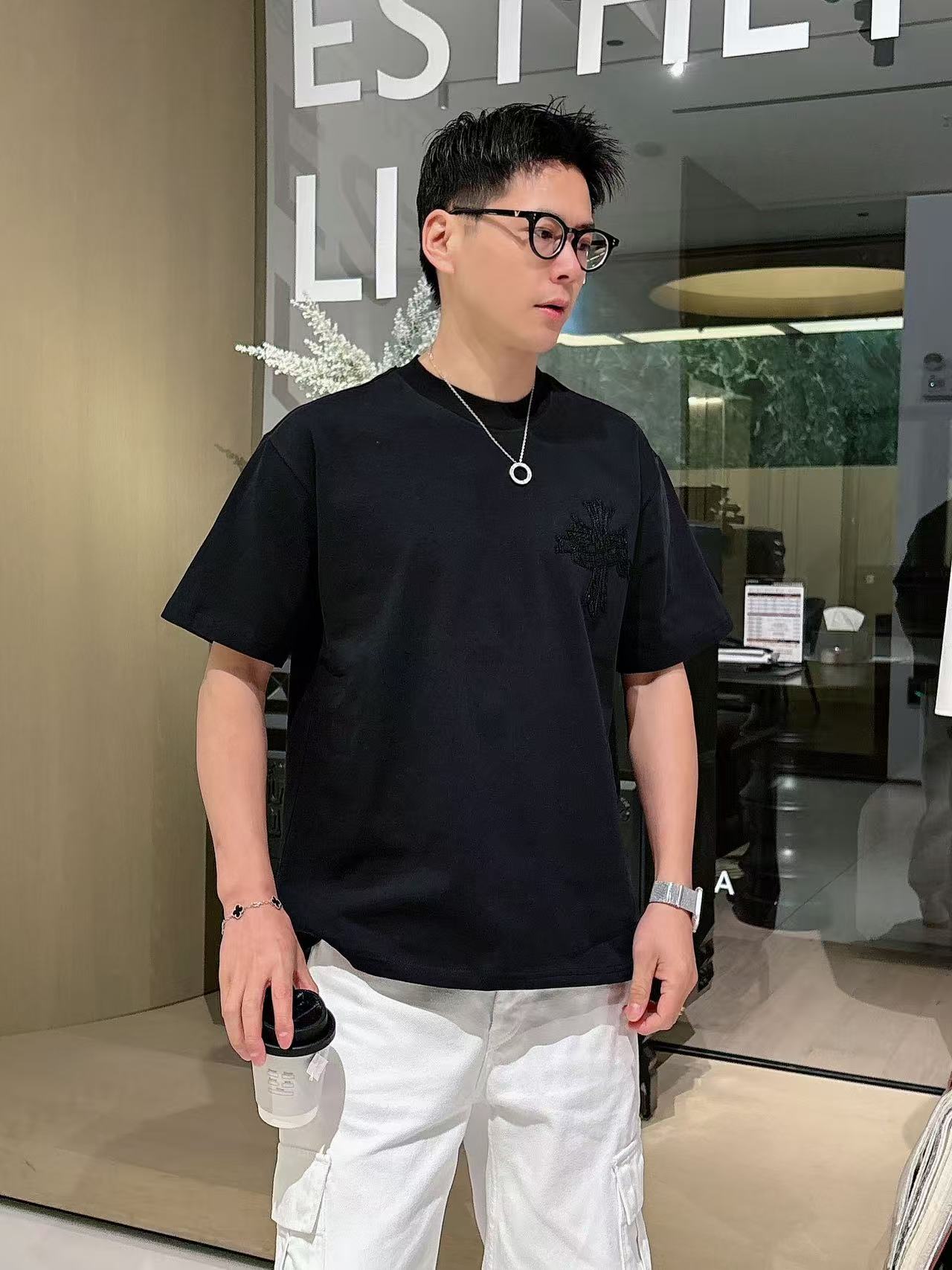 这款衣服是AAAAA 1:1 质量 (非常棒). 使用了和原版一模一样的材料. 商标部分也保持了和克罗心/Chrome Hearts一样. 图片拍摄是实物衣服拍摄, 您所收到的实物保证和我们图片一模一样.
