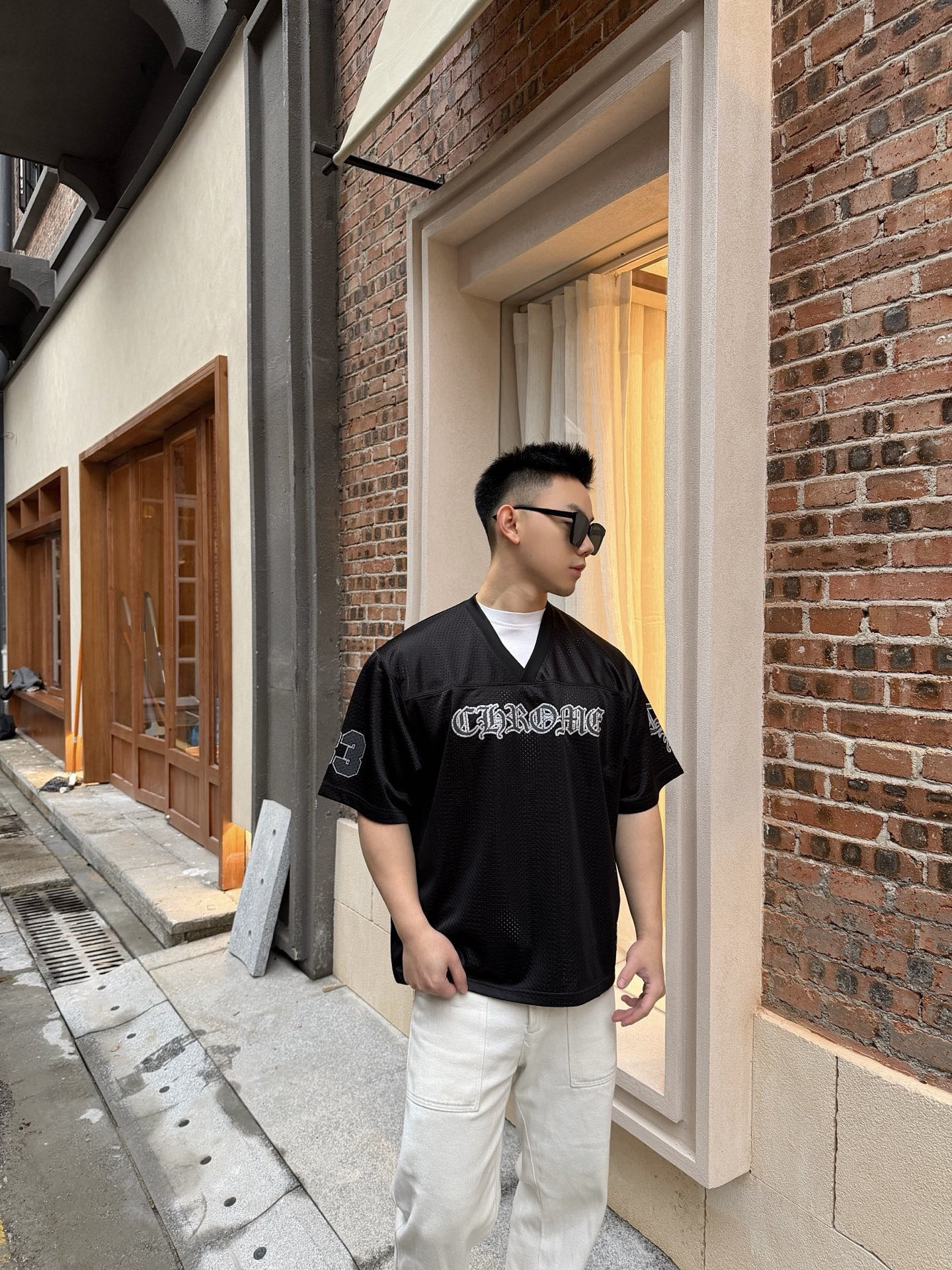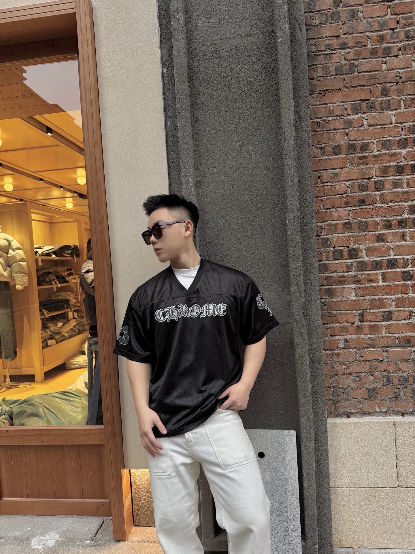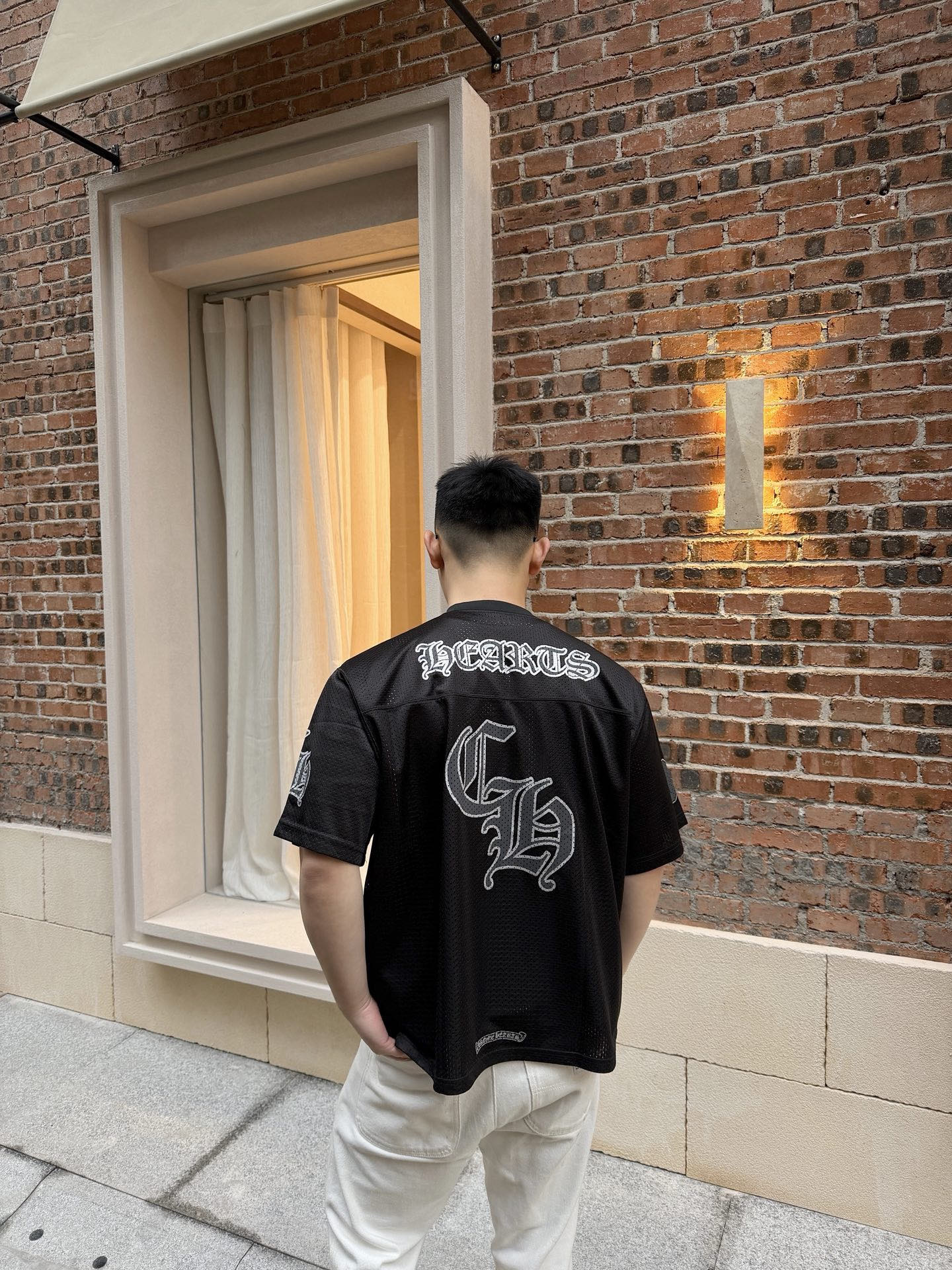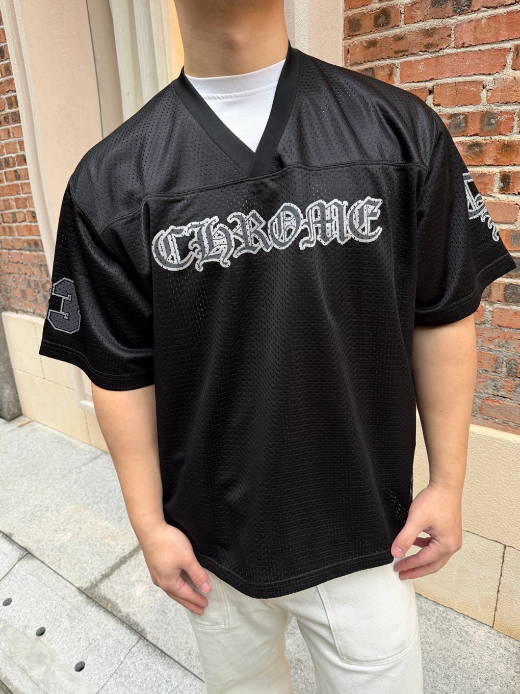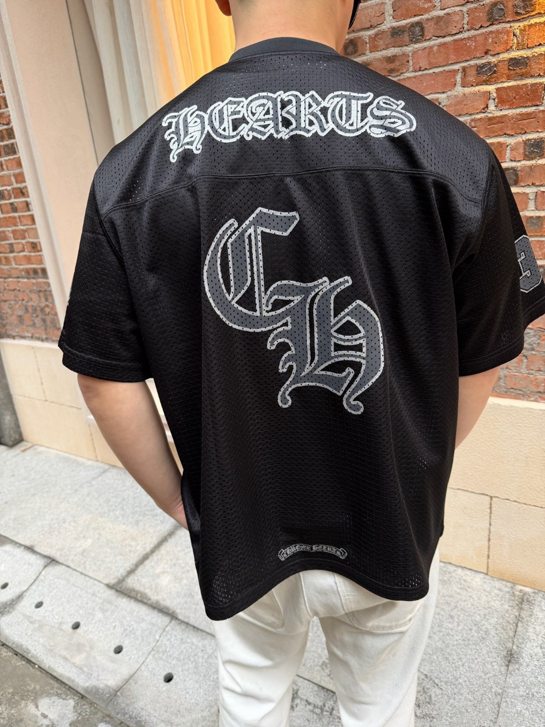 这款衣服是AAAAA 1:1 质量 (非常棒). 使用了和原版一模一样的材料. 商标部分也保持了和克罗心/Chrome Hearts一样. 图片拍摄是实物衣服拍摄, 您所收到的实物保证和我们图片一模一样.
